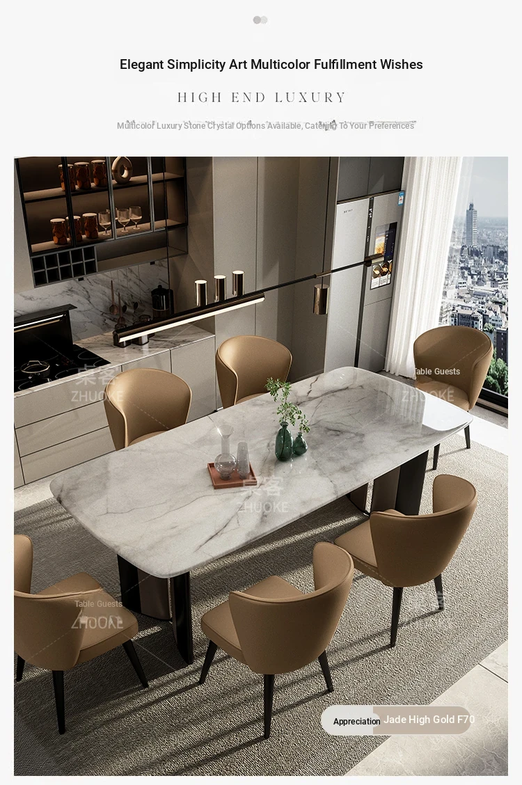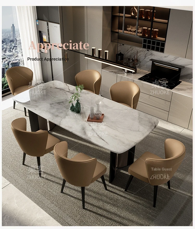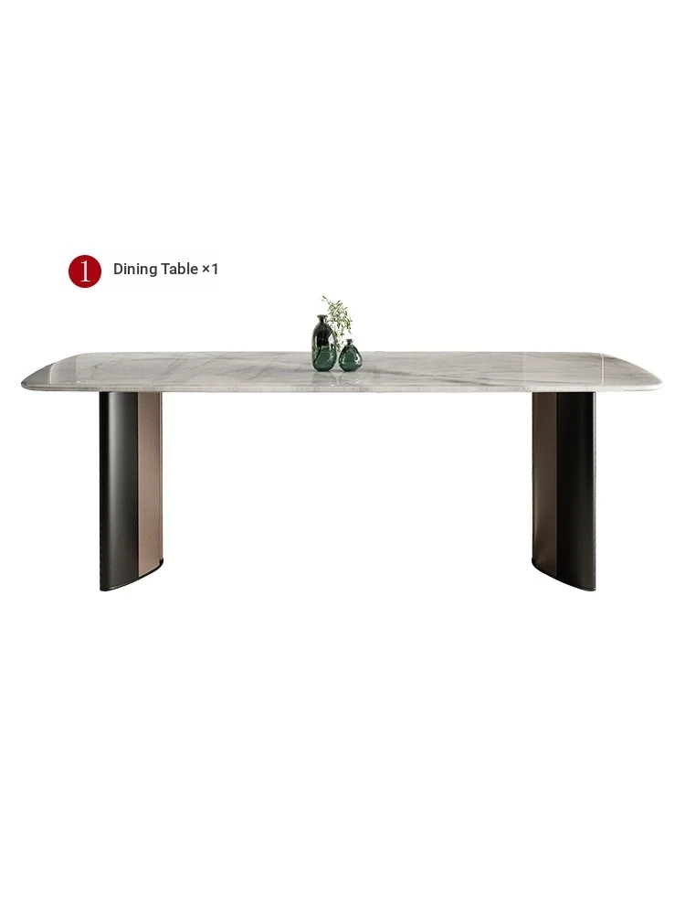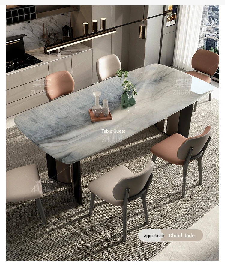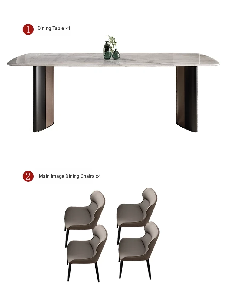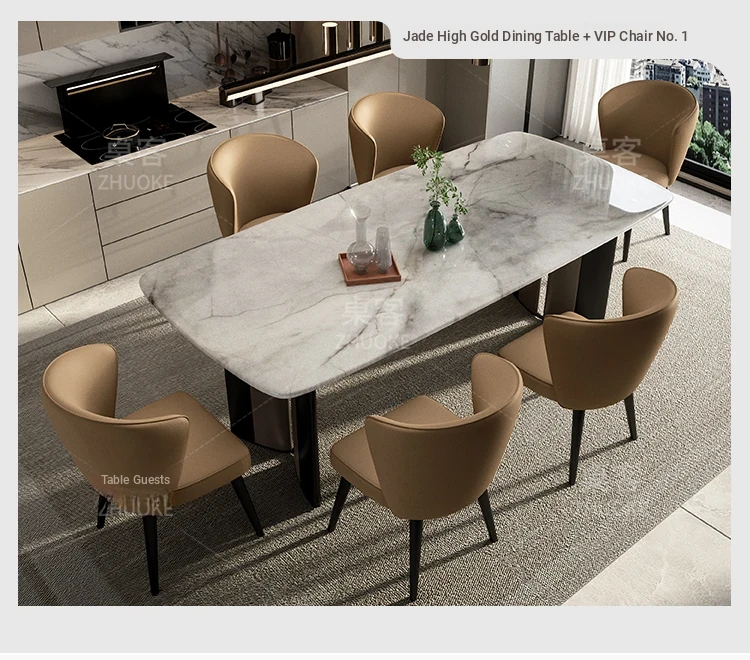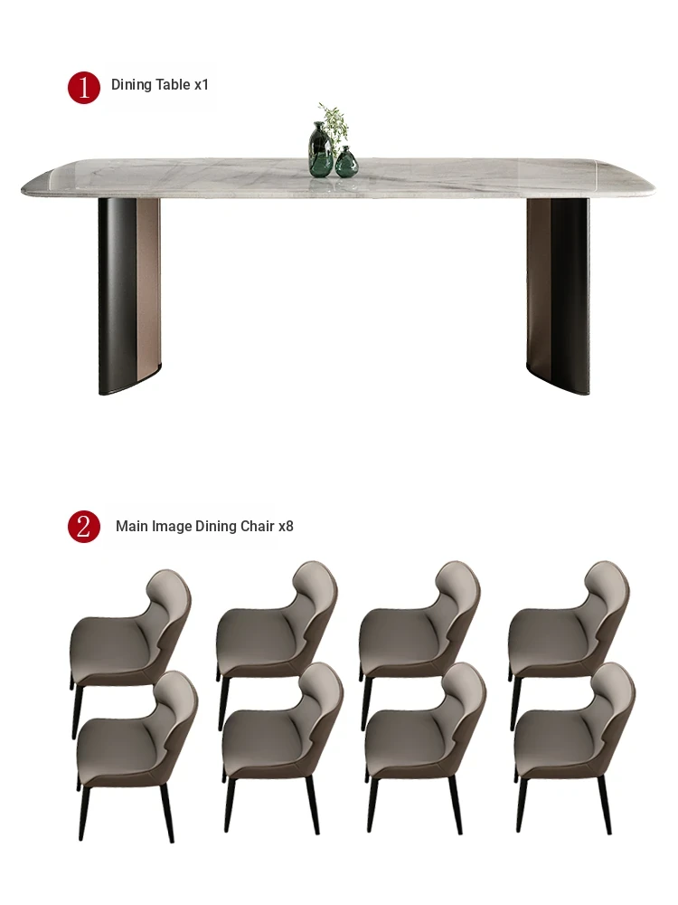 [Luxury stone-natural color stone] 1 table 8 chairs (thickened imitation leather)