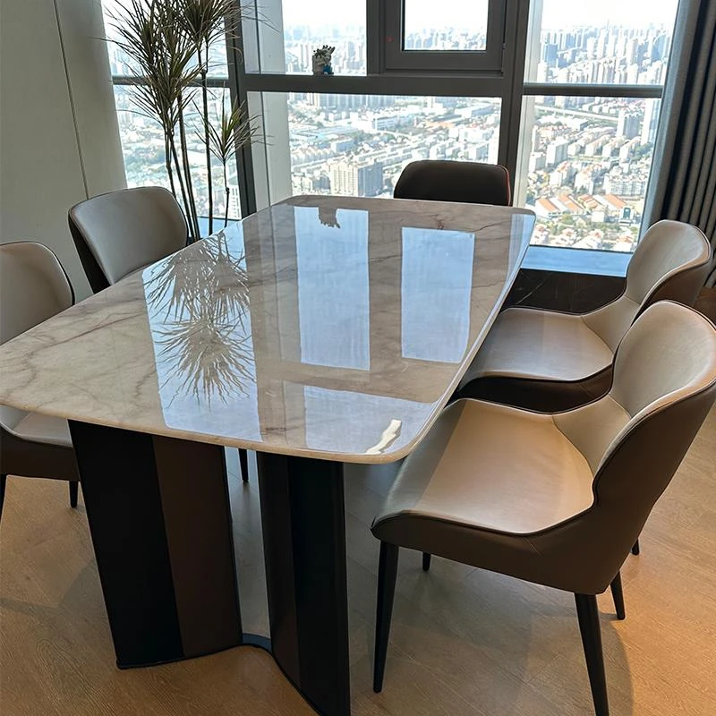 [Luxury stone-natural color stone] 1 table 6 chairs (thickened imitation leather)