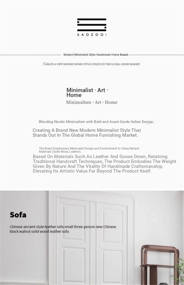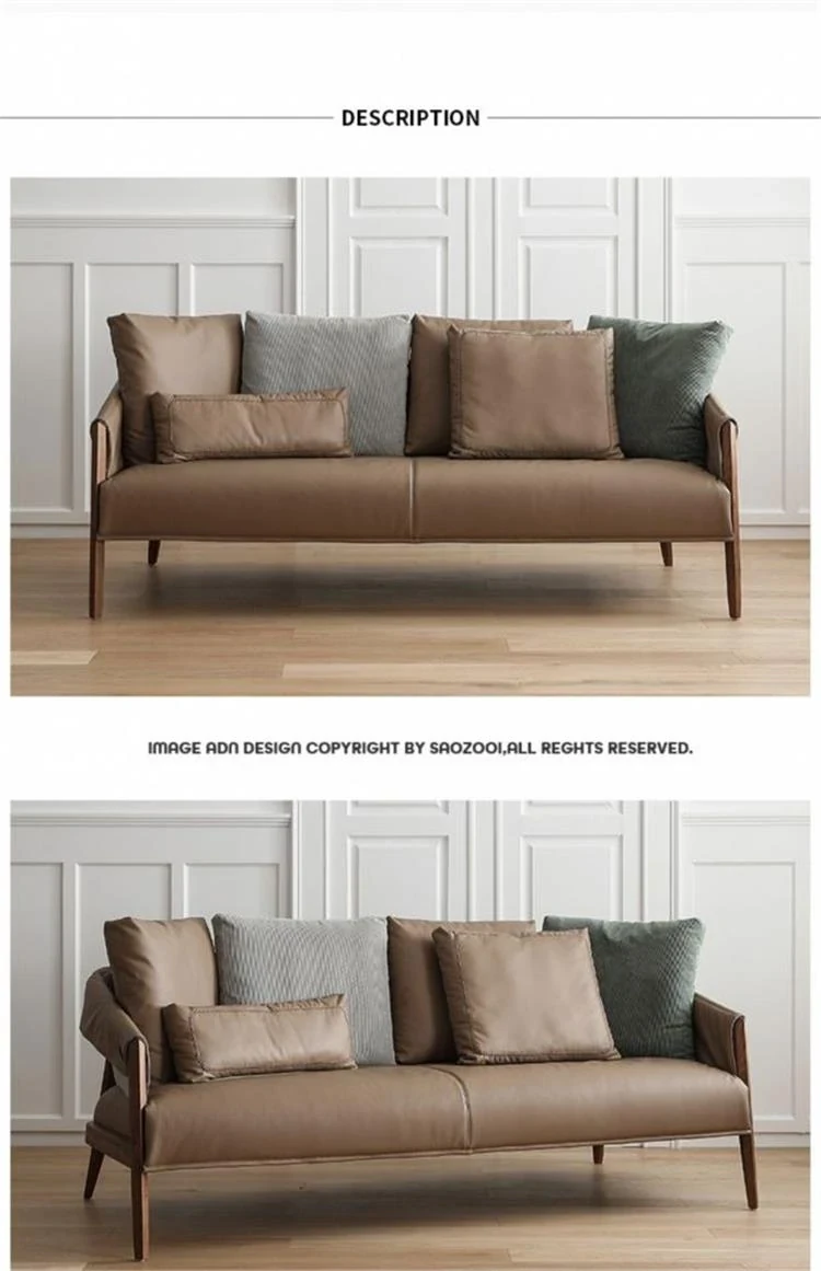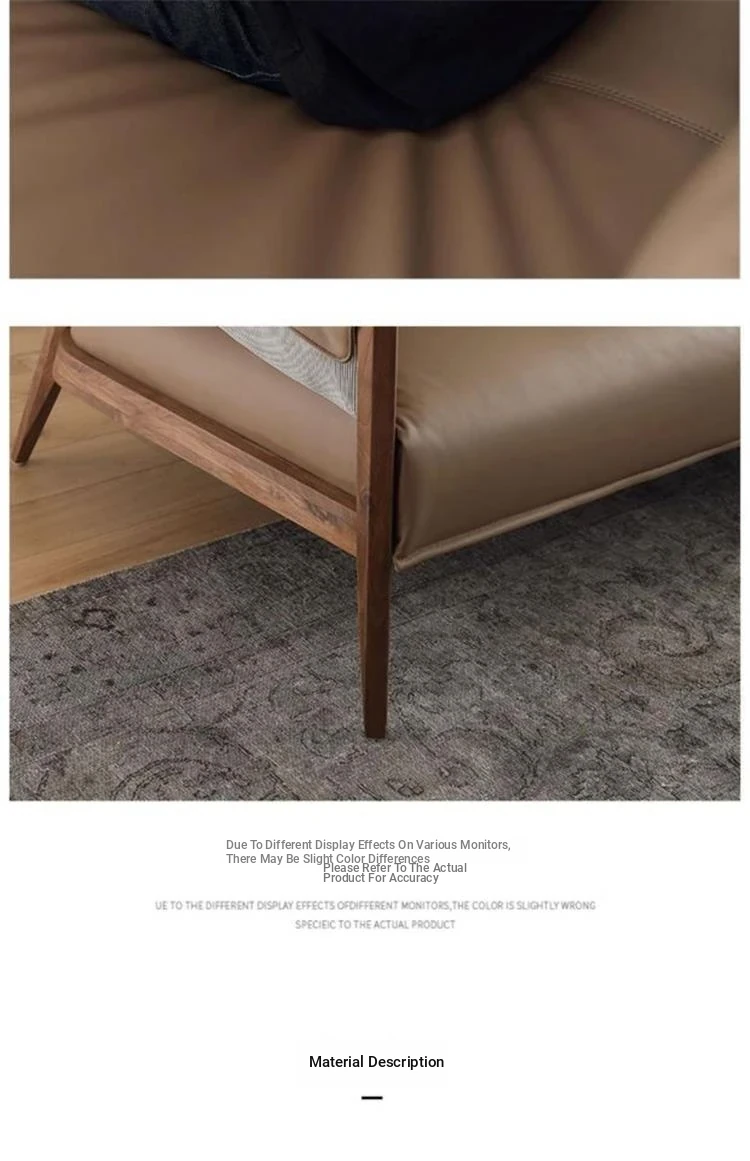 Elegant Mid-Century Modern Genuine Leather Sofa for Small Spaces - Stylish Three-Seater with Black Walnut Solid Wood Frame, Perfect for Contemporary Chinese Interiors