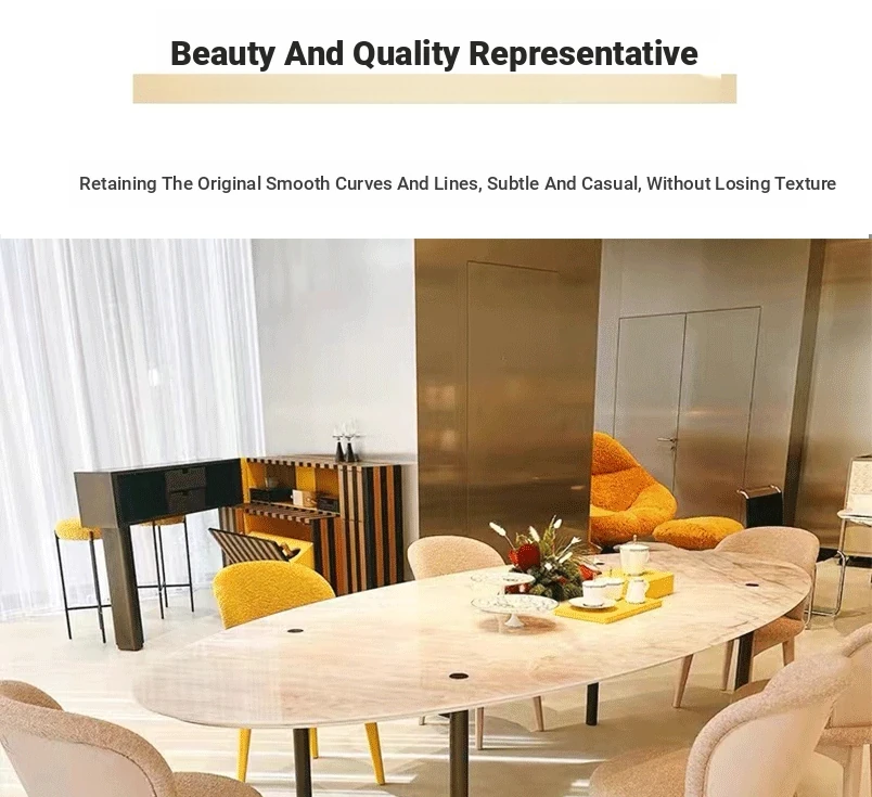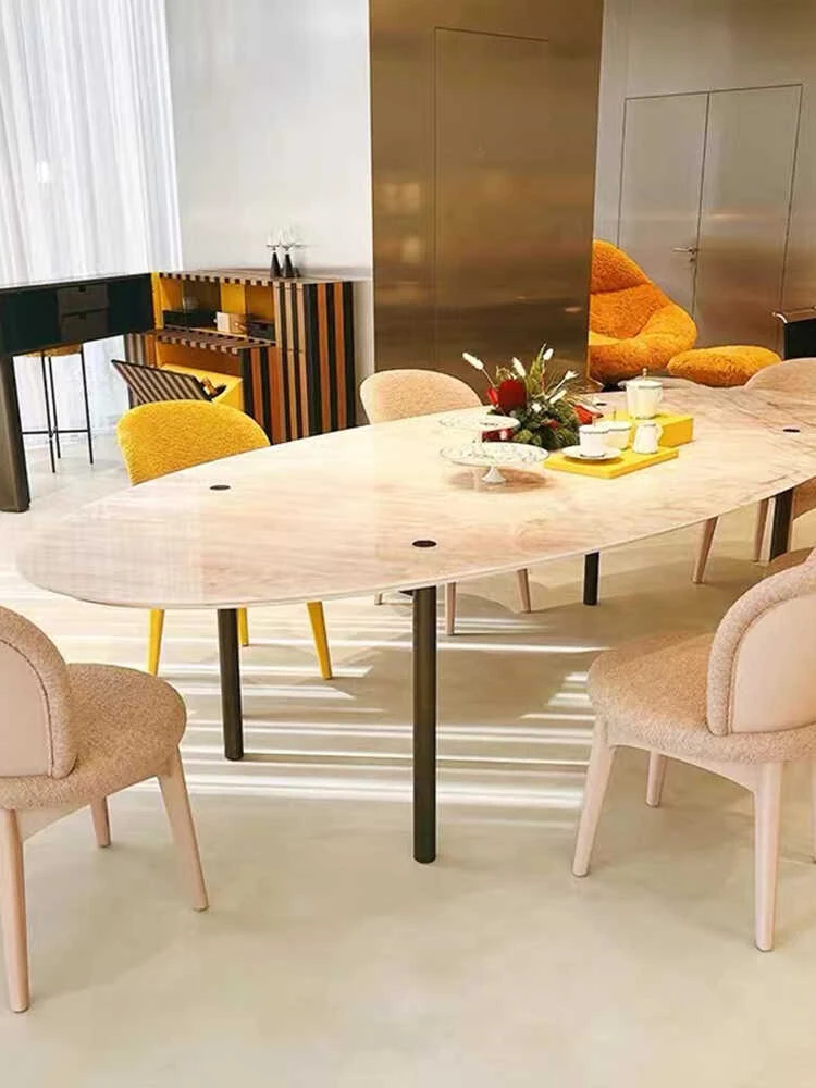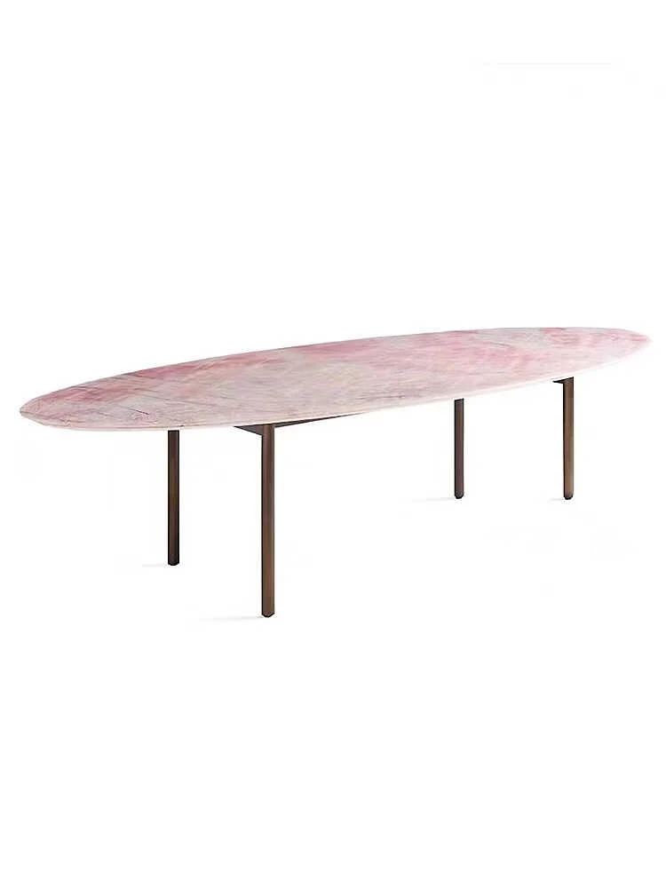 Elegant Pink Luxury Marble Dining Table - Minimalist Designer Oval Table for Italian Villas and Home Use