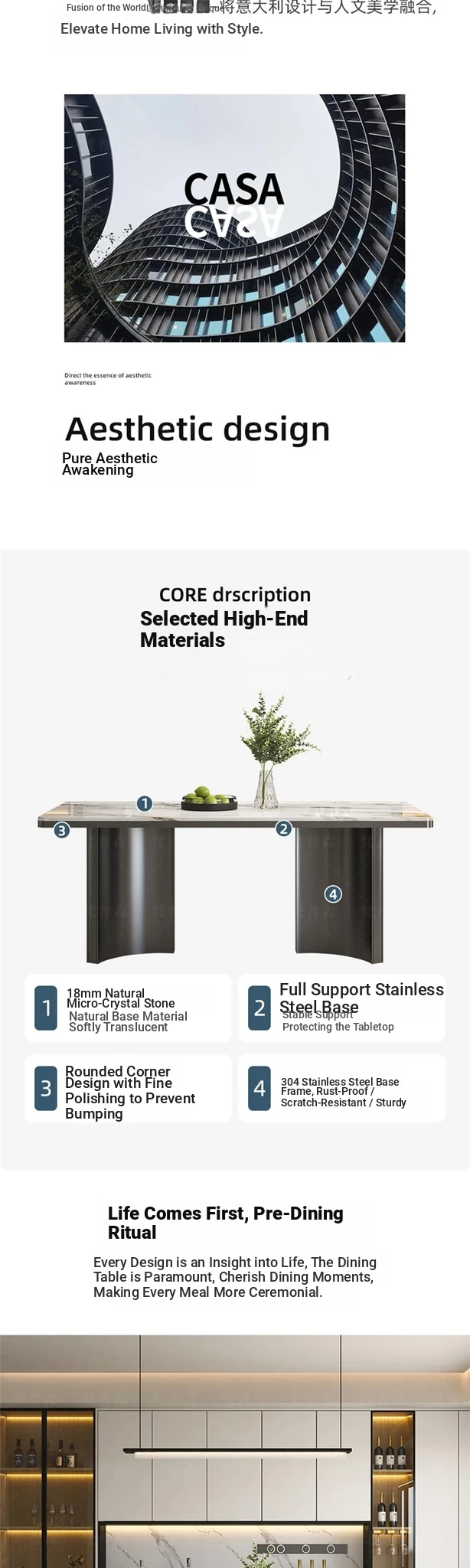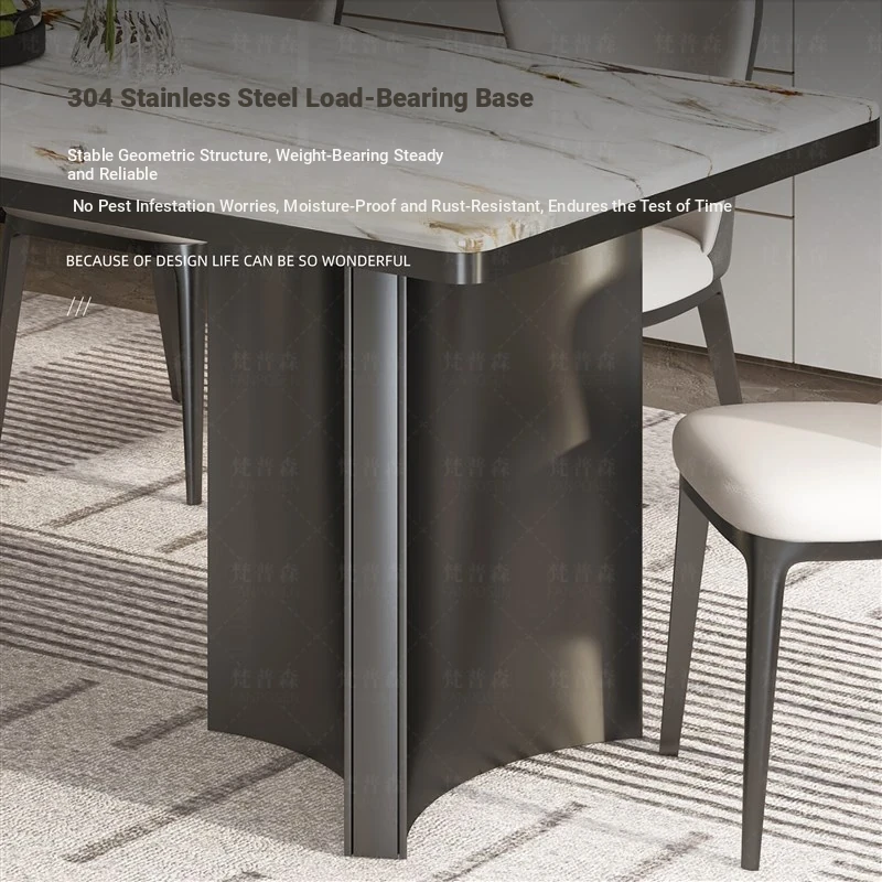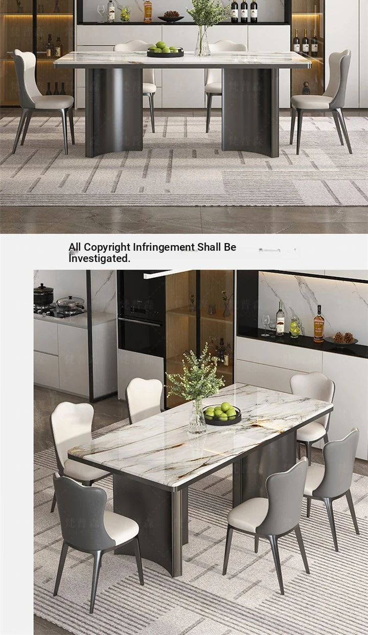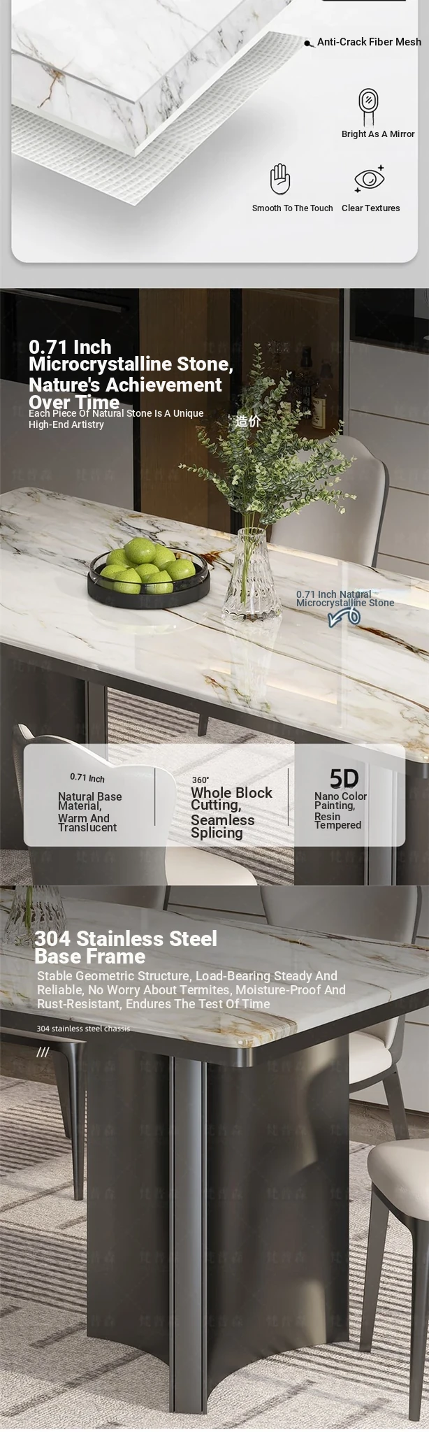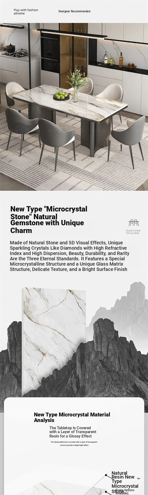 Elegant Rectangular Natural Marble Dining Table Set - 2024 New Luxury Design with Microcrystalline Stone Chairs, Ultra-Crystal Table for a Sophisticated Dining Experience.
