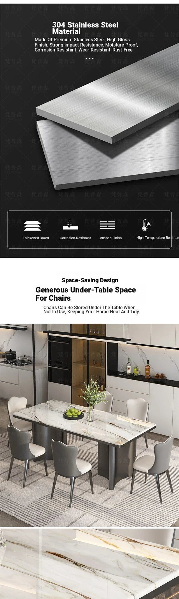 [White Diamond] Natural Microlite Dining Table + Saint Bernard Chair * 6