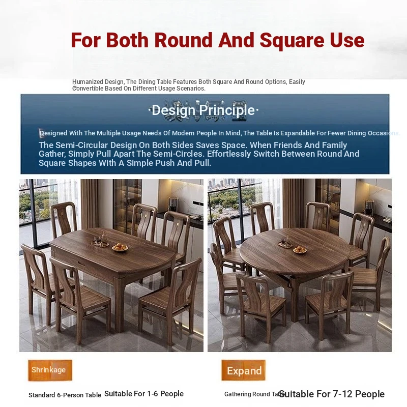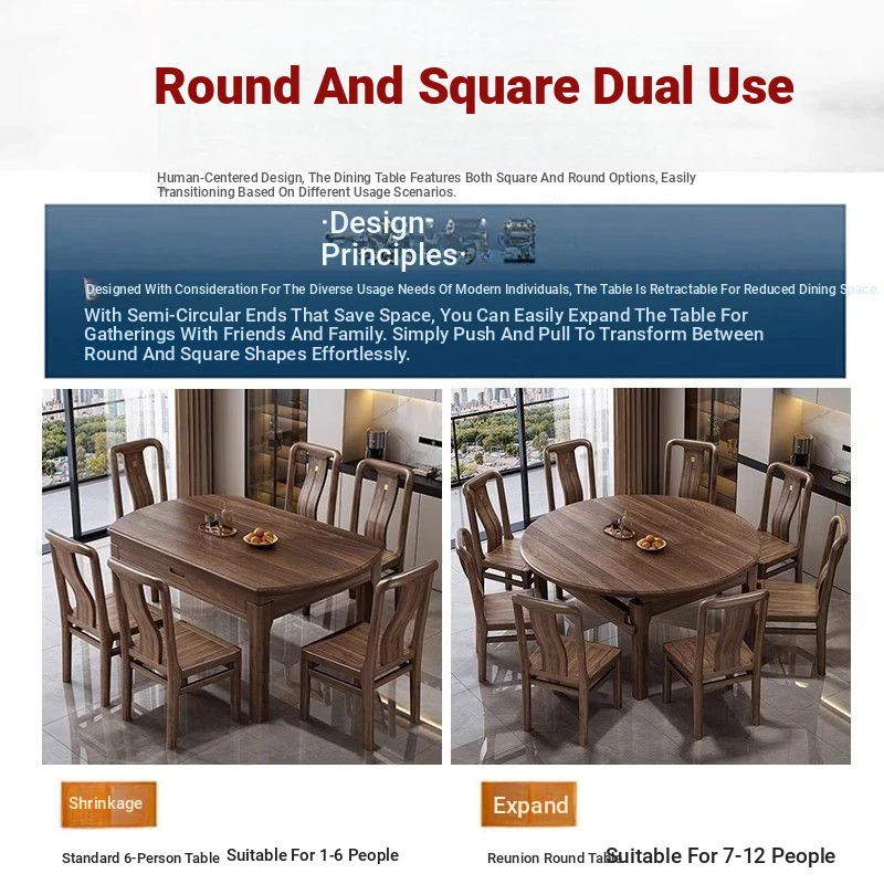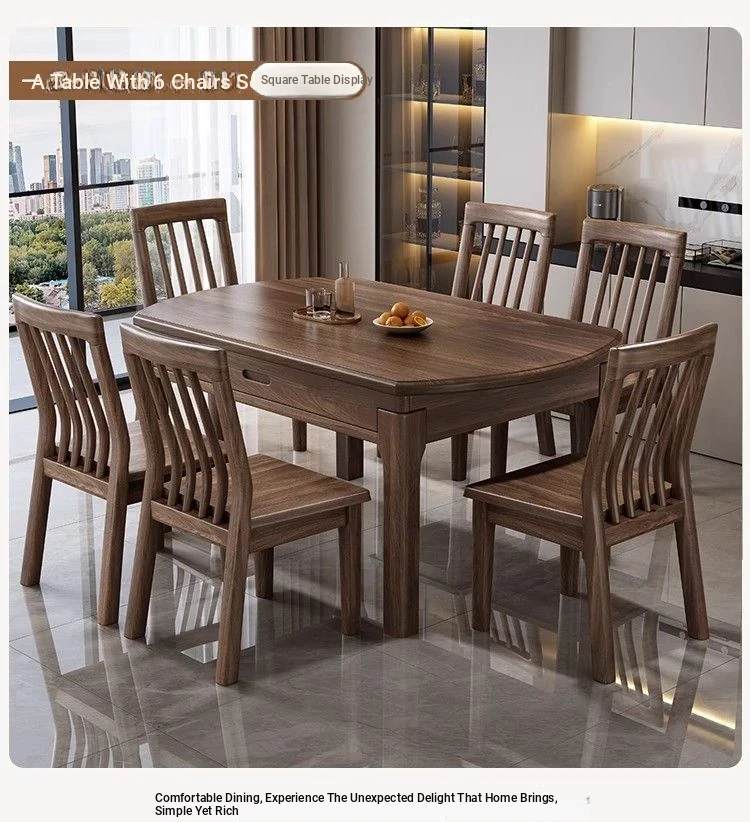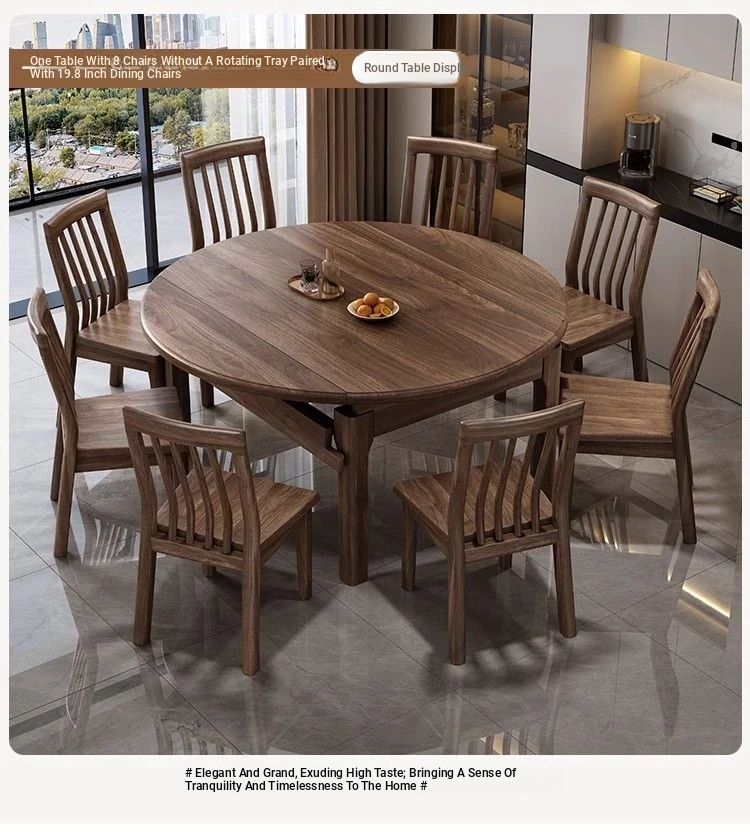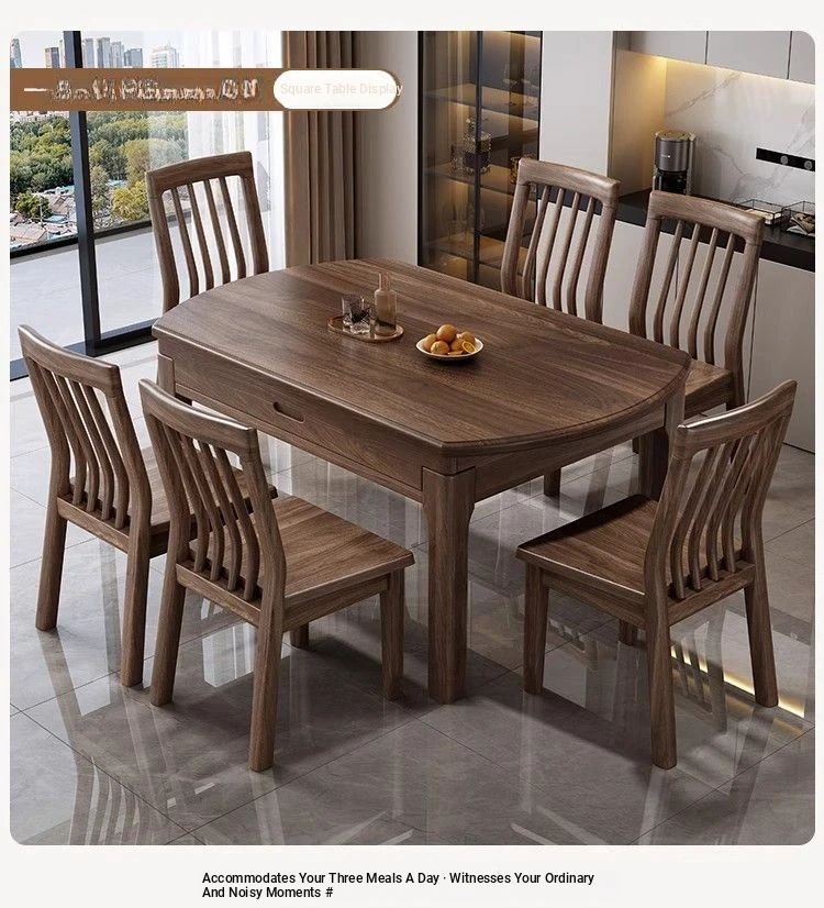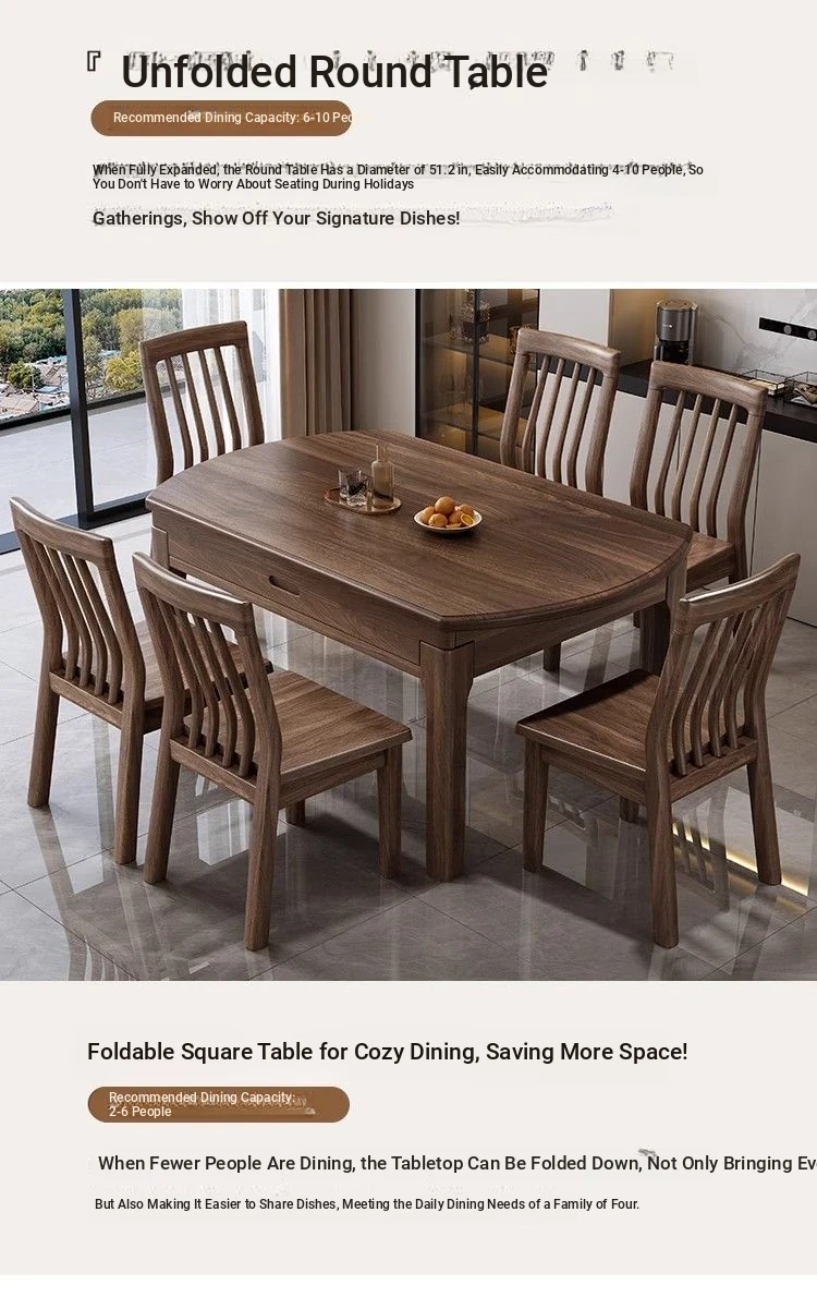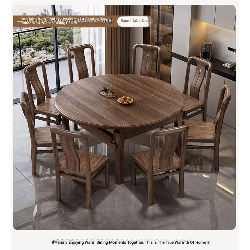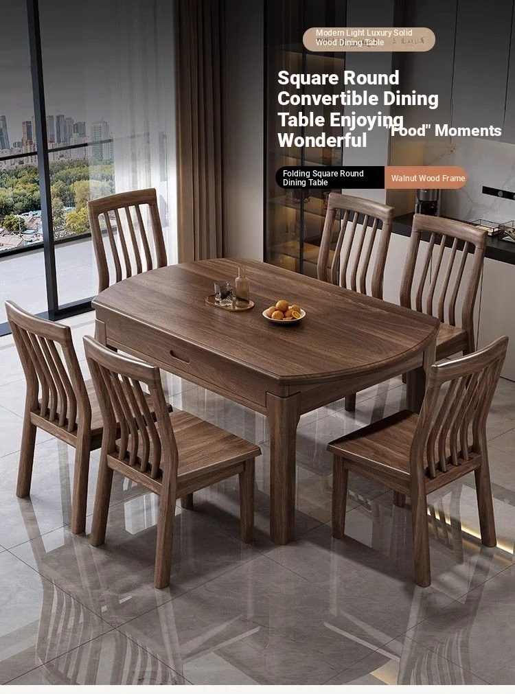 Elegant Solid Walnut Dining Table - Versatile Square & Round Design for Home & Restaurant with Rotating Lazy Susan - Perfect for Family Gatherings and Hotel Use