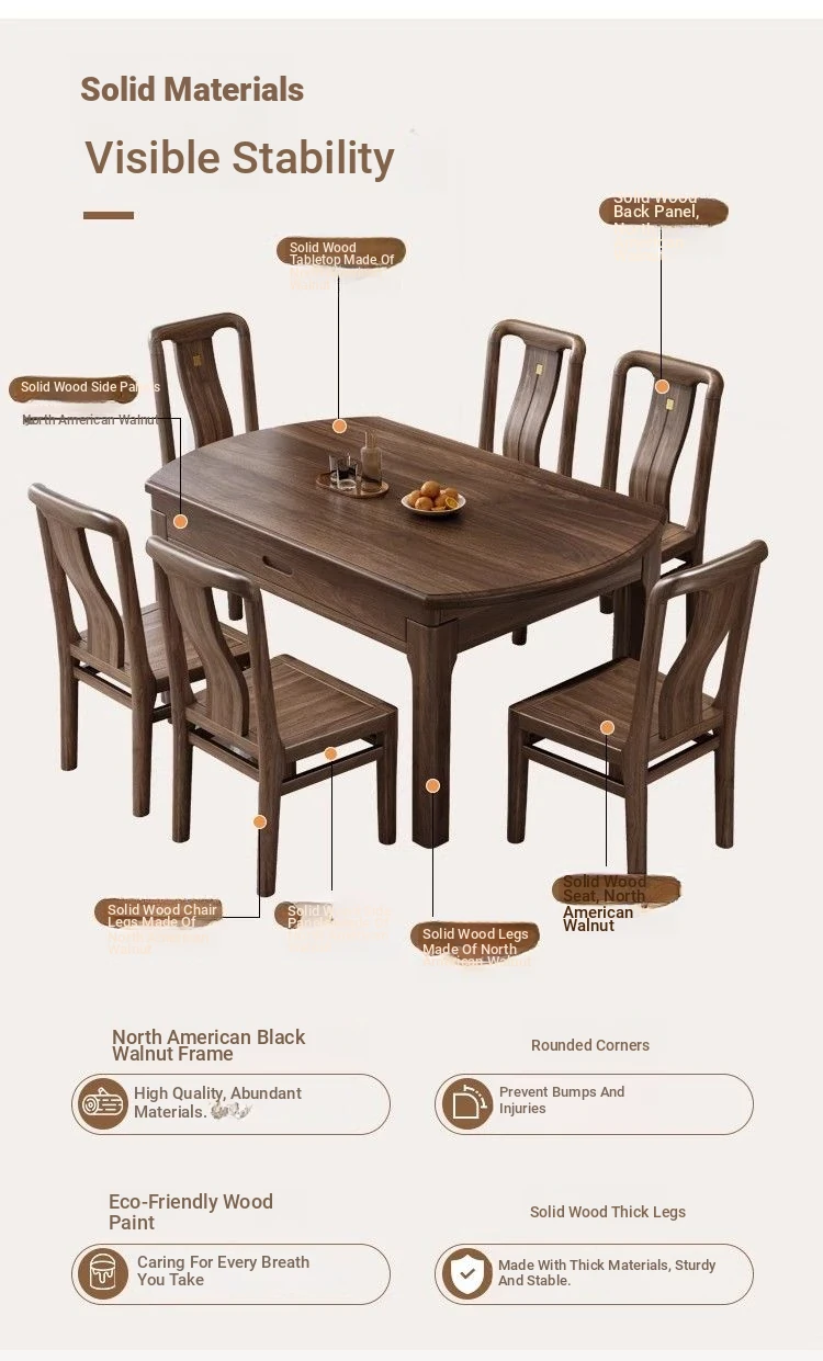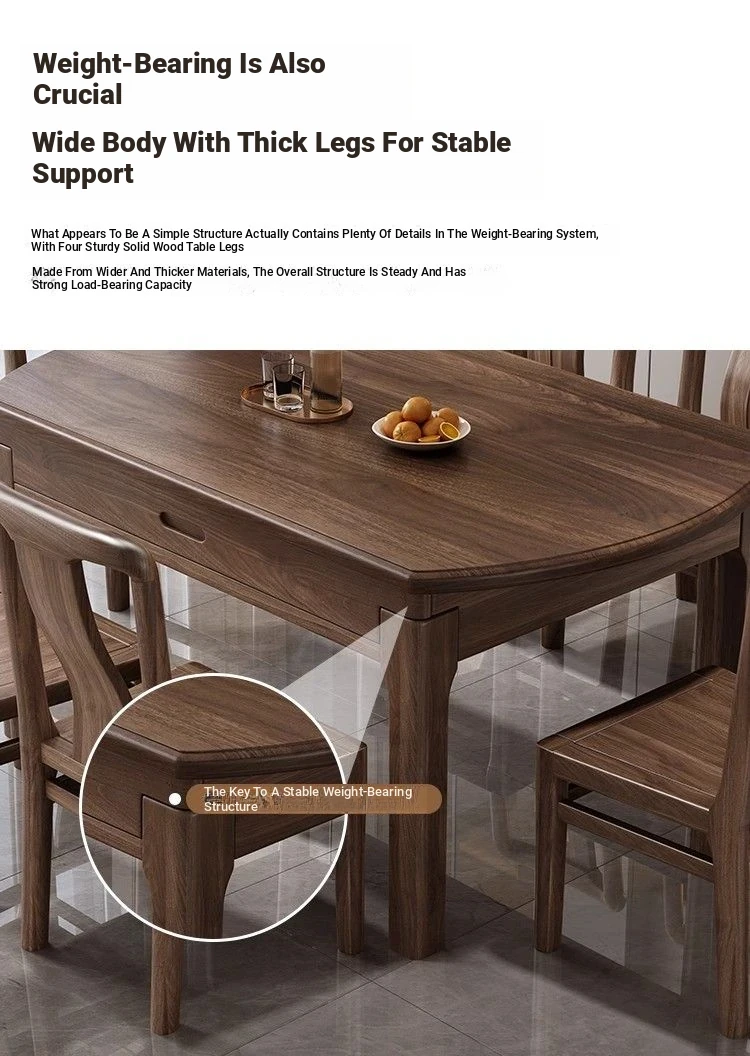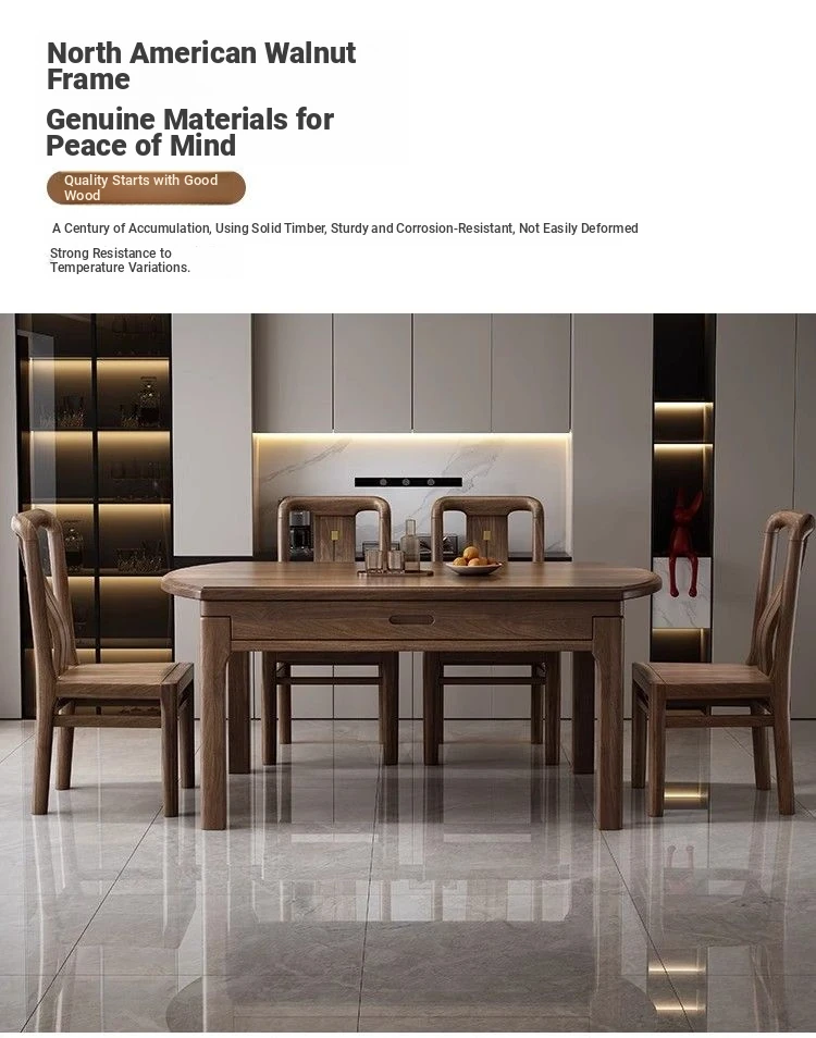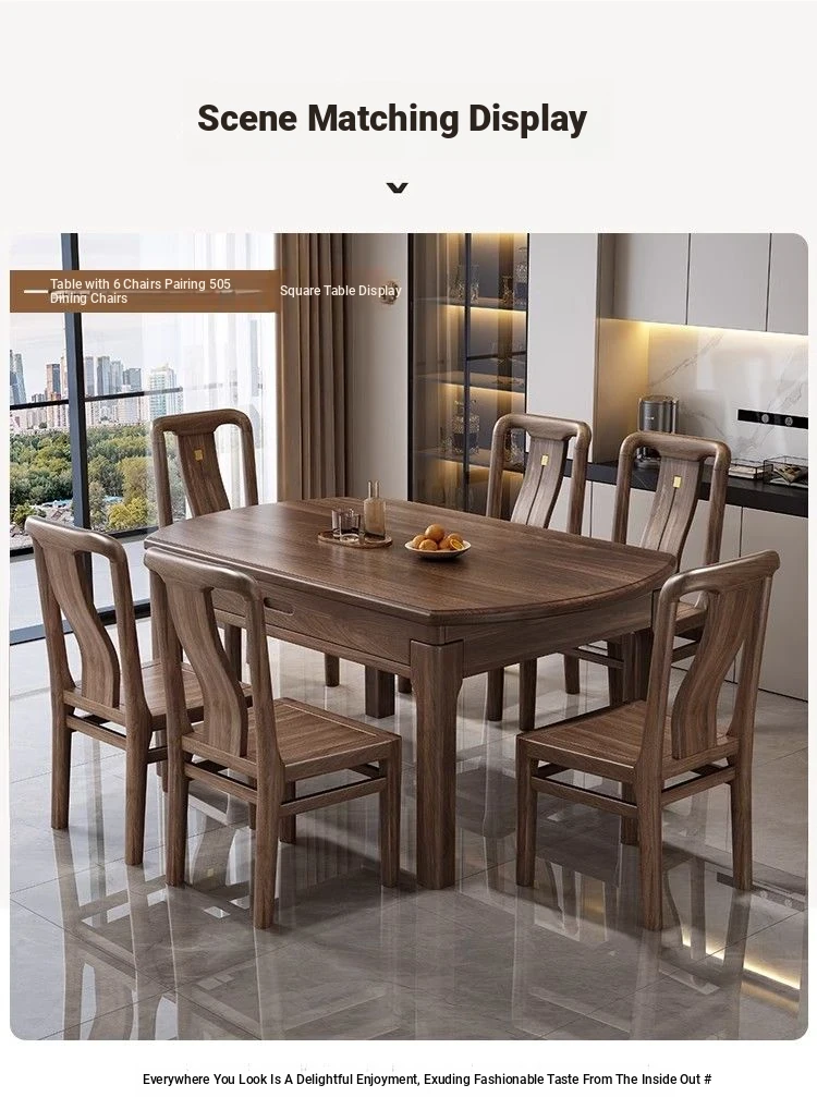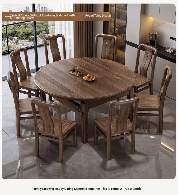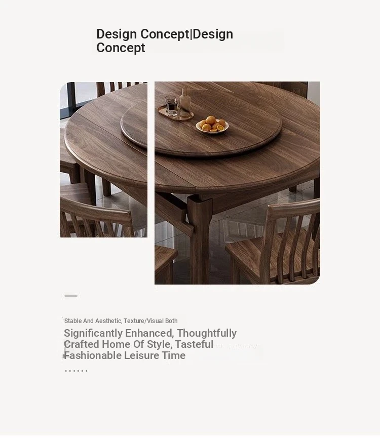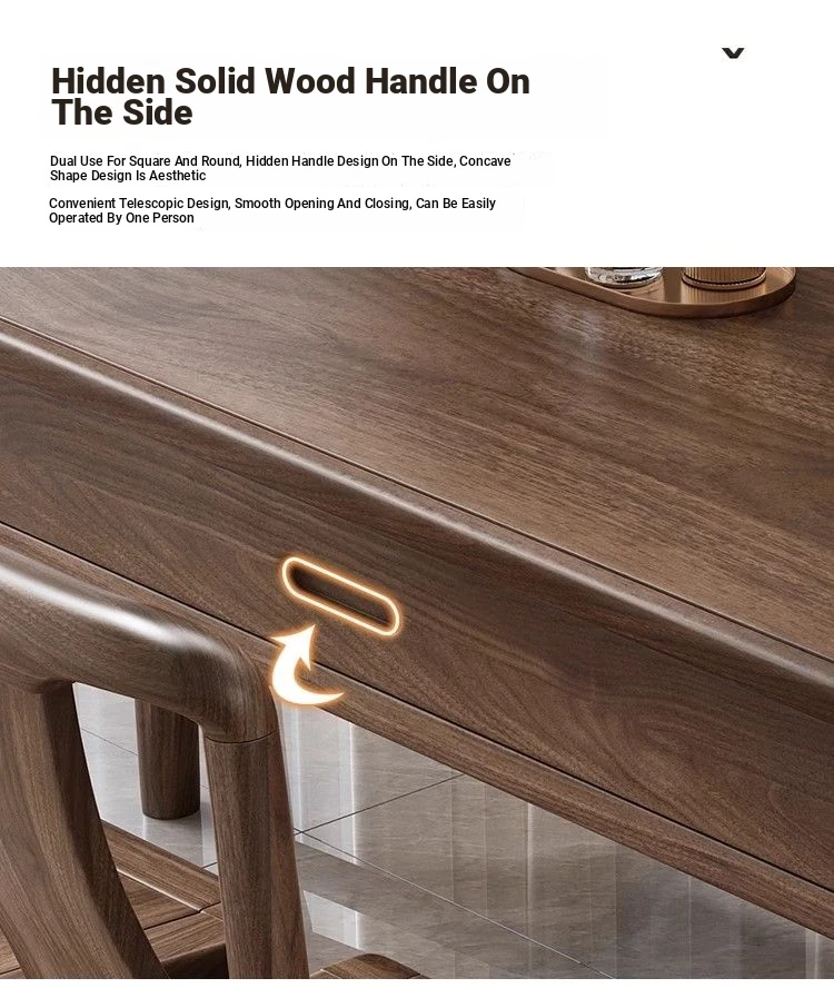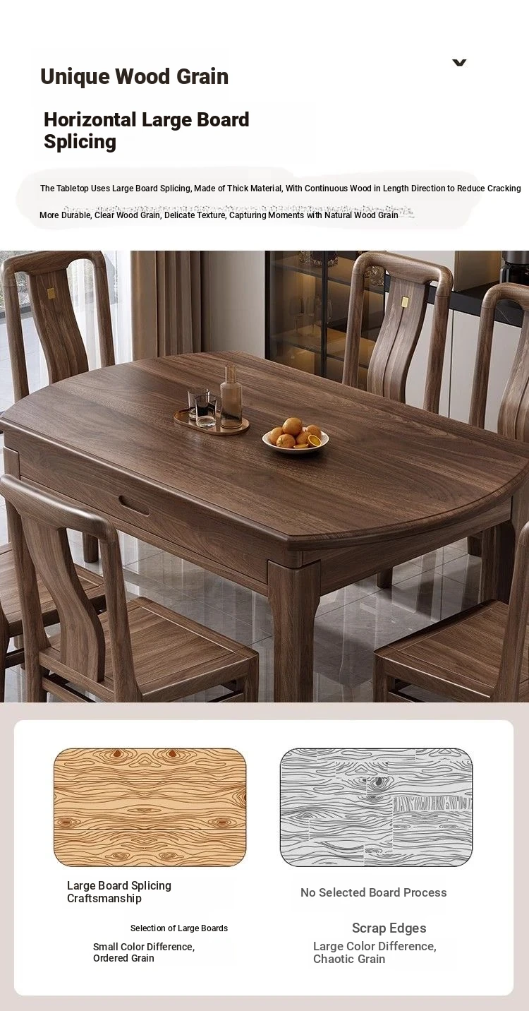 Elegant Solid Walnut Dining Table - Versatile Square & Round Design for Home & Restaurant with Rotating Lazy Susan - Perfect for Family Gatherings and Hotel Use