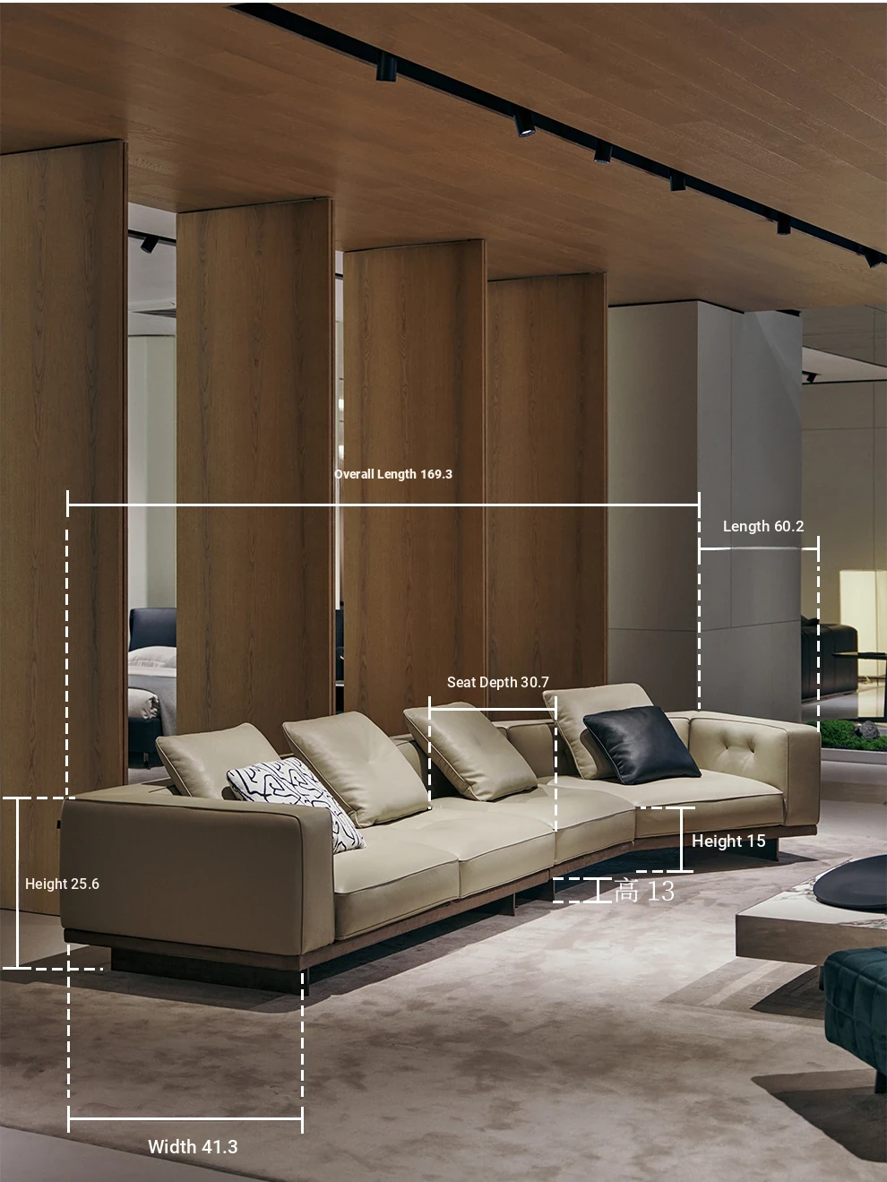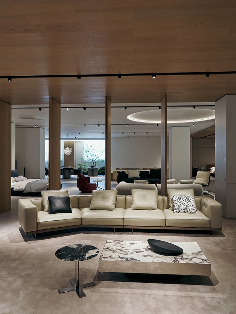 ENDELAN Italian Minimalist Style Original Replica Sofa - Imported Top Grain Leather Chaise Lounge Combination for Elegant Living Spaces
