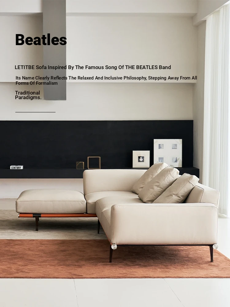 Enn Let It Be Beatles Island Sofa - Premium Italian Minimalist Style Leather Chaise Lounge CB138