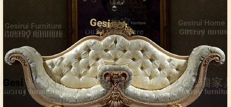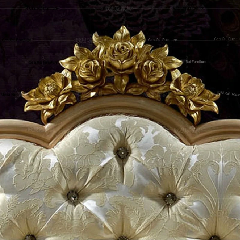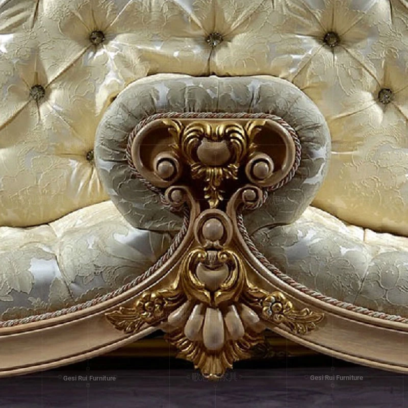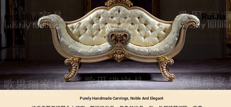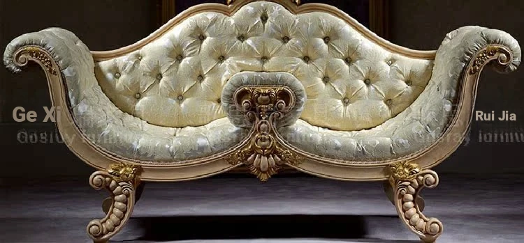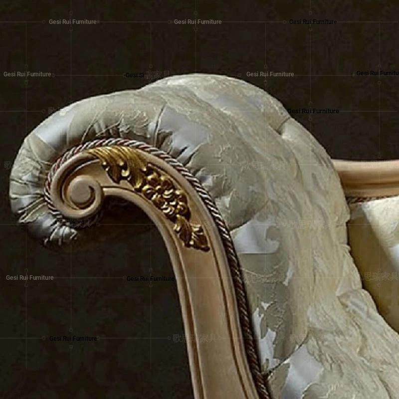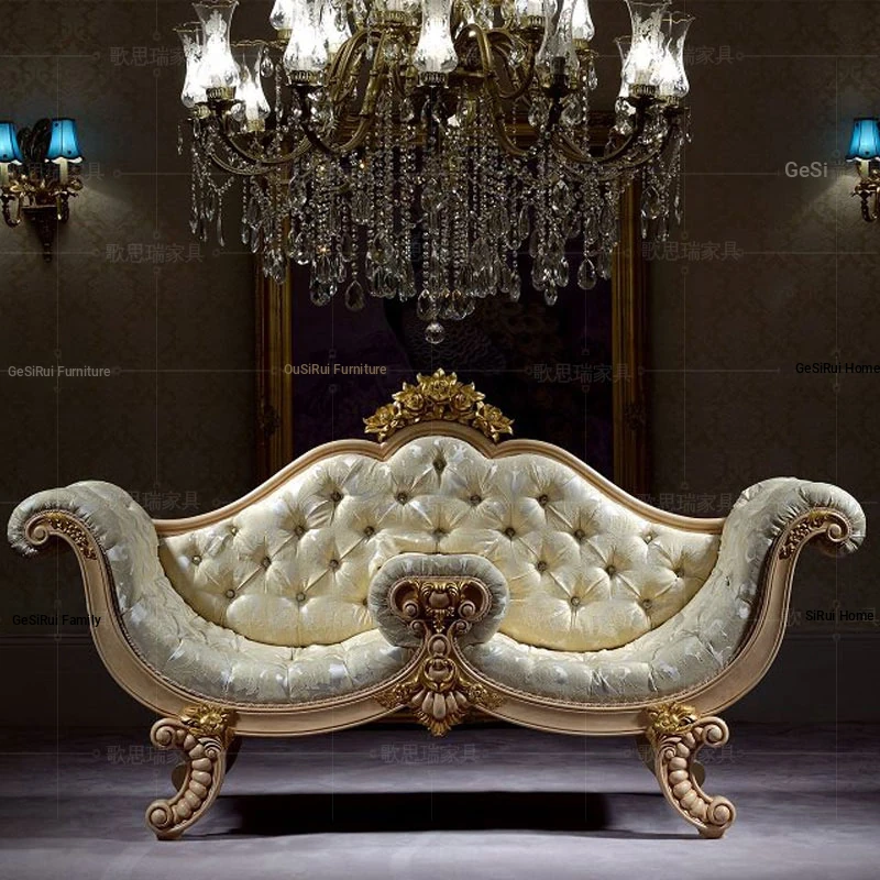 French Fabric Sofa Chair with Solid Wood Carvings - European Style Chaise Lounge for Bedroom Relaxation - Classic Beauty Daybed for Ultimate Comfort