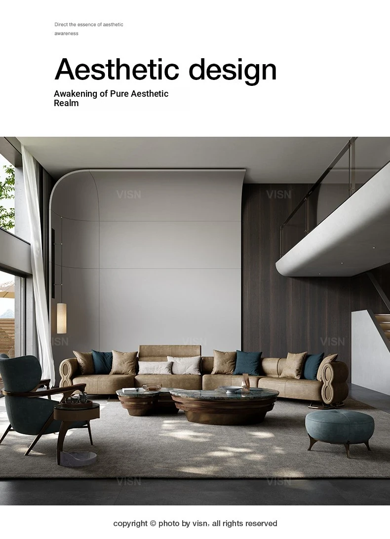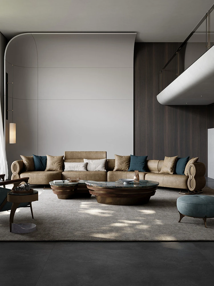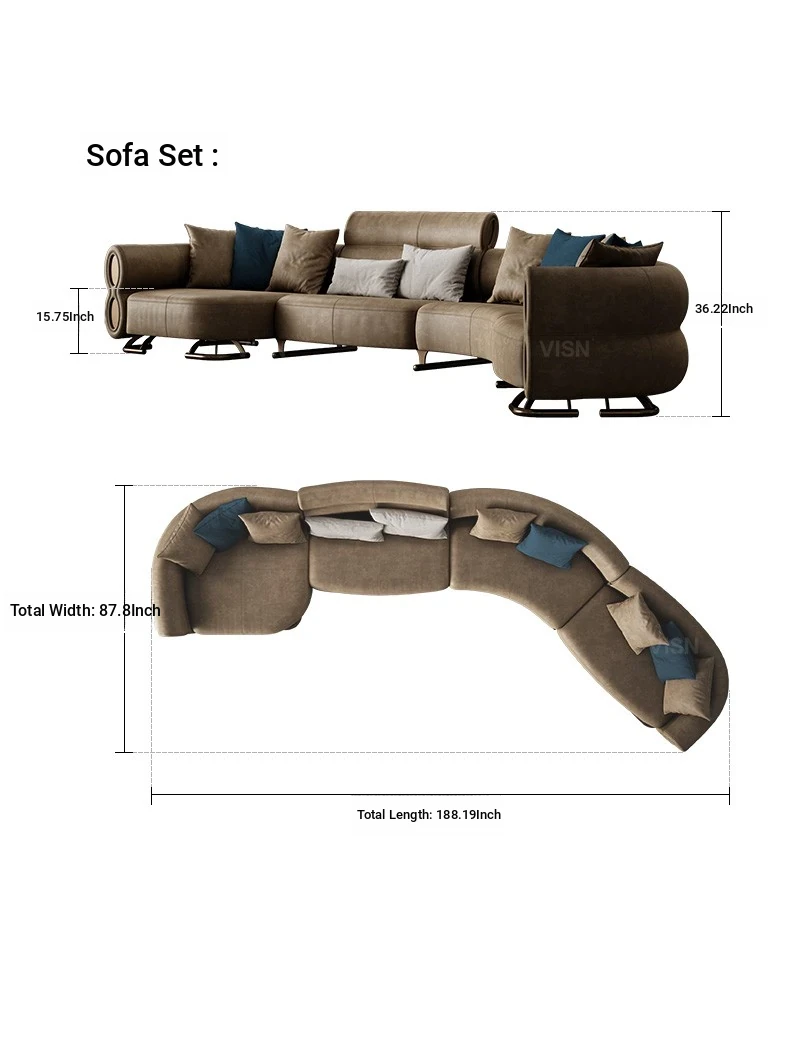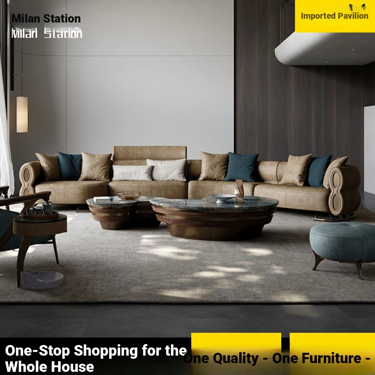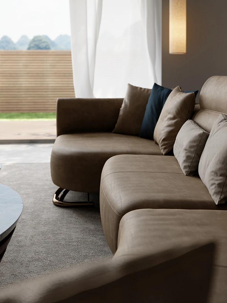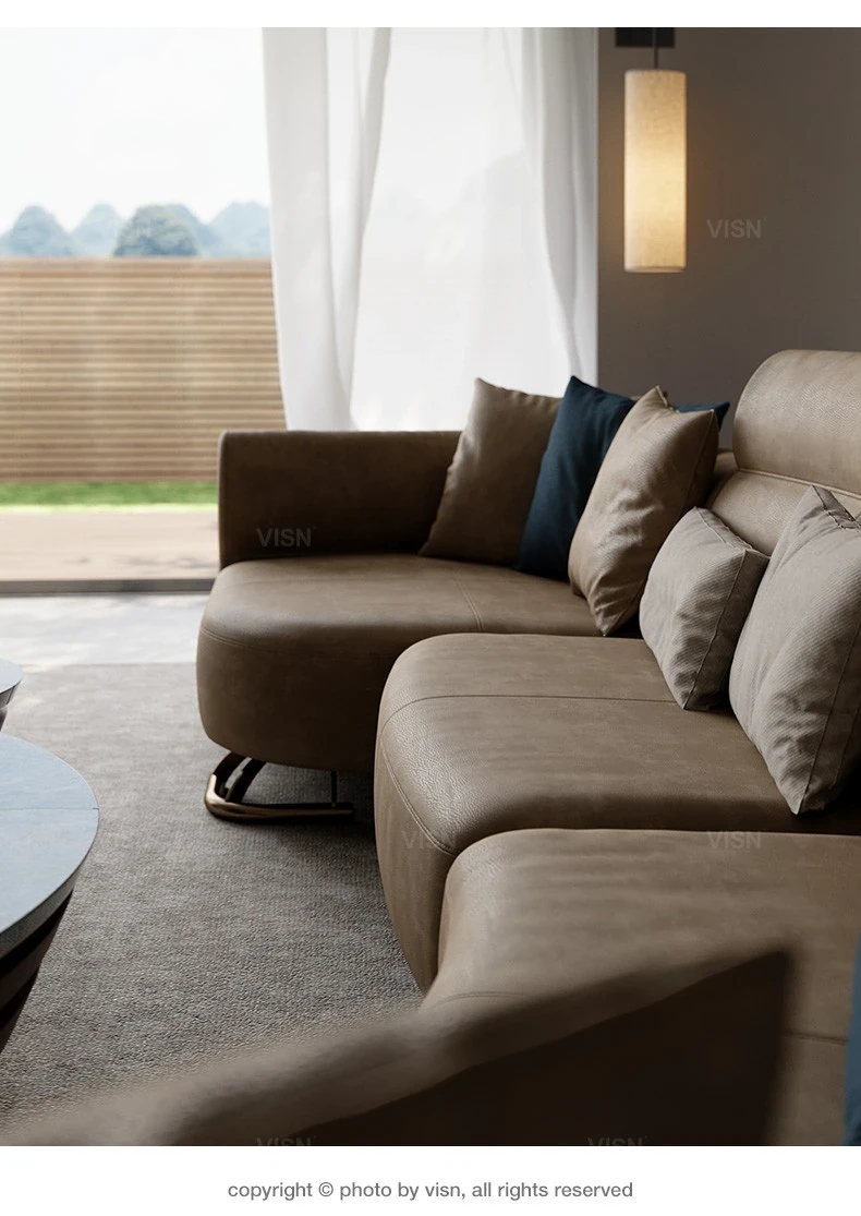 Genuine Leather Geometric Sofa in Suede Finish – Luxurious Corner Modular Sofa for Your Living Room