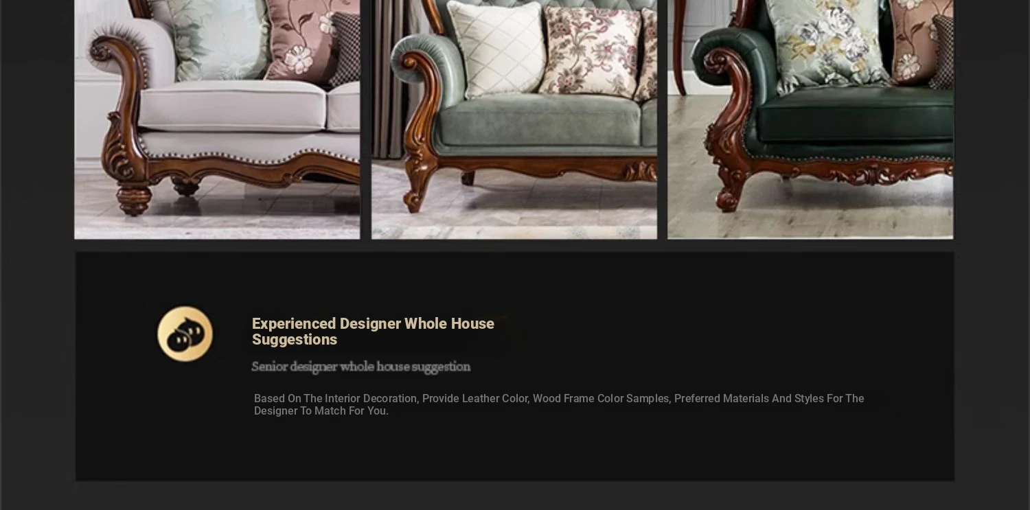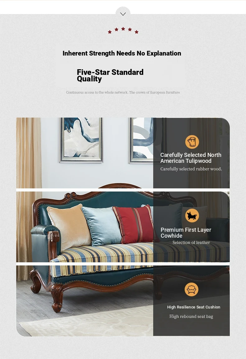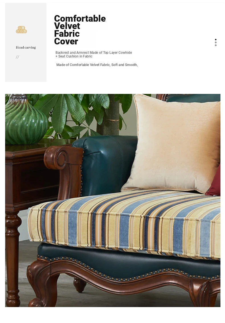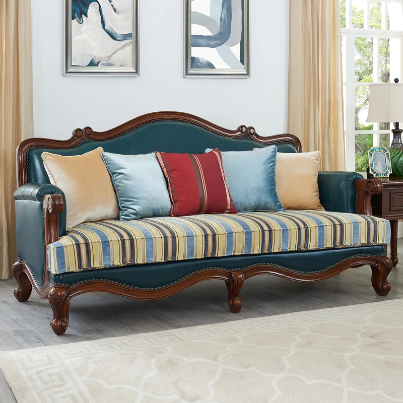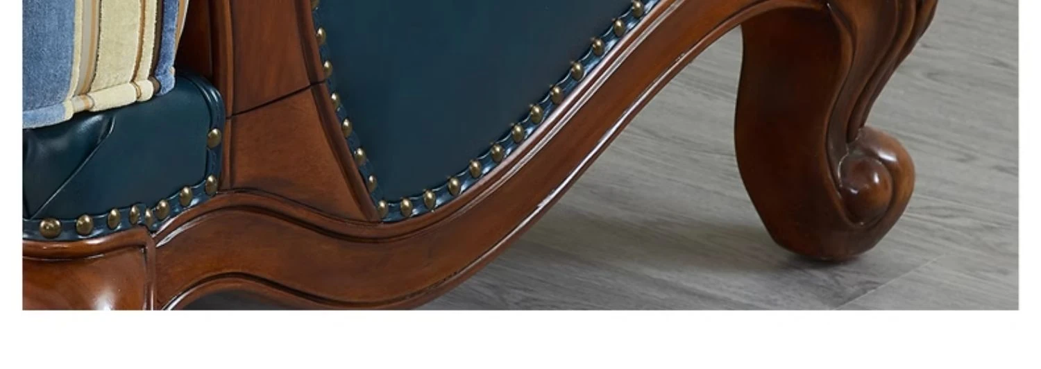 Glandier Solid Wood American Style Genuine Leather Sofa - European Luxury Sofa Set with Top-Grain Cowhide, Perfect for Villas and Home Decor, Featuring Exquisite Carvings.
