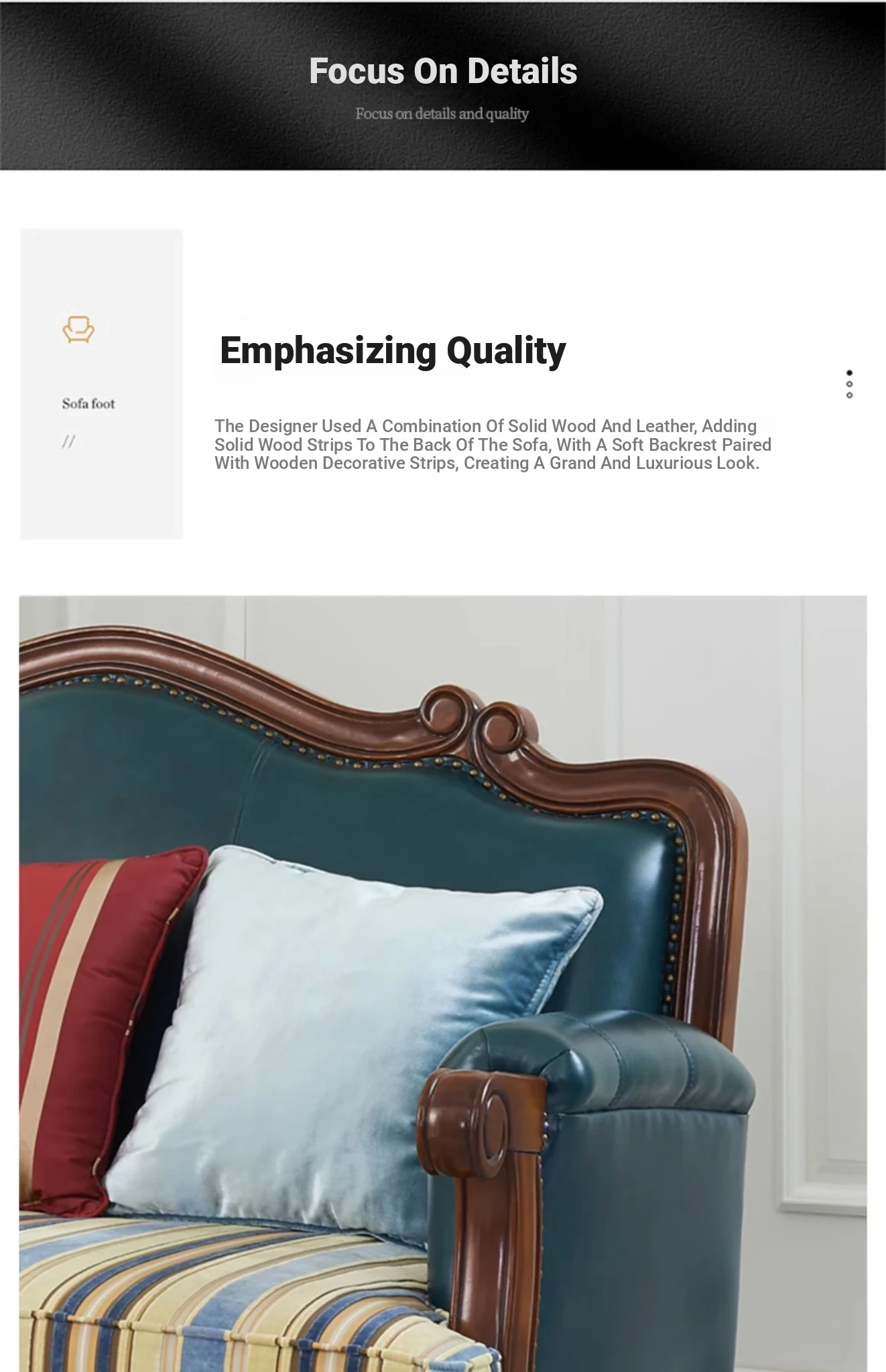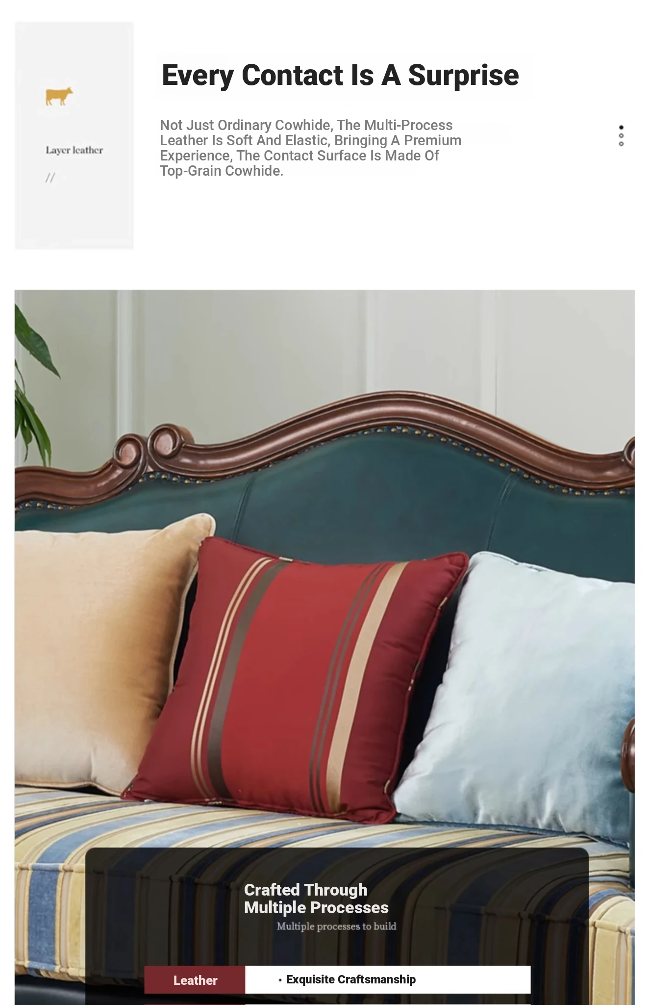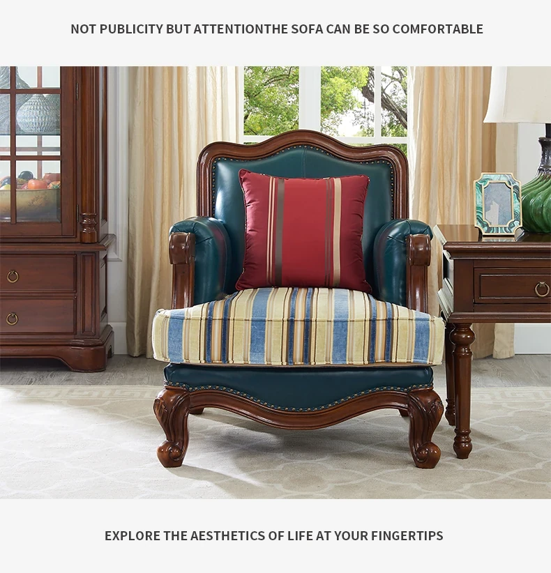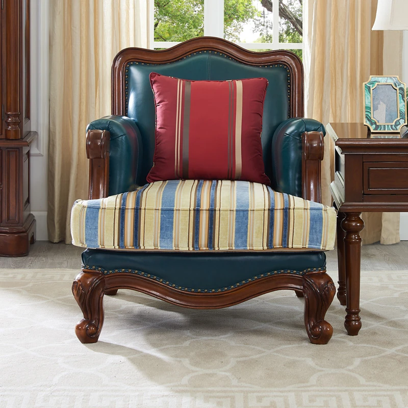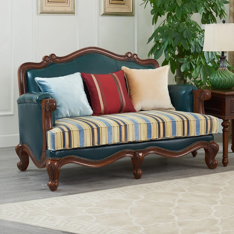 Glandier Solid Wood American Style Genuine Leather Sofa - European Luxury Sofa Set with Top-Grain Cowhide, Perfect for Villas and Home Decor, Featuring Exquisite Carvings.