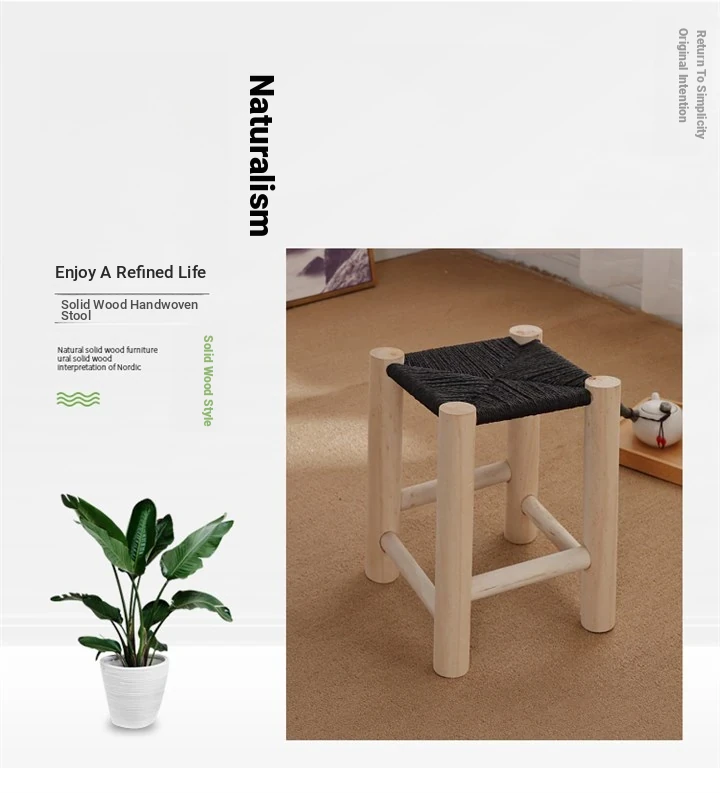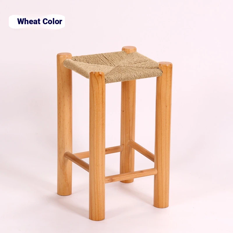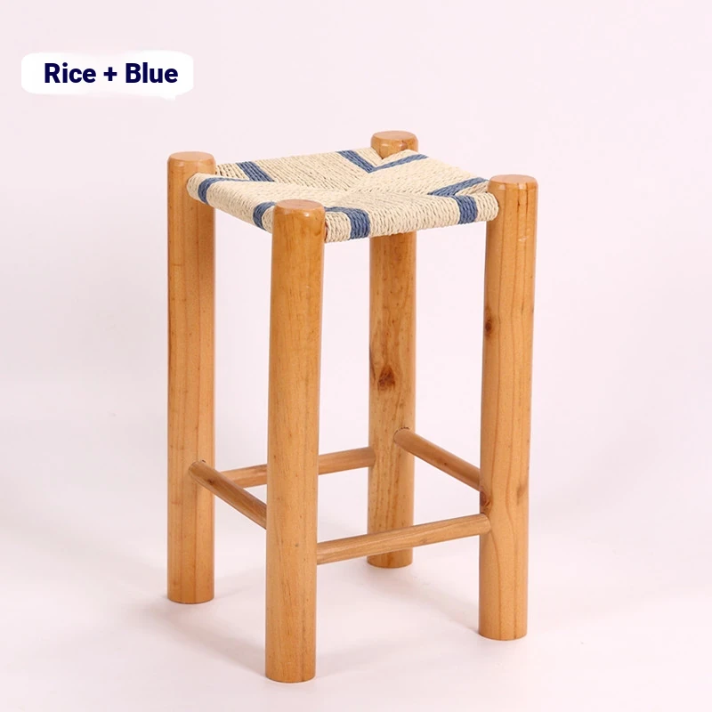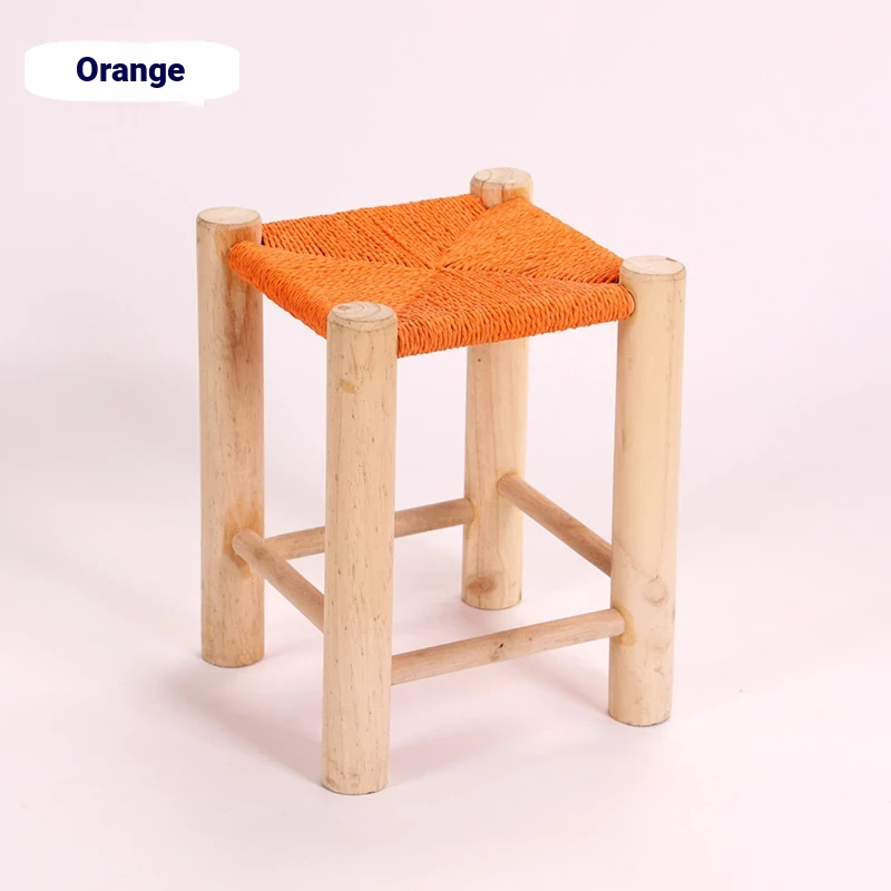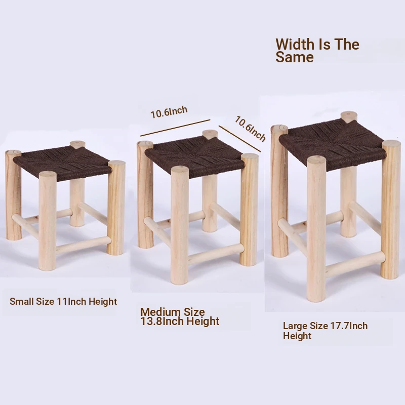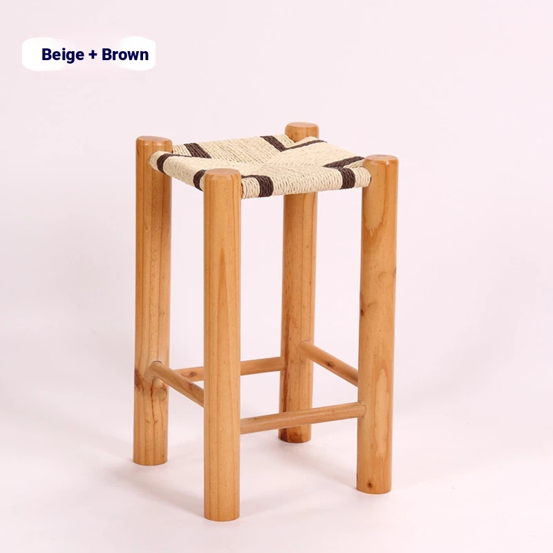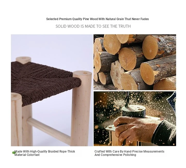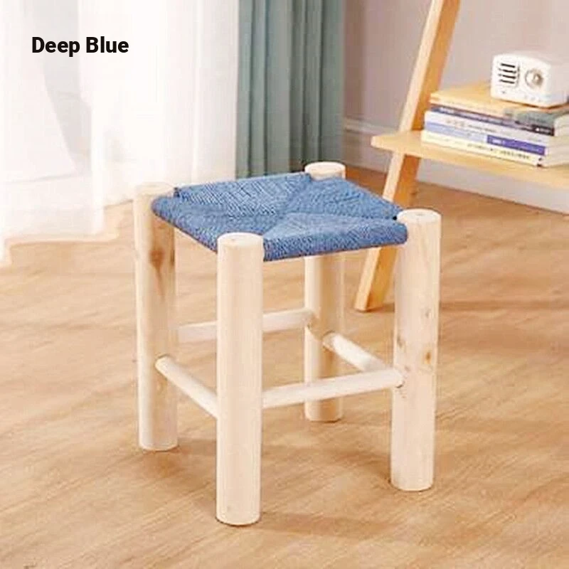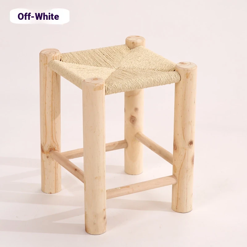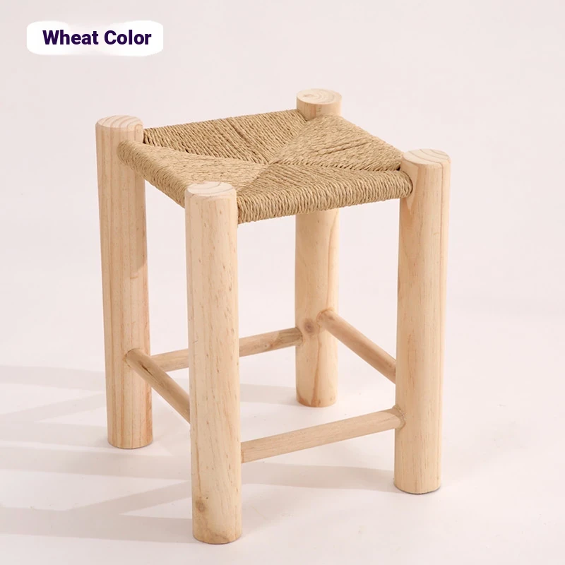 Handcrafted Solid Pine Stool - Simple and Elegant Rattan-Style Chair for Home Use, Ideal for European-Style Makeup Vanity, Coffee Table, or Flower Stand - Perfect for Cozy Guesthouses