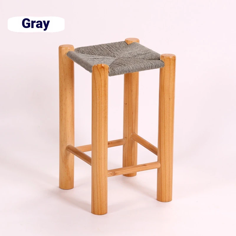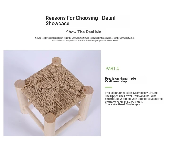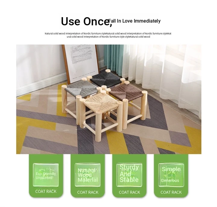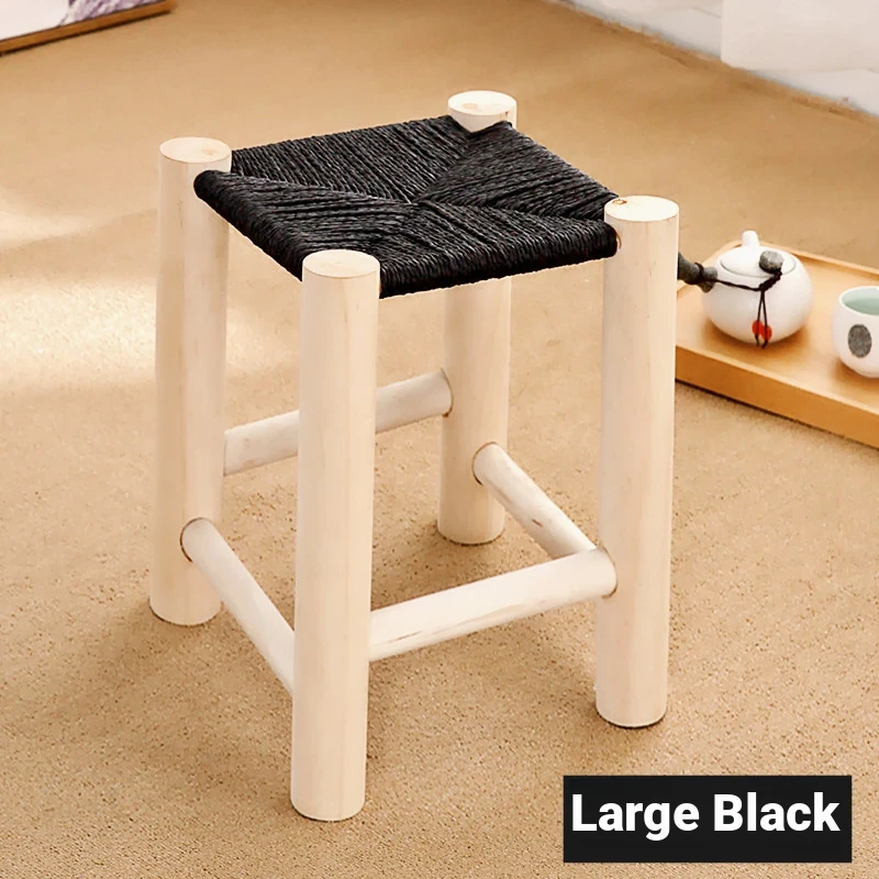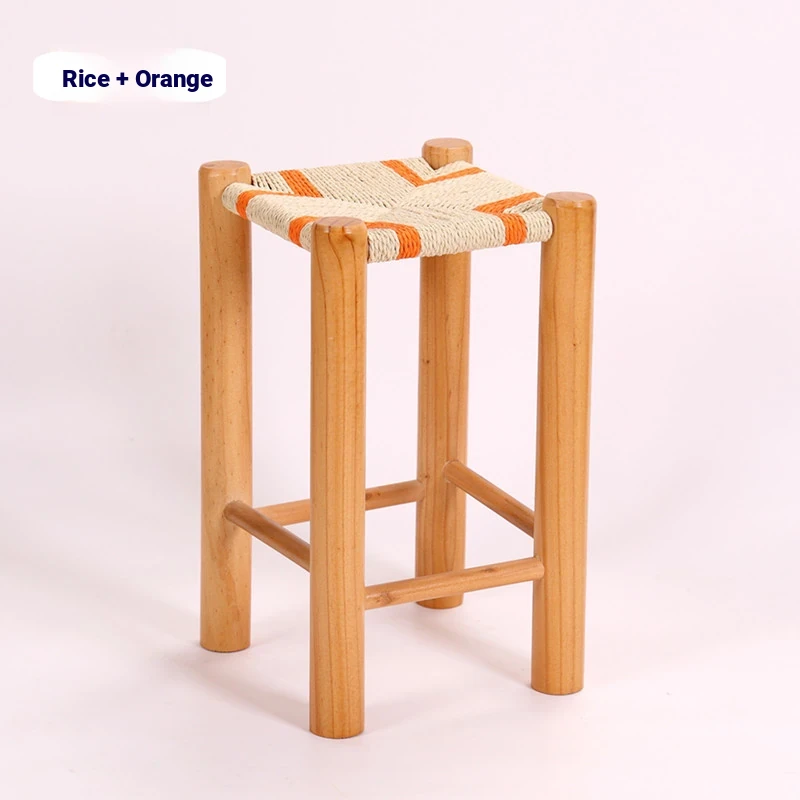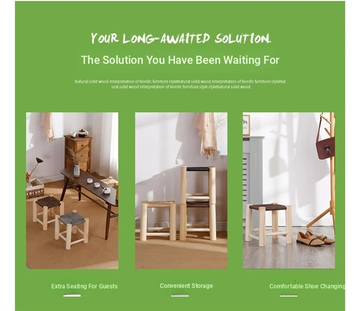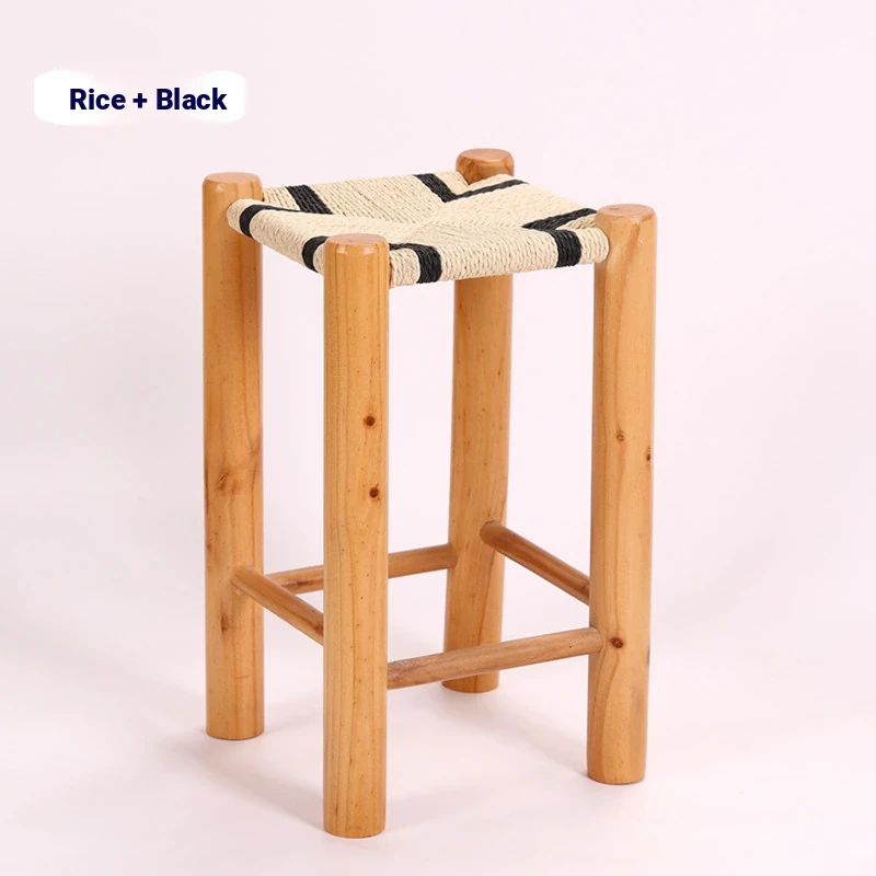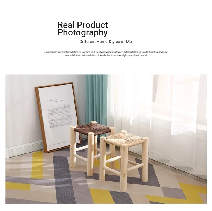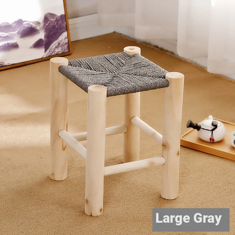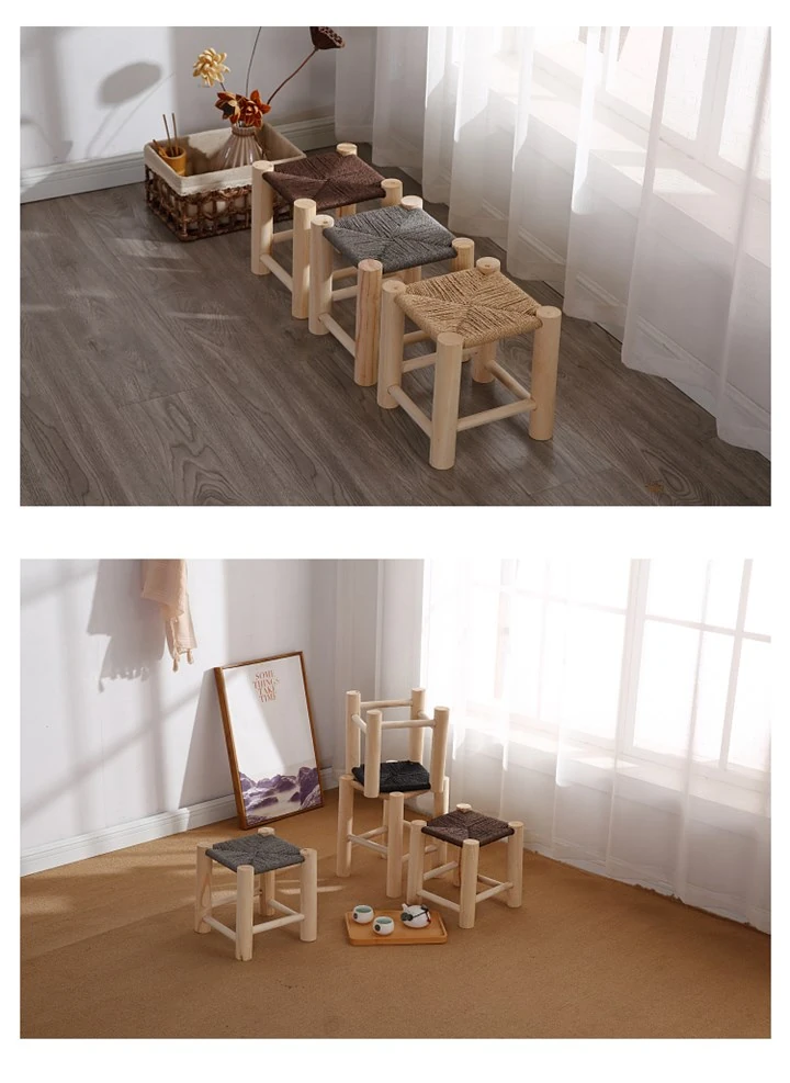 Handcrafted Solid Pine Stool - Simple and Elegant Rattan-Style Chair for Home Use, Ideal for European-Style Makeup Vanity, Coffee Table, or Flower Stand - Perfect for Cozy Guesthouses