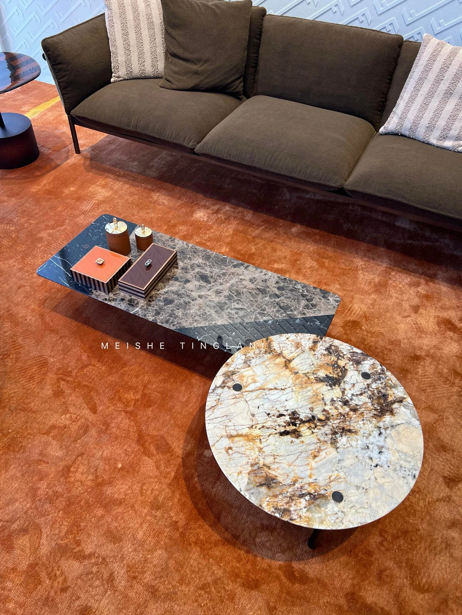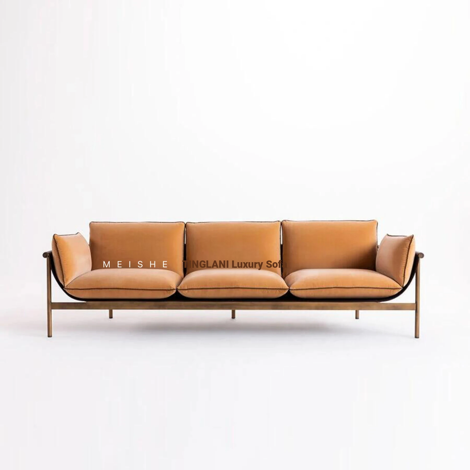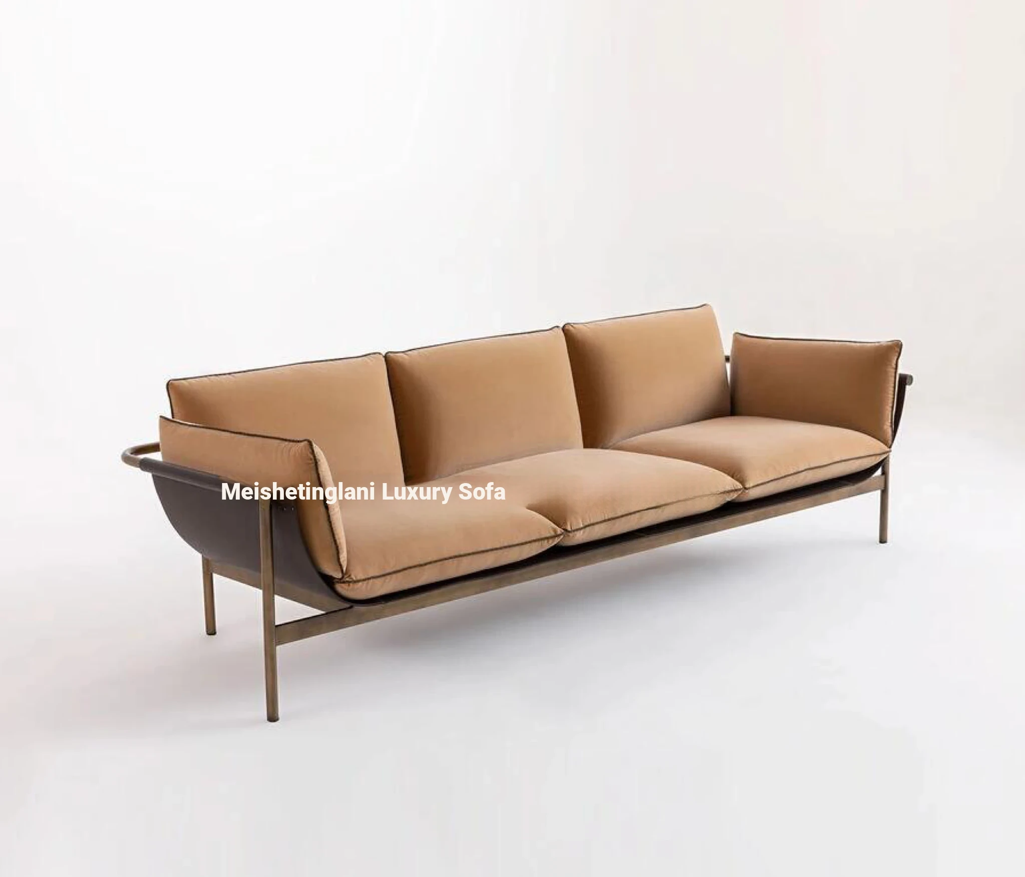Italian Finti Luxurious Fabric Sofa - Minimalist Bauhaus Style 3-Seater Saddle Leather Combination Sofa for Small Spaces