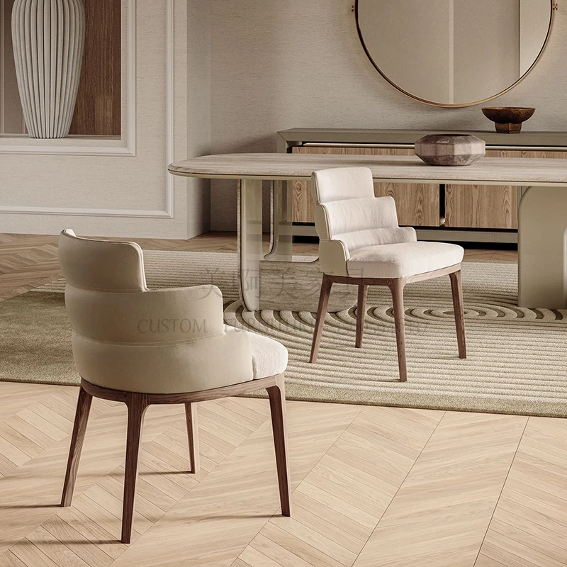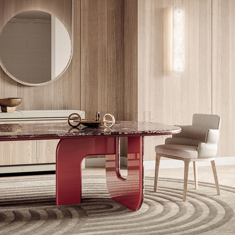 Italian Luxury Designer Marble Dining Table Set with French Vintage Aesthetic - Elegant Rock Plate Dining Table and Chair Combo for Villas