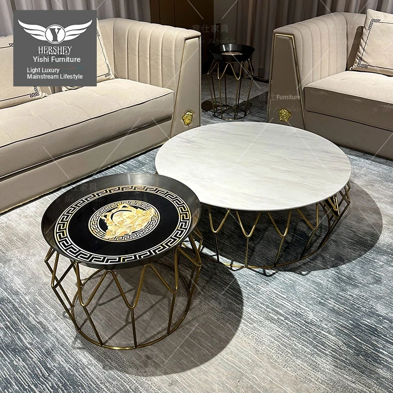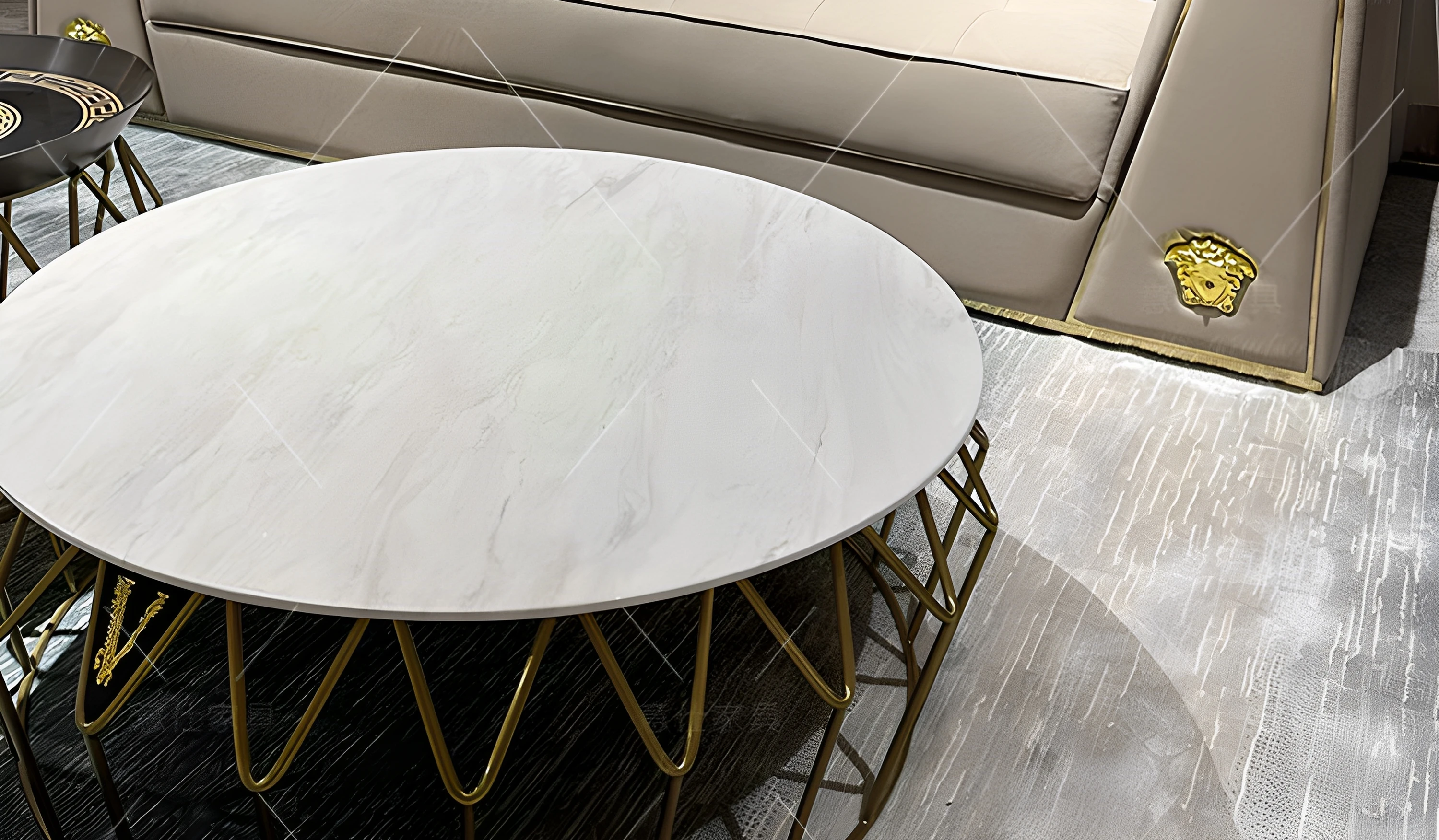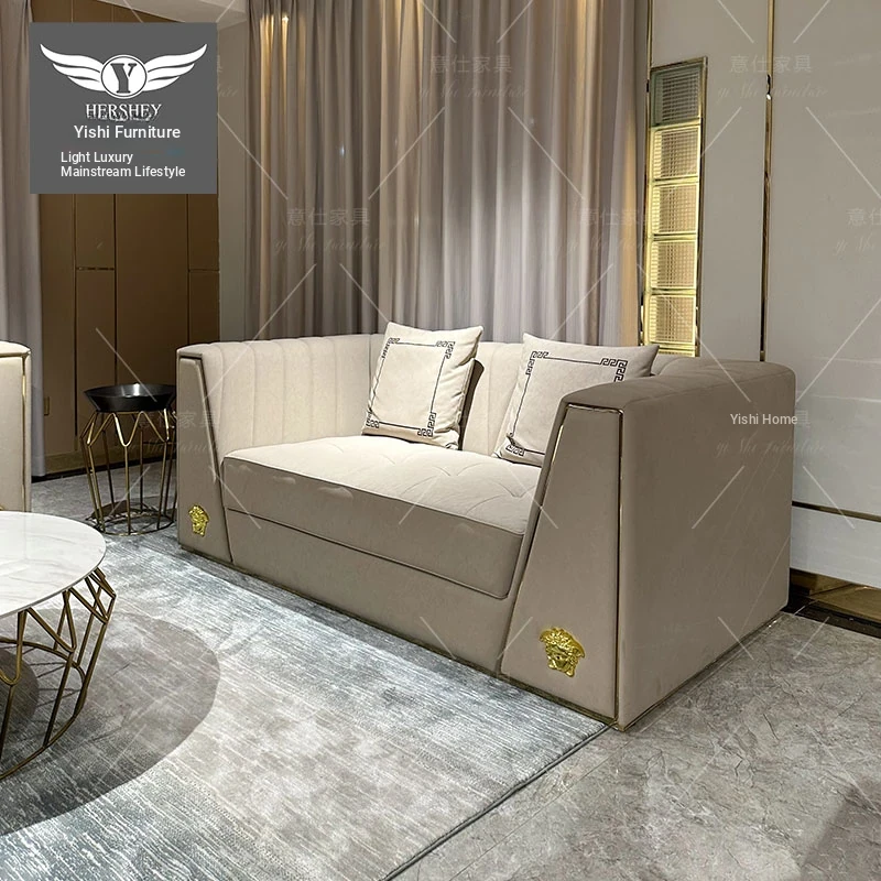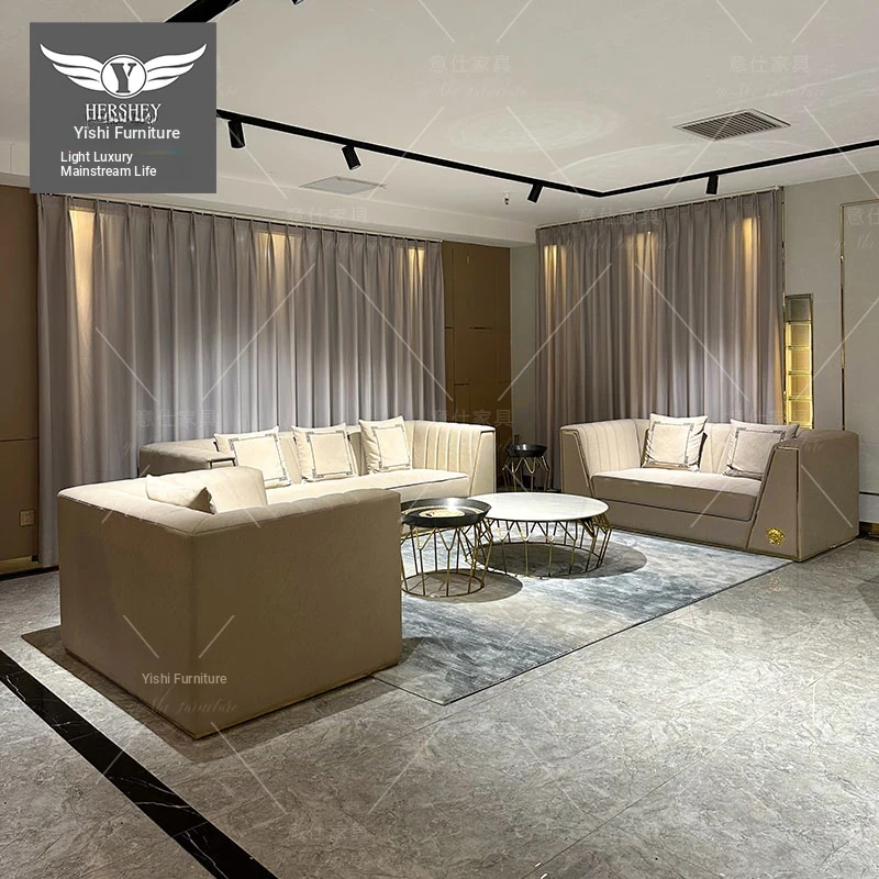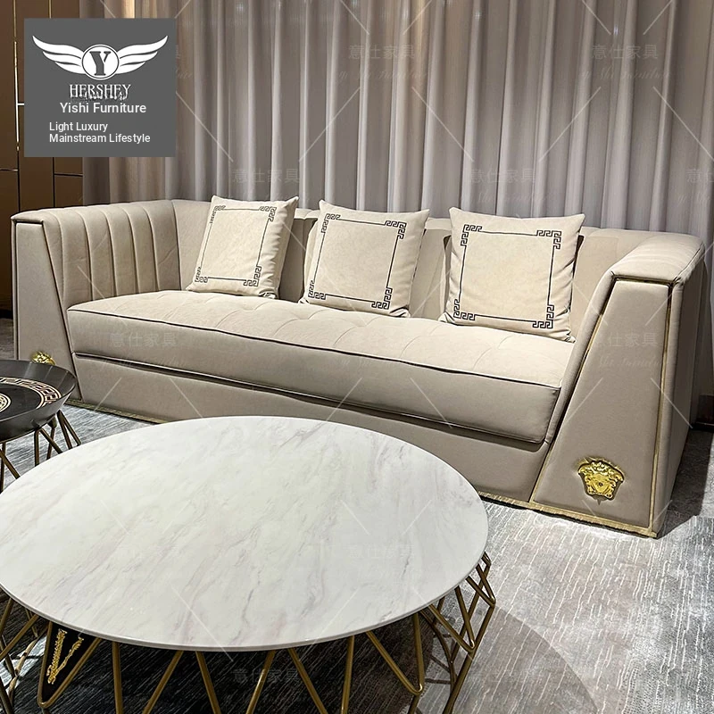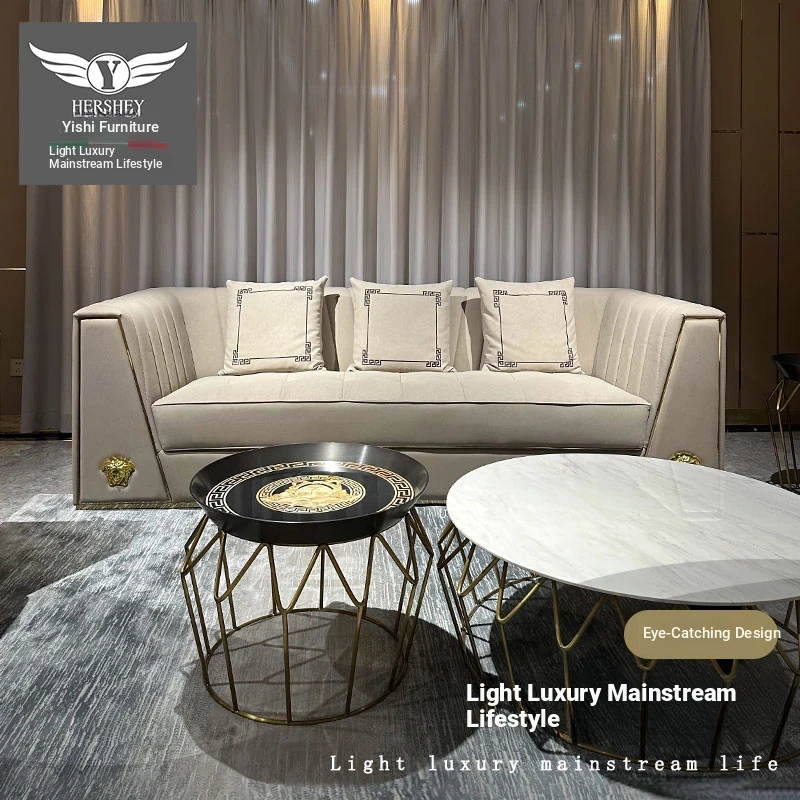 Italian Luxury Velvet Sofa - Elegant Three-Seat Genuine Leather for Villas and Clubs, Perfect for Living Room with Coffee Table Furniture
