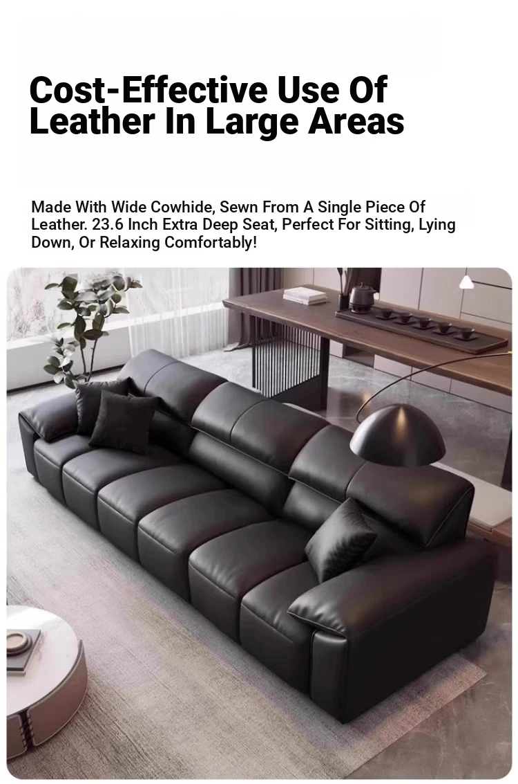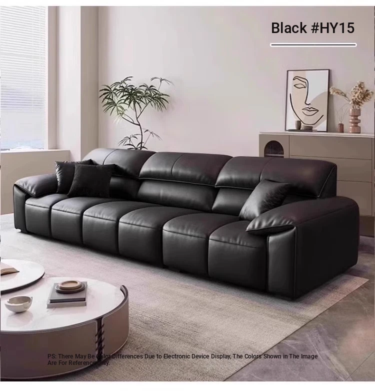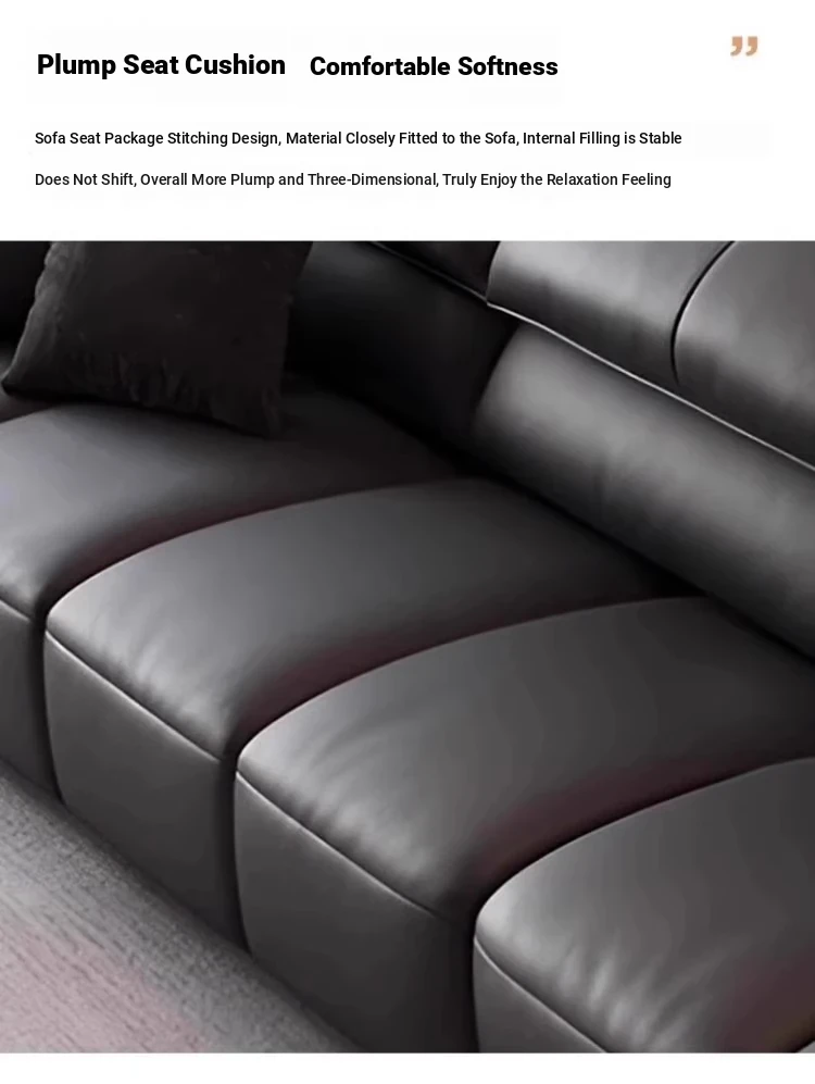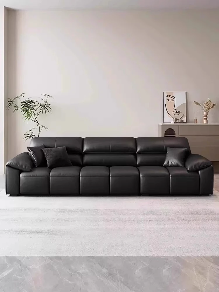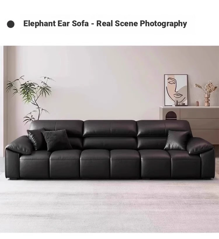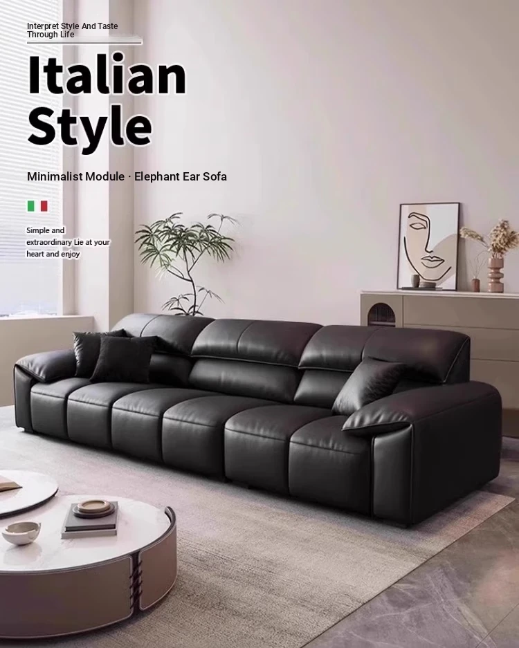 Italian Minimalist Luxury Genuine Leather Sofa Set with Elephant Ear Design - Stylish and Comfortable Large Black Cowhide Sofa Combination for Modern Living Spaces