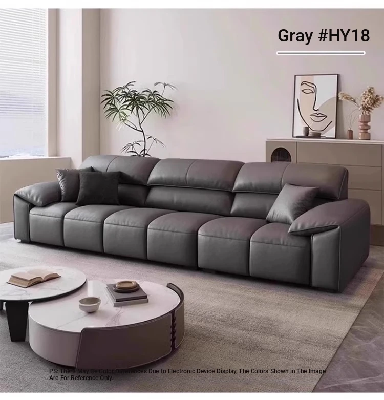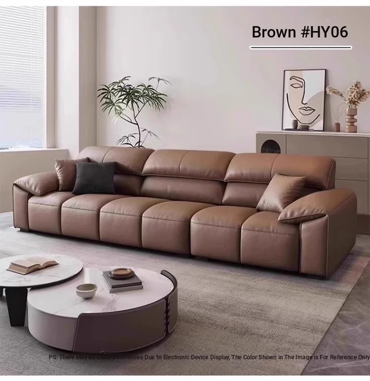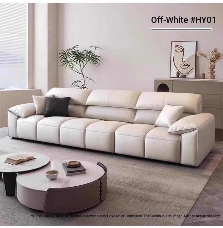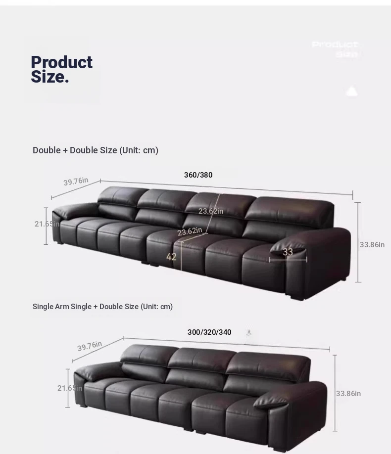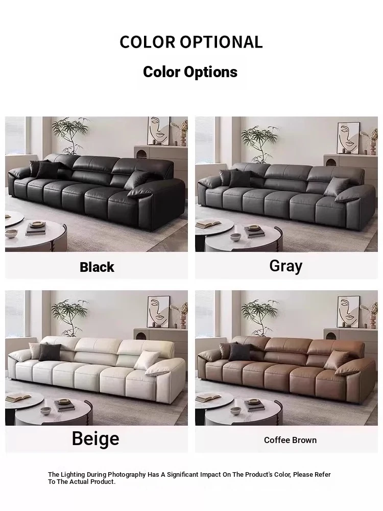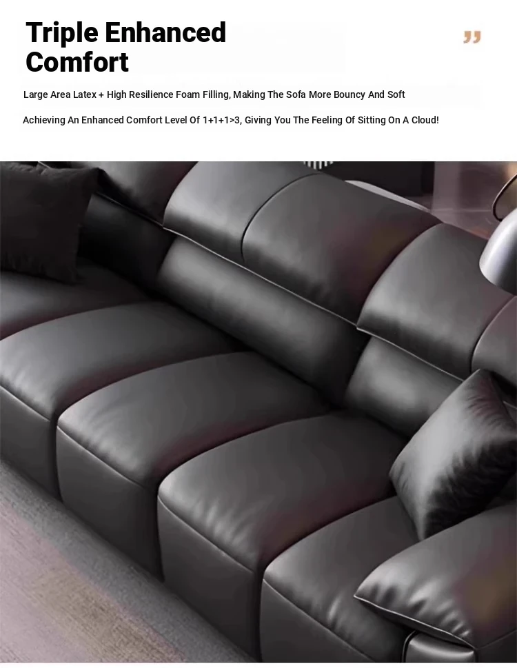 Italian Minimalist Luxury Genuine Leather Sofa Set with Elephant Ear Design - Stylish and Comfortable Large Black Cowhide Sofa Combination for Modern Living Spaces