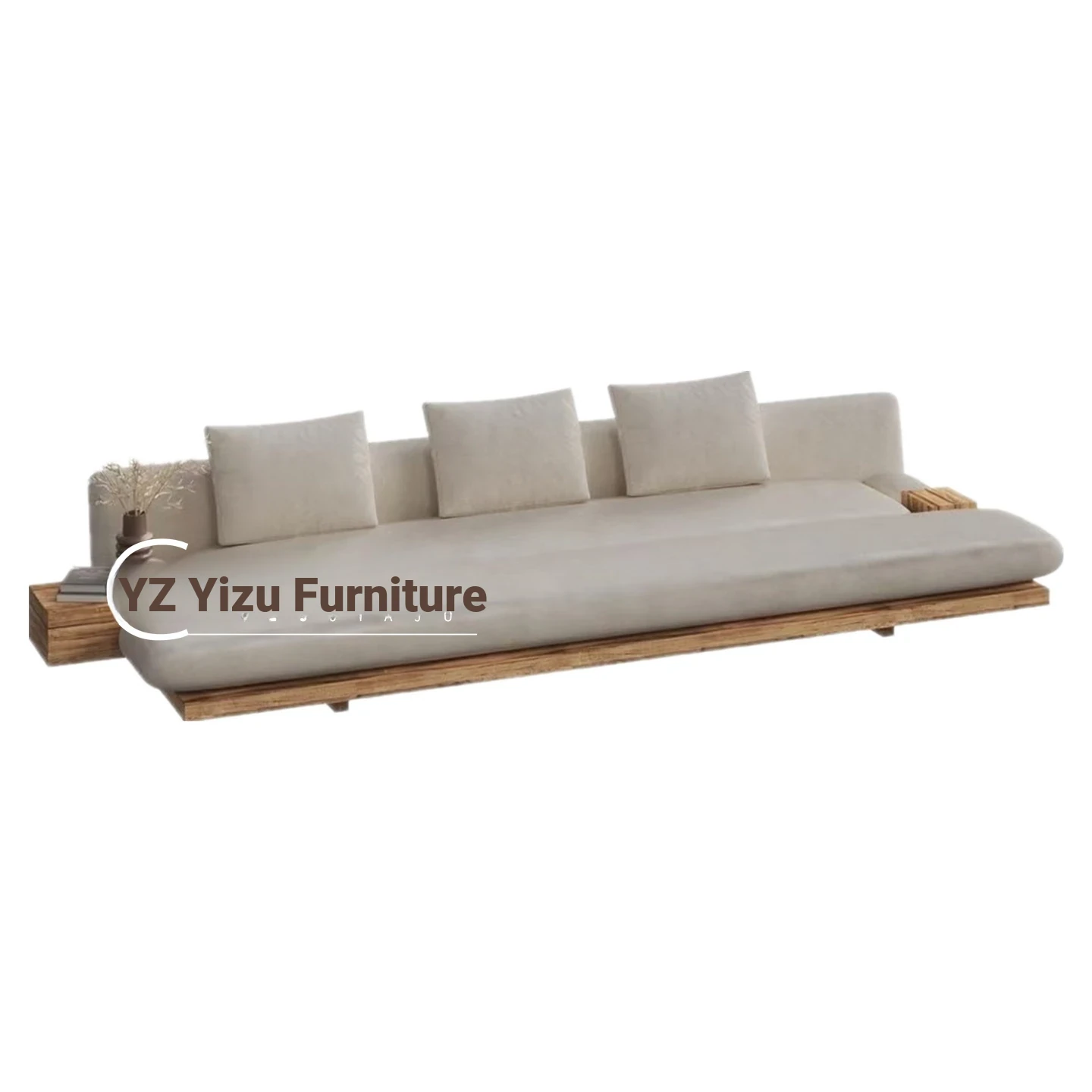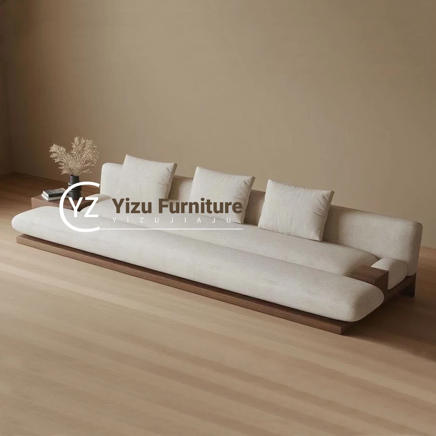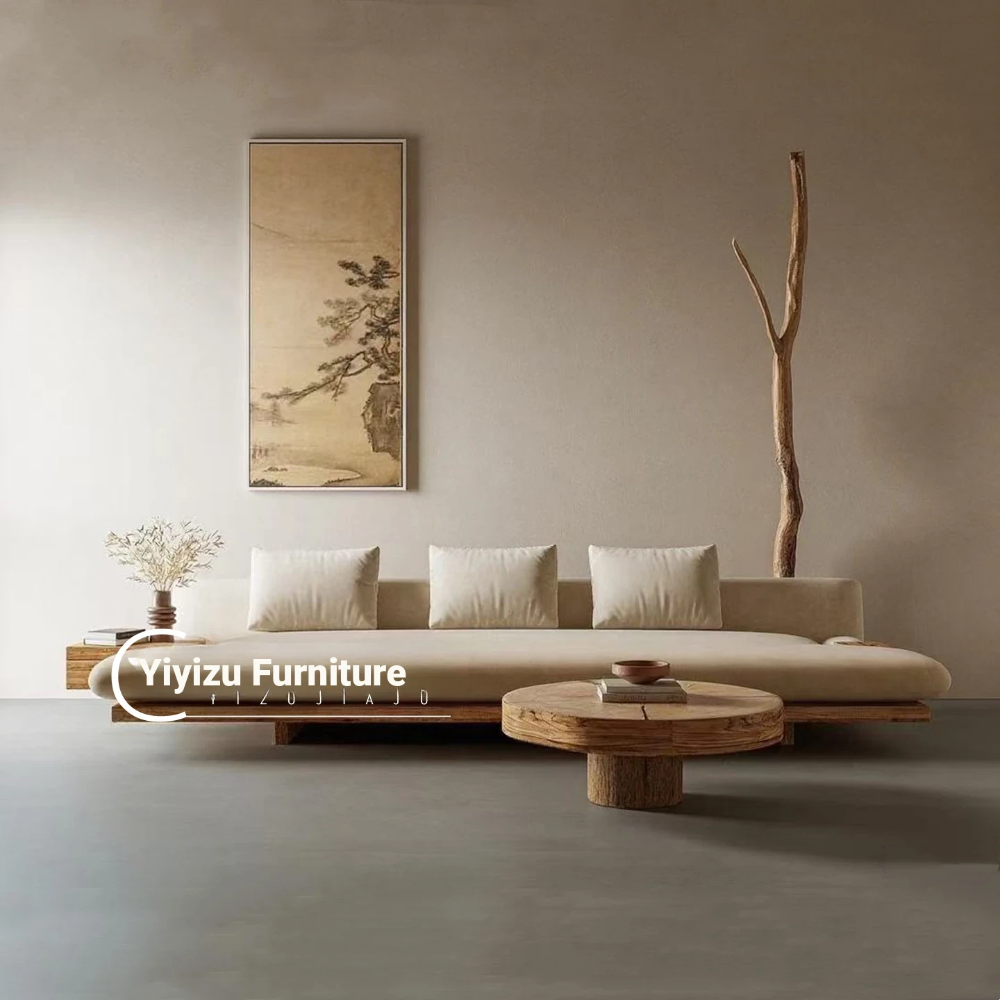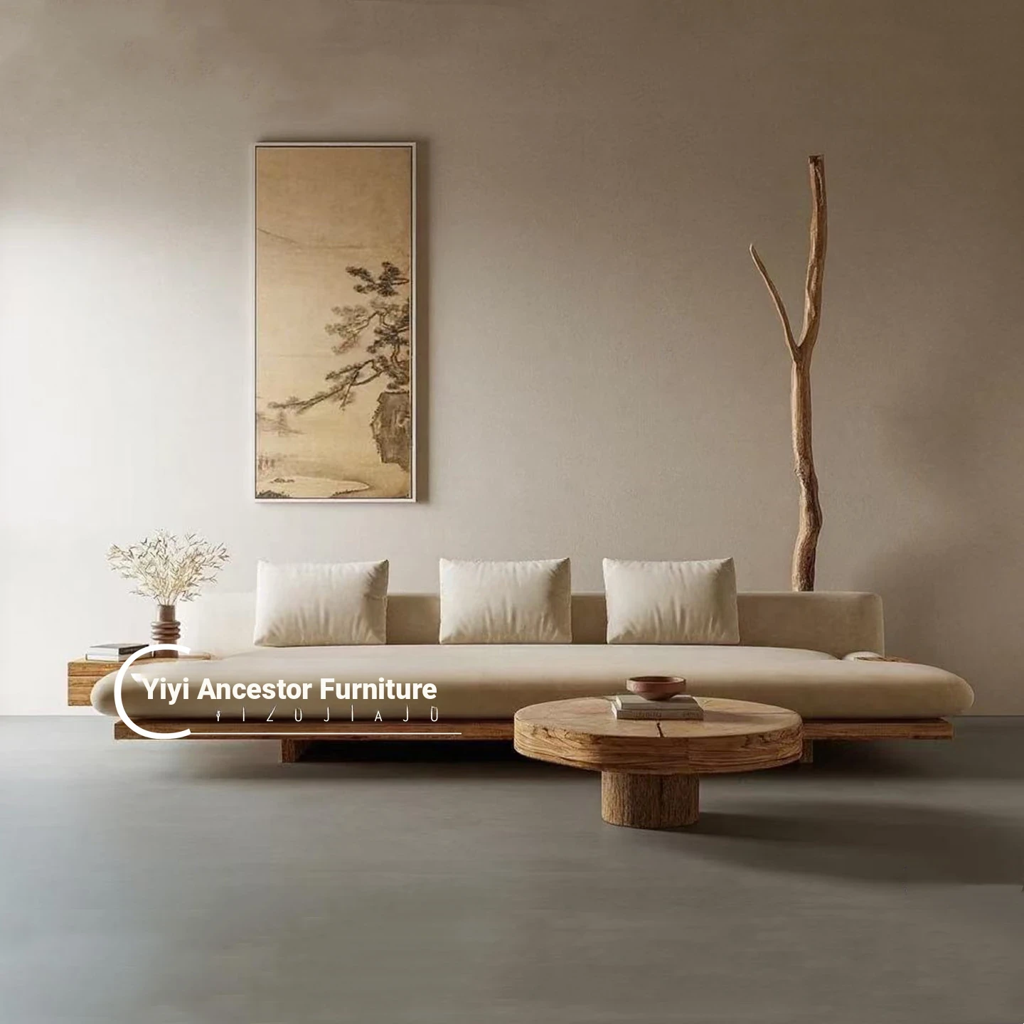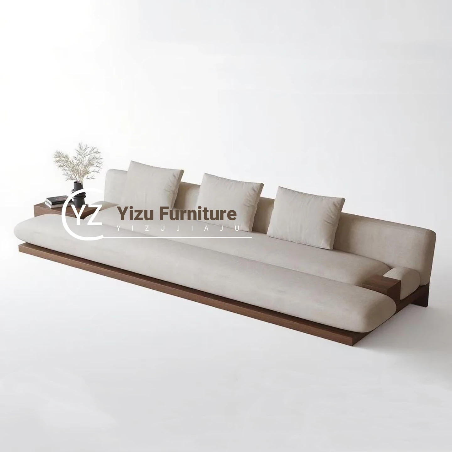 Japanese-Style Wooden Fabric Sofa - Designer Creative Tatami Sofa for Boutique Hotels and Guesthouses, Embracing Wabi-Sabi Aesthetics with Solid Wood Platform Design