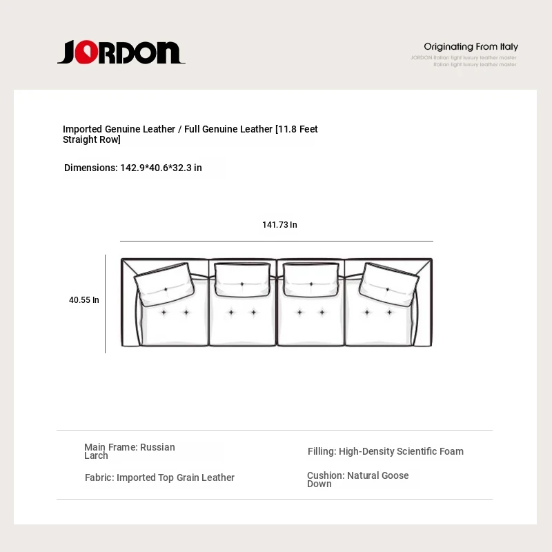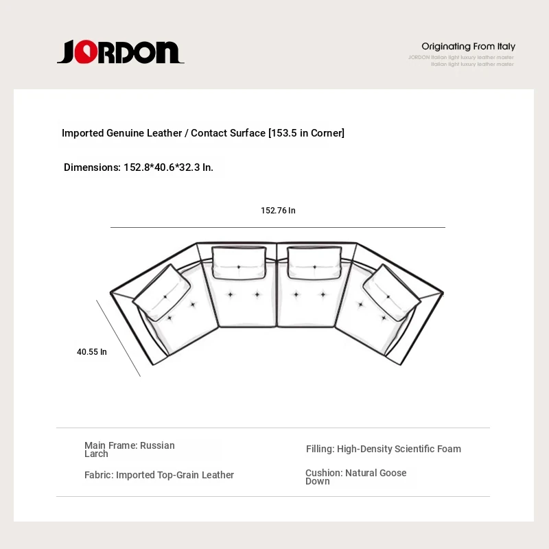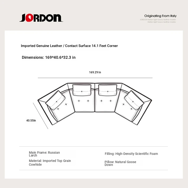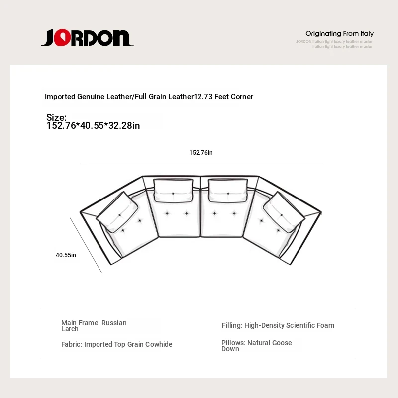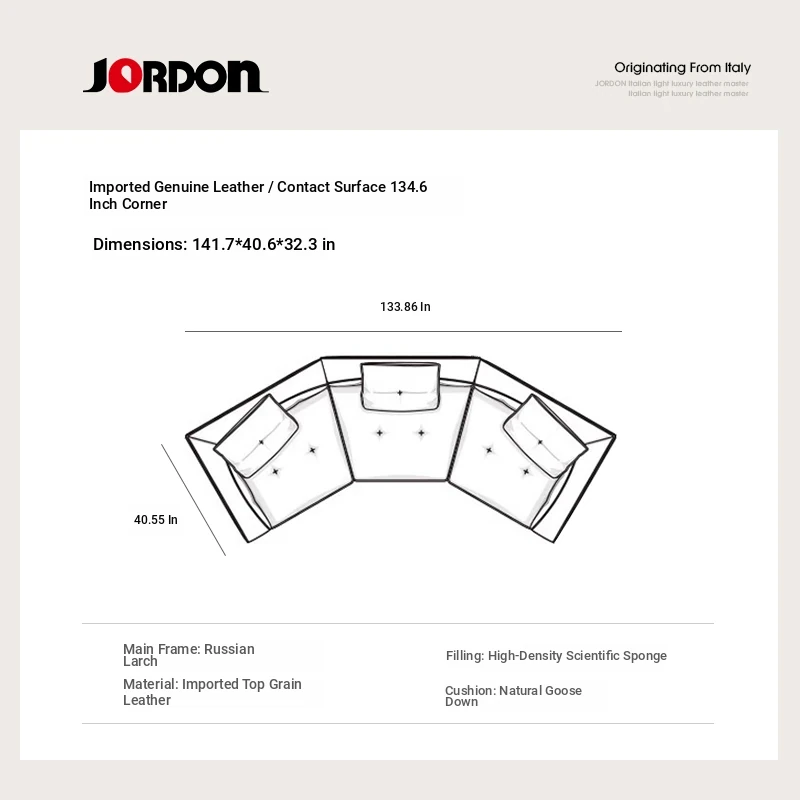 JORDON Italian Minimalist Dilan Sofa - Premium Genuine Leather Corner Sectional for Spacious Living Rooms, Stylish and Sophisticated Design