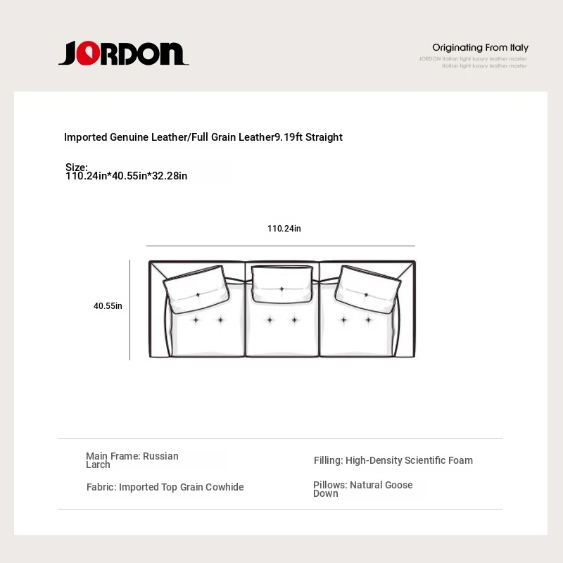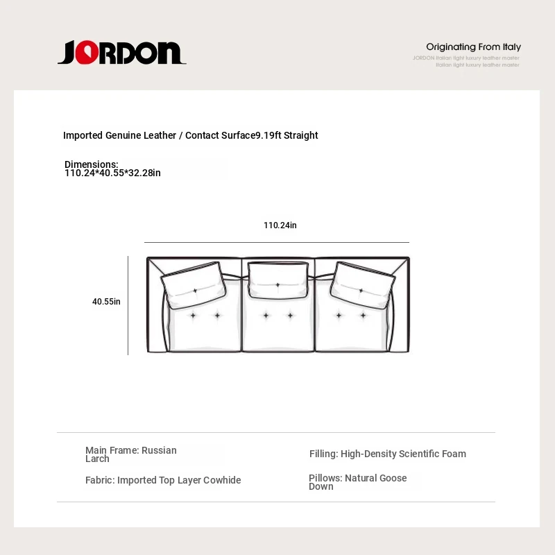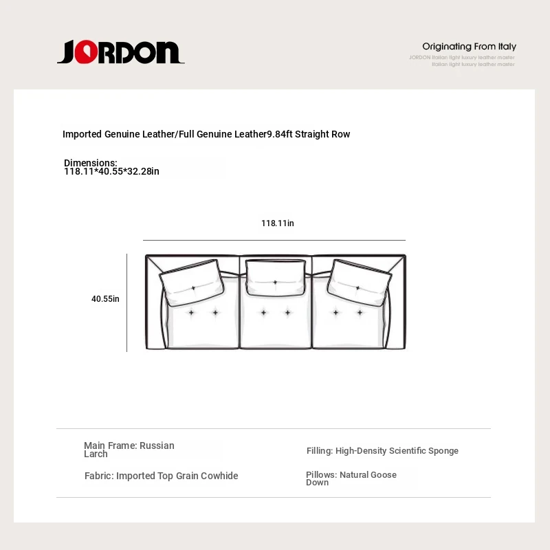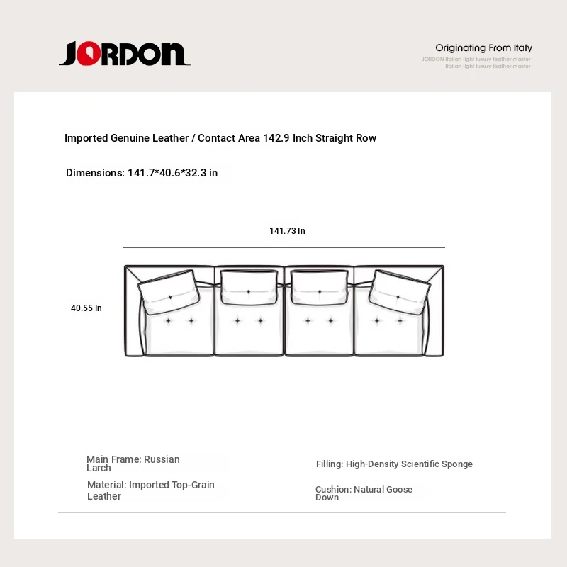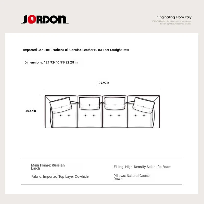 JORDON Italian Minimalist Dilan Sofa - Premium Genuine Leather Corner Sectional for Spacious Living Rooms, Stylish and Sophisticated Design