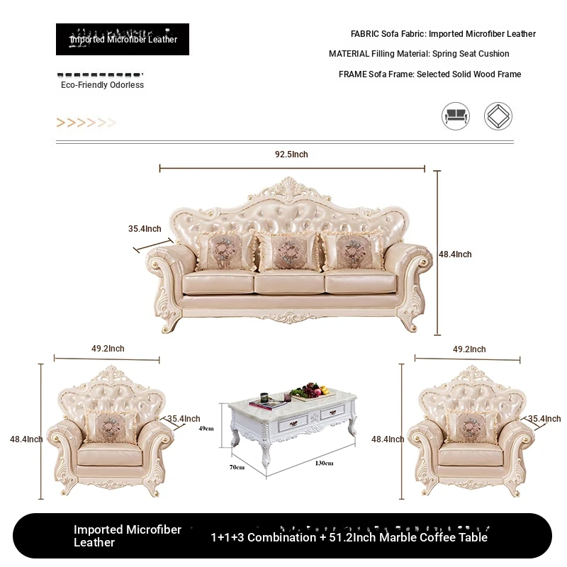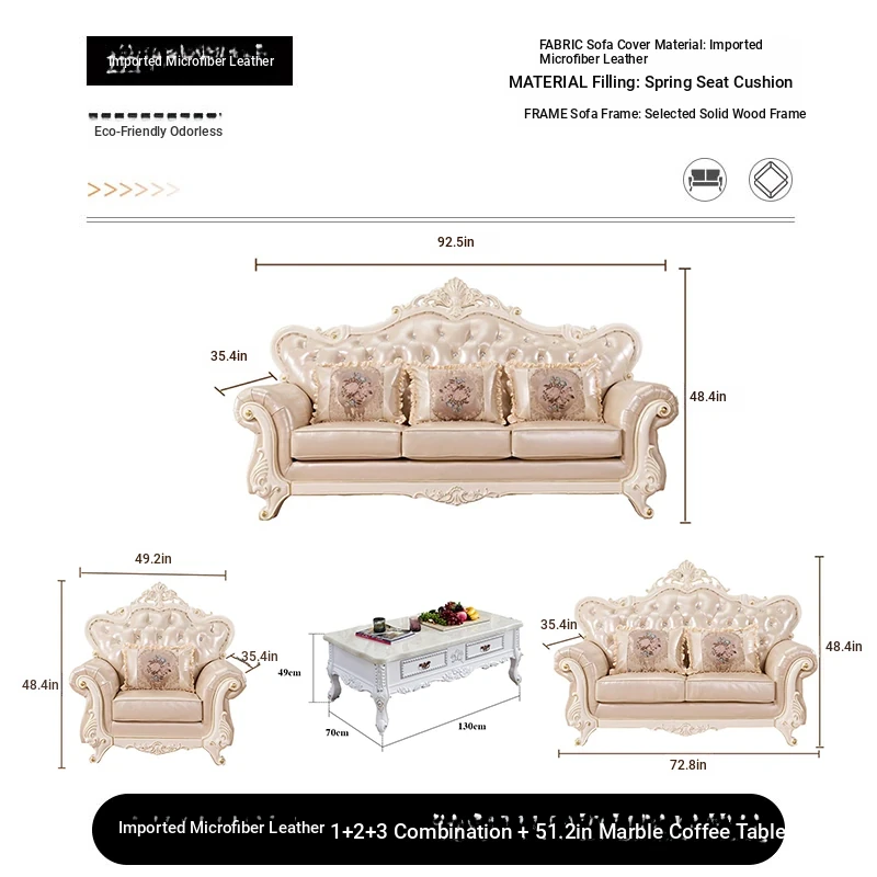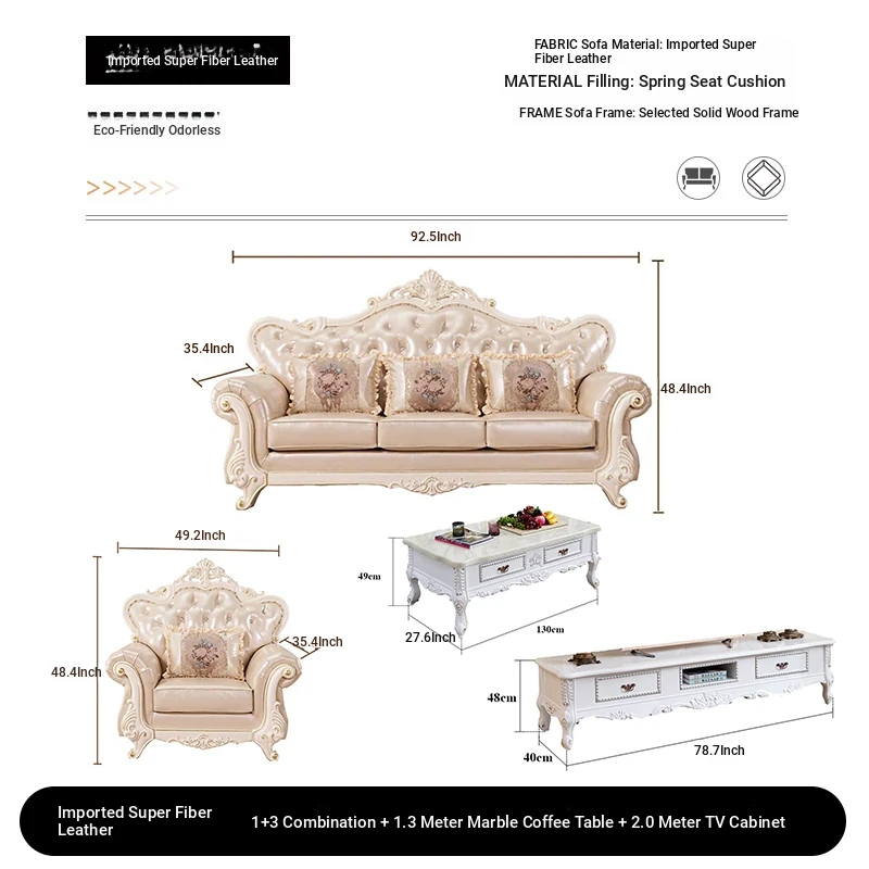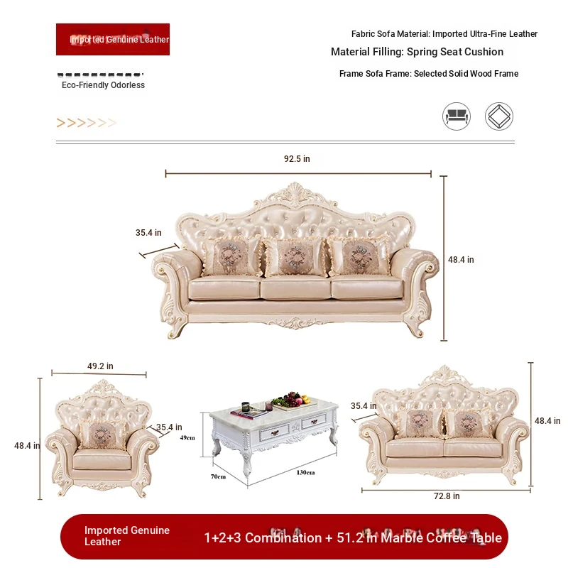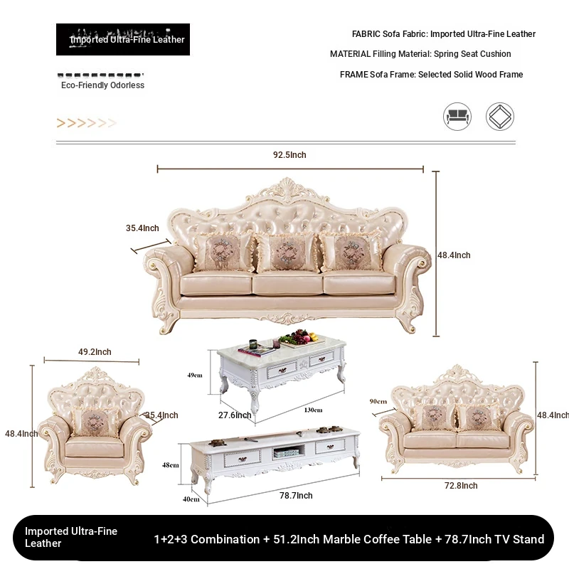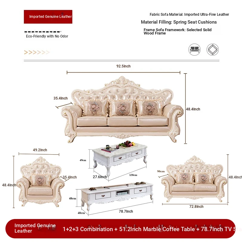 Import leather 1+2+3 combination +51.18 ins marble coffee table +78.74 ins TV cabinet