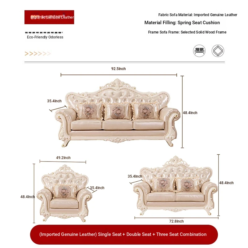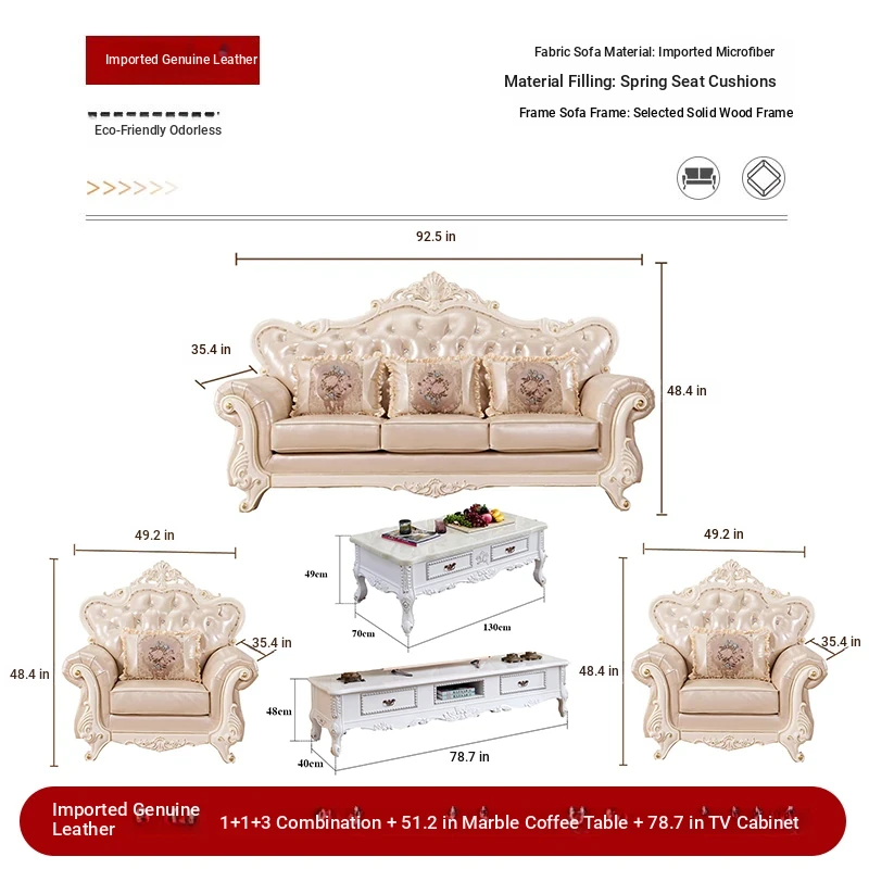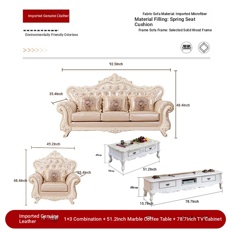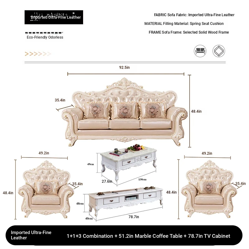 Import leather 1+1+3 combination +51.18 ins marble coffee table +78.74 ins TV cabinet