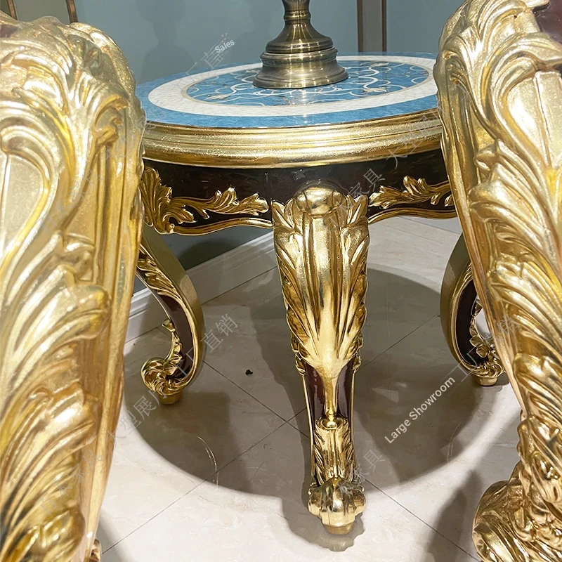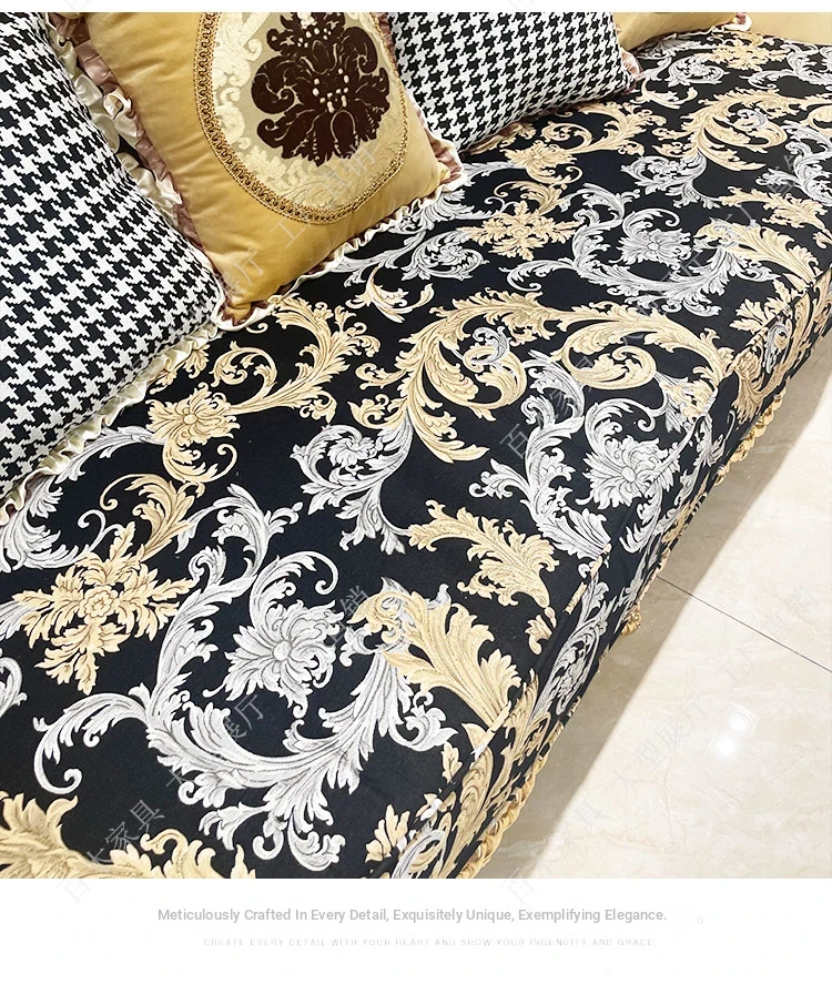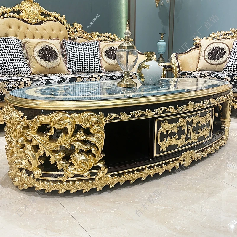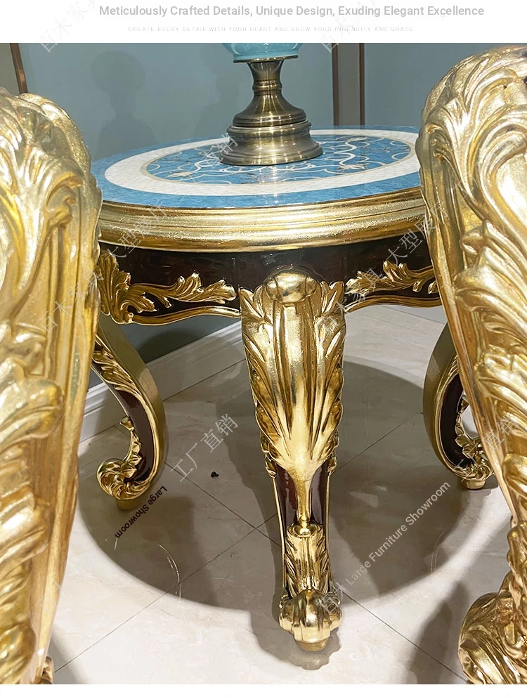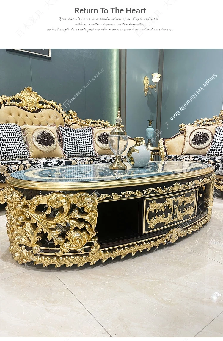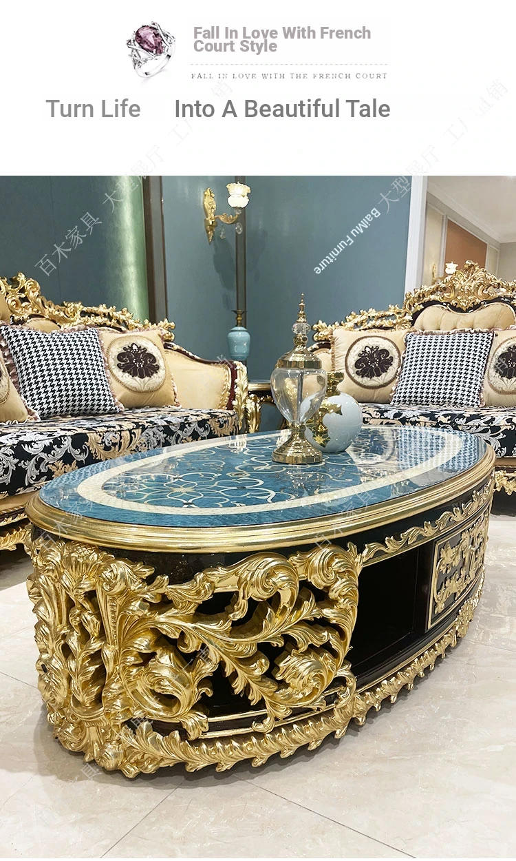 Luxurious French Court-Inspired Sofa with Handcrafted Wooden Carvings and Gold Leaf Accents - Elegant Fabric Sofa for Villas and Spacious Living Rooms, Hand-Painted Furniture for a Regal Touch.
