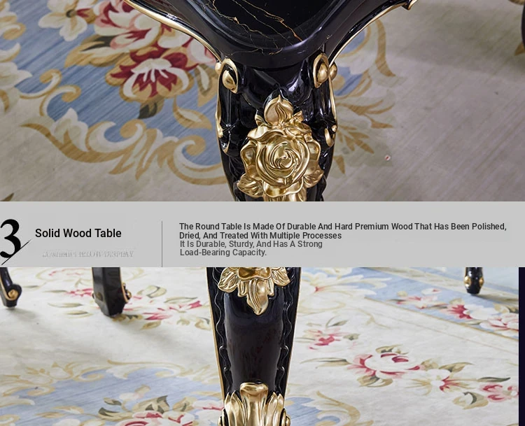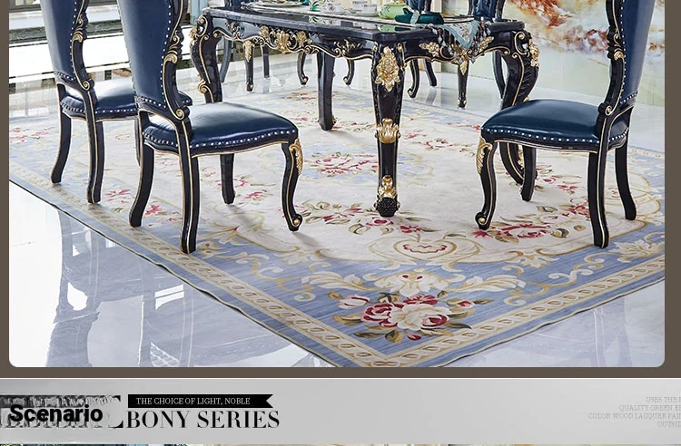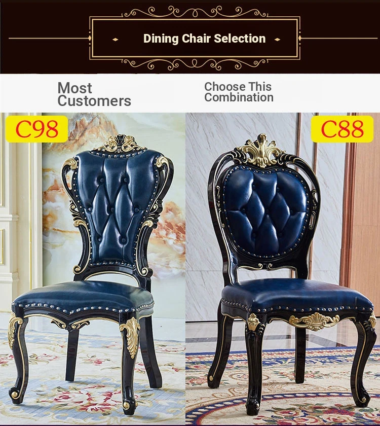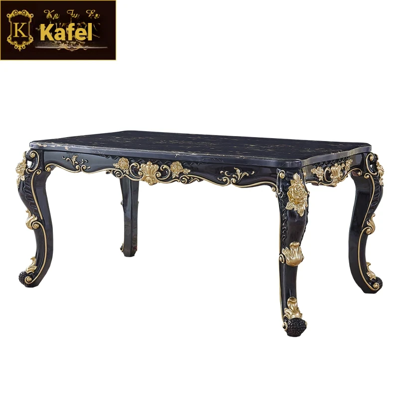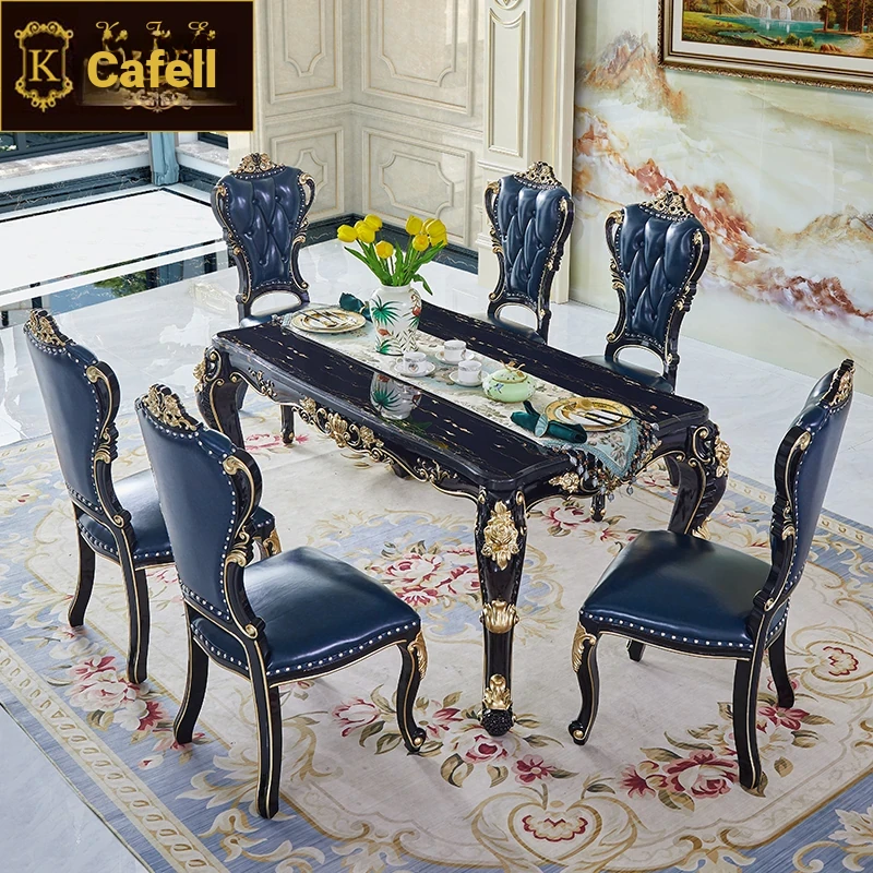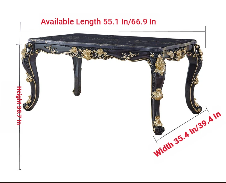 Luxury European-Style Black Walnut Marble Square Dining Table Set with Crown Carvings - Complete Solid Wood Dining Room Furniture for Elegant Living Spaces