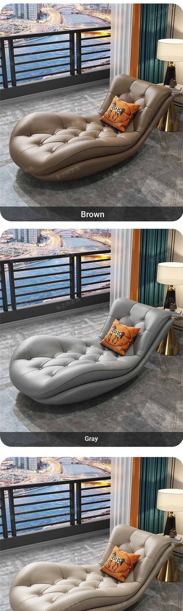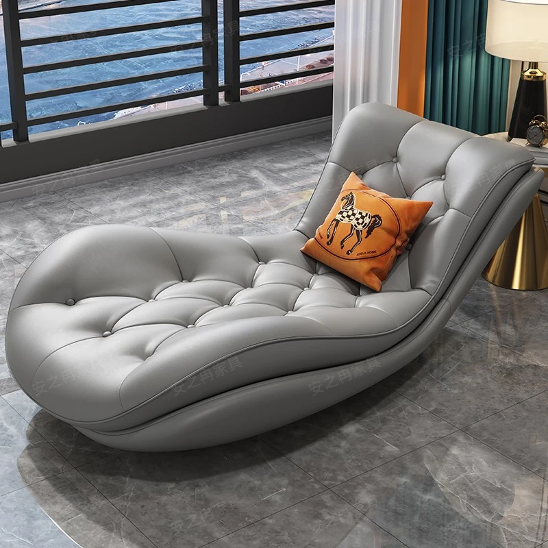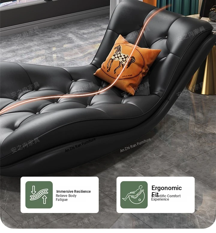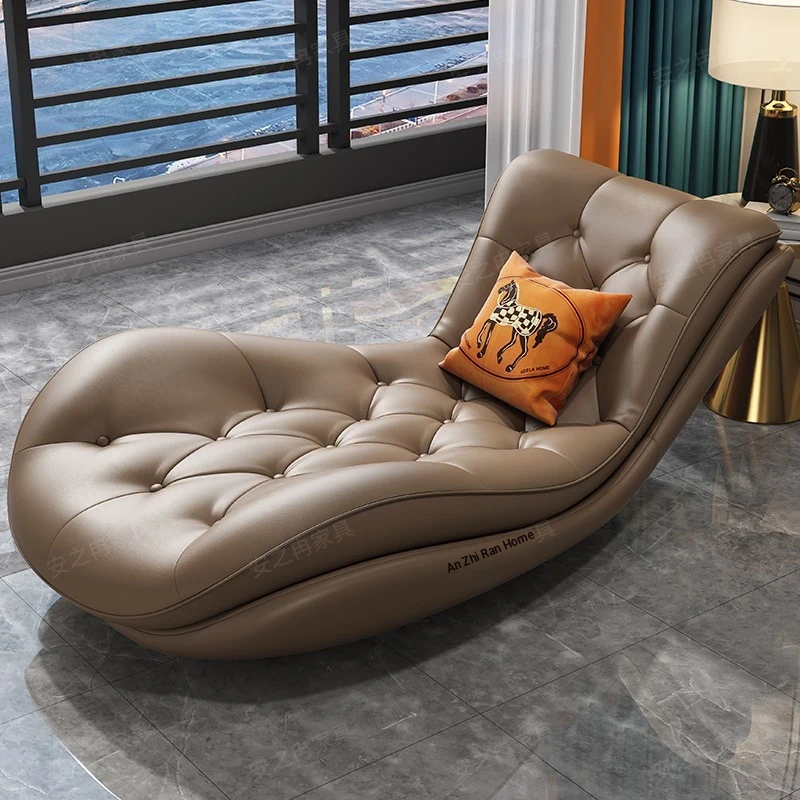 Luxury Genuine Leather Chaise Lounge - Modern Minimalist High-End Sofa for Small Apartments, Perfect for Living Room and Bedroom Relaxation.