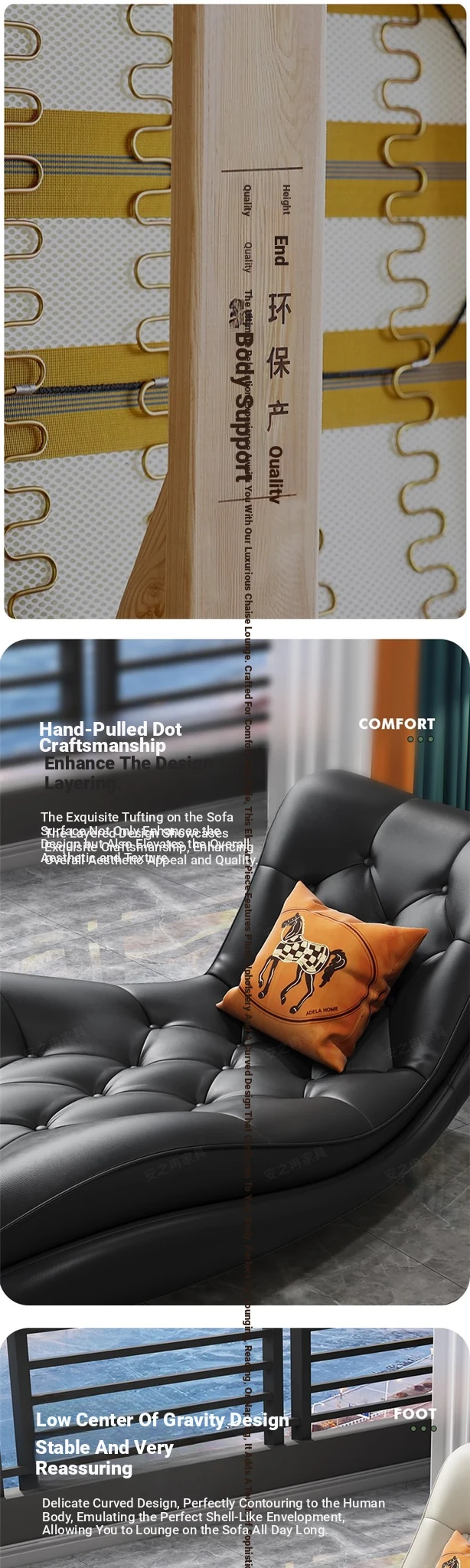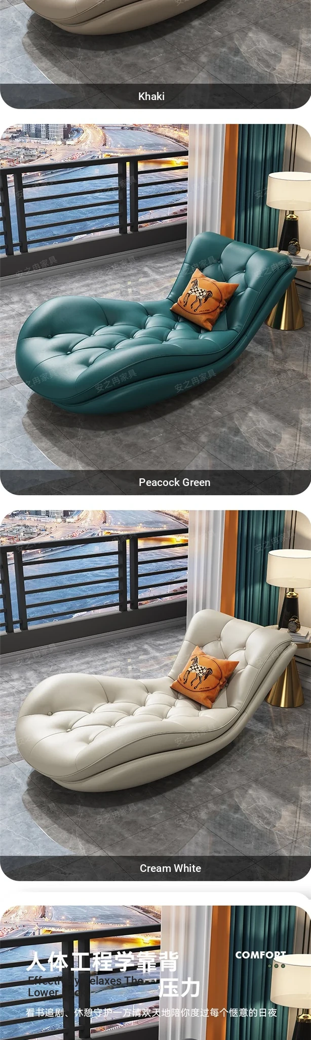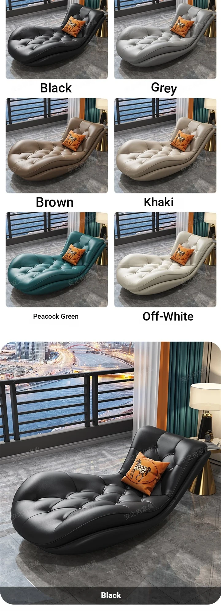 Luxury Genuine Leather Chaise Lounge - Modern Minimalist High-End Sofa for Small Apartments, Perfect for Living Room and Bedroom Relaxation.