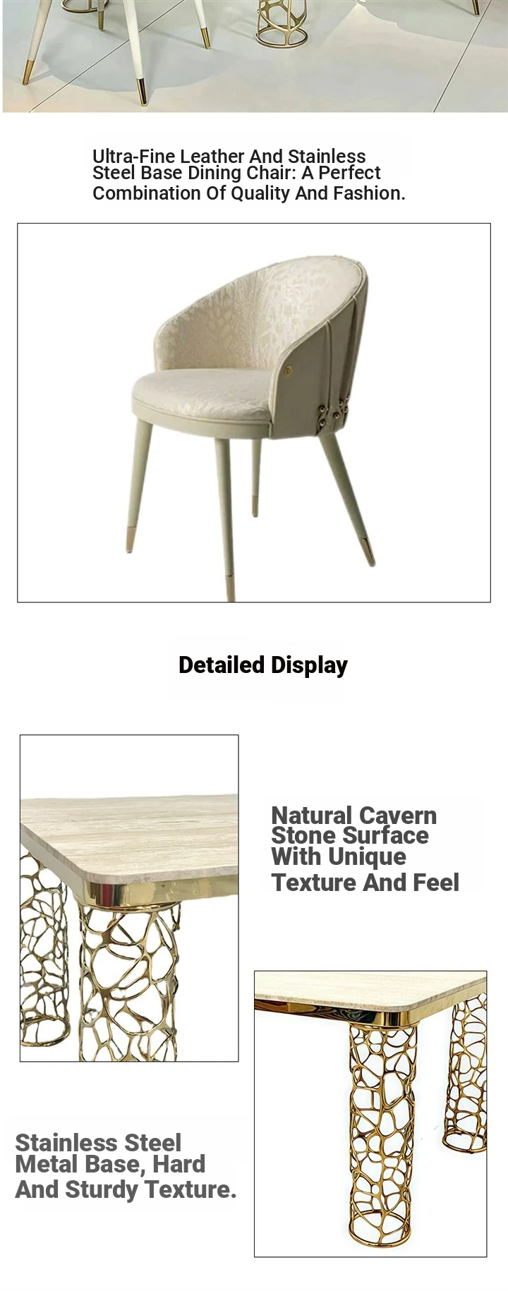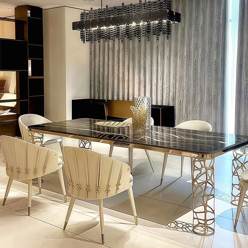 Luxury Lightweight Hollow Stone Dining Table and Chair Set - Elegant Home Dining Experience with Creative Stainless Steel Square Table for Sophisticated Interiors.