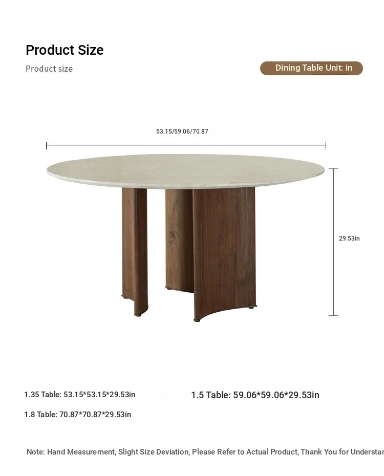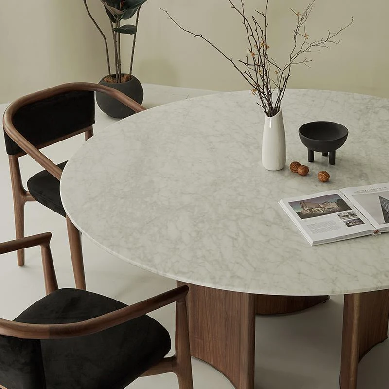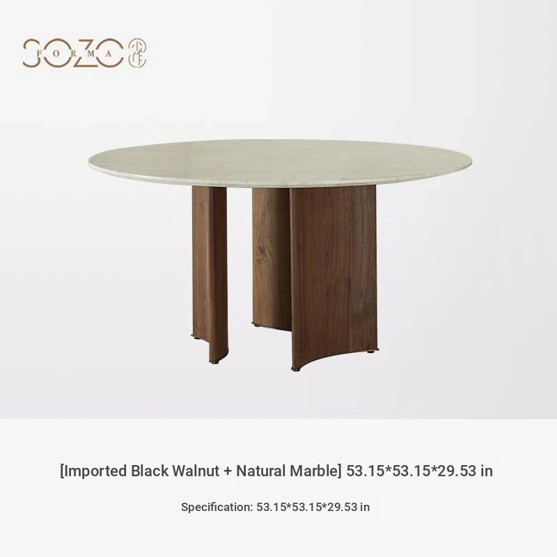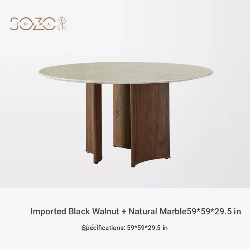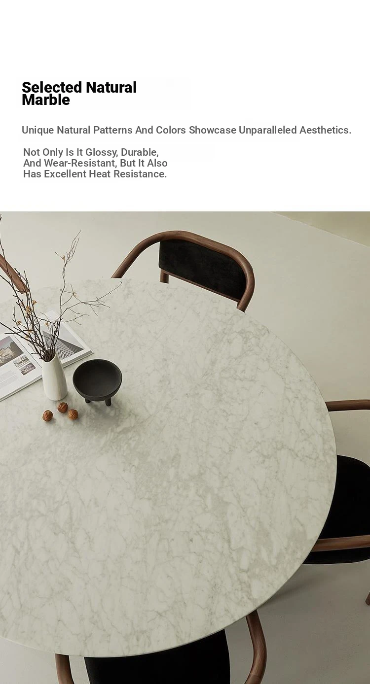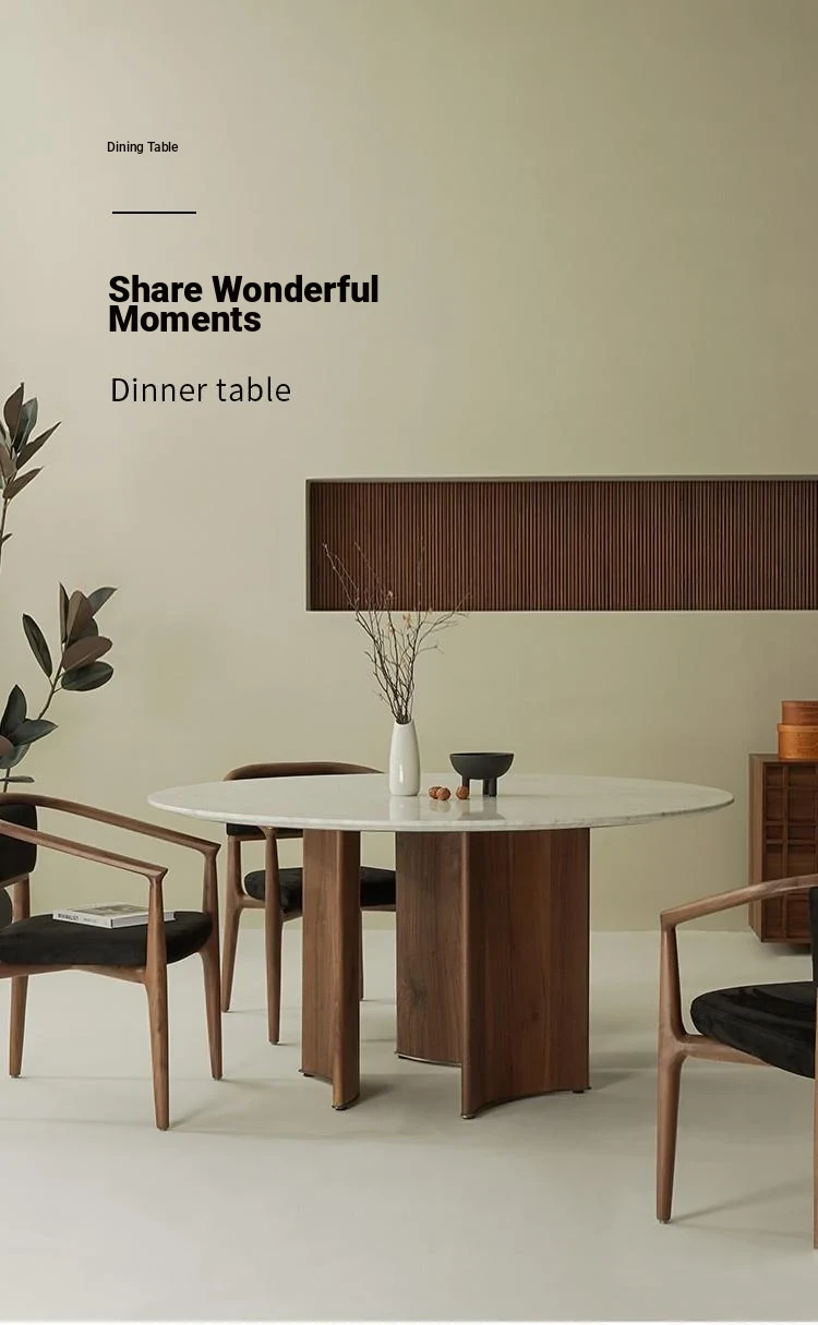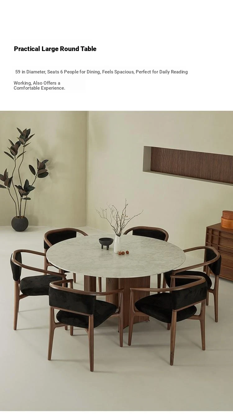 Luxury North American Black Walnut Marble Round Dining Table for Spacious Homes - Sizes: 1.35m, 1.5m, 1.8m - Perfect for Elegant Dining Experiences!