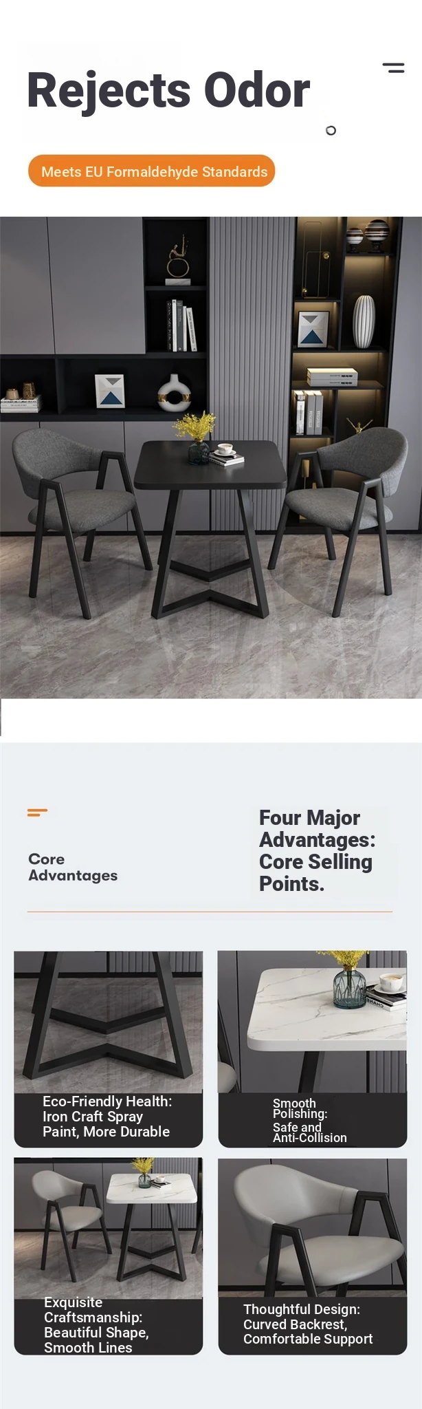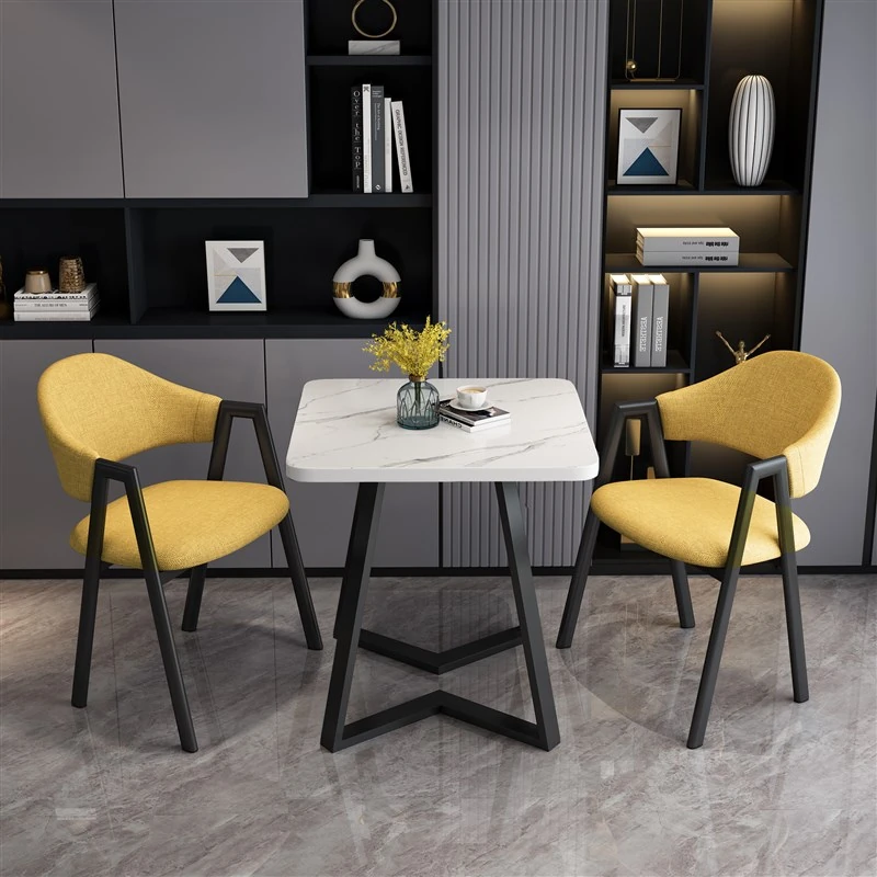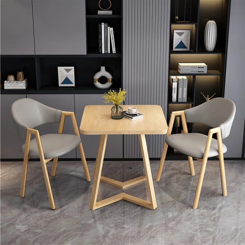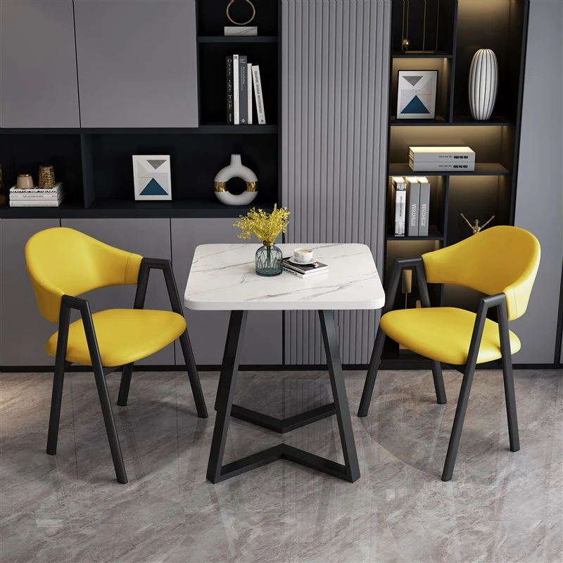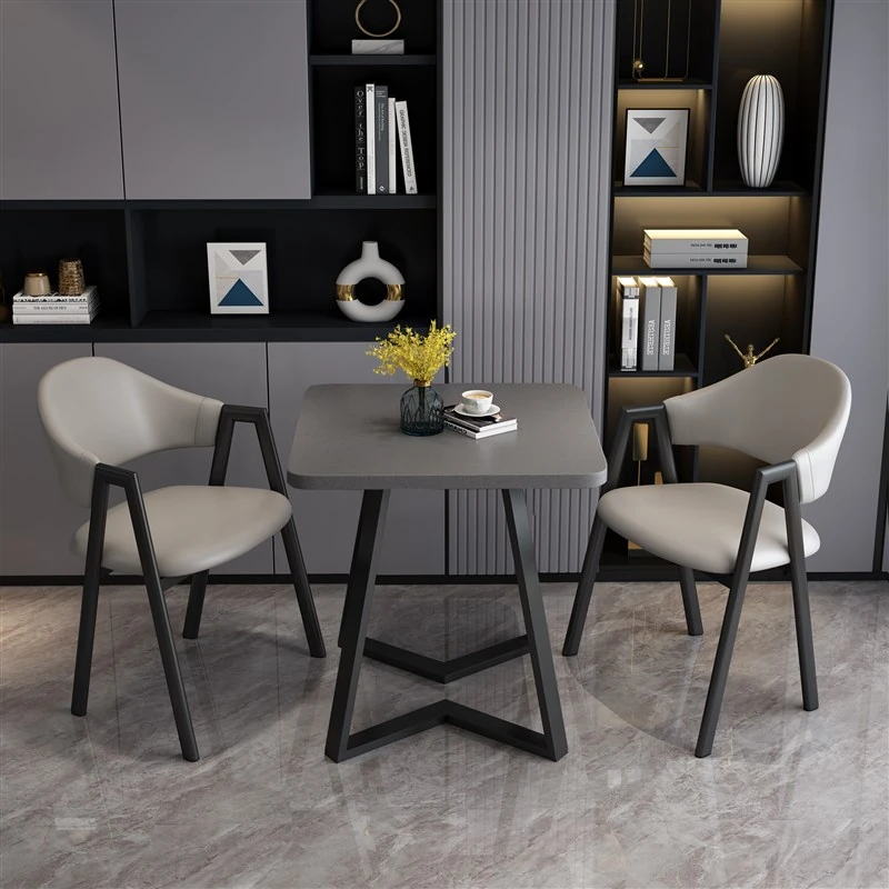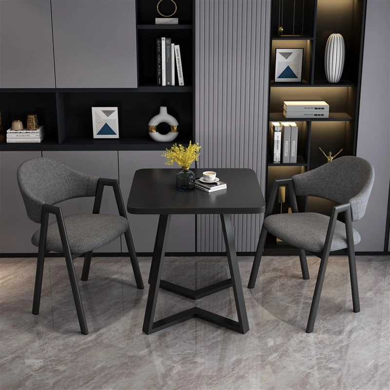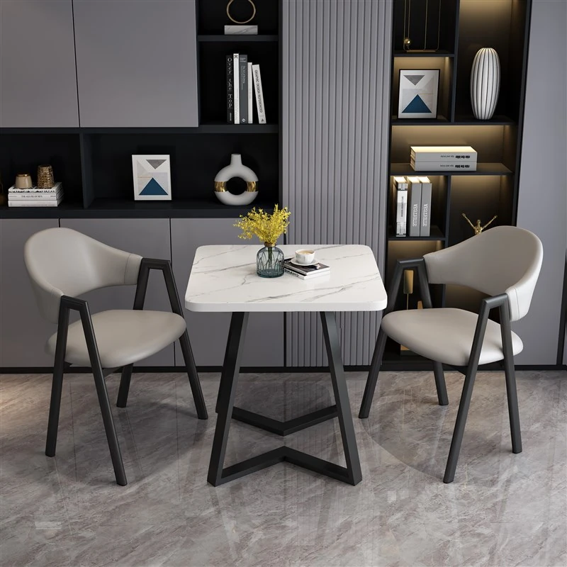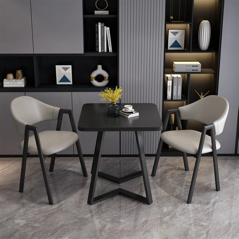 Minimalist Small Square Table and Two Chairs Set for Balcony – Stylish Reception and Meeting Furniture for Trendy Cafés and Shops, Perfect for Tea Time Gatherings.