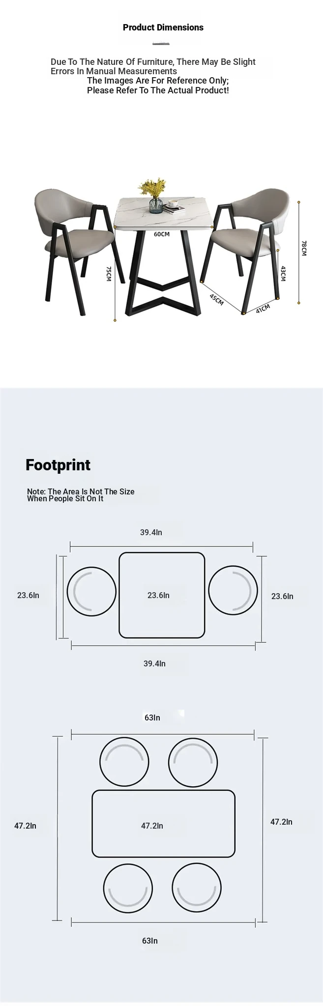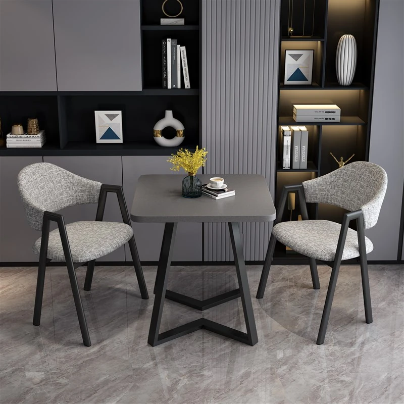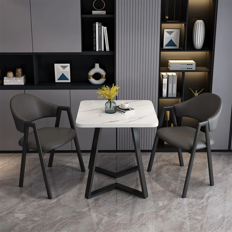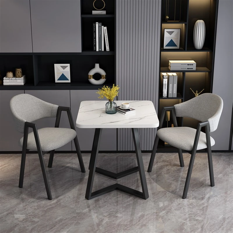 Imitation white stone pattern square table +2 dark gray cloth chair