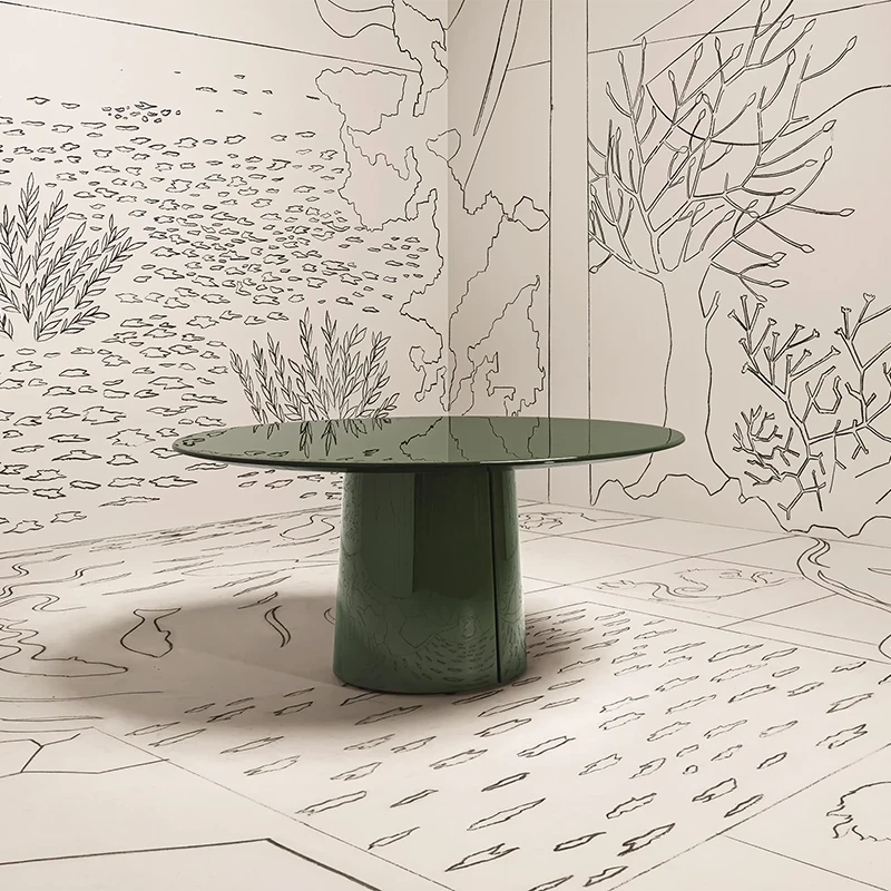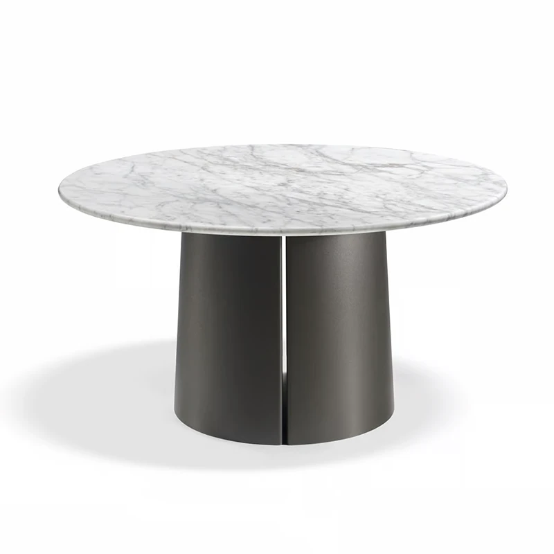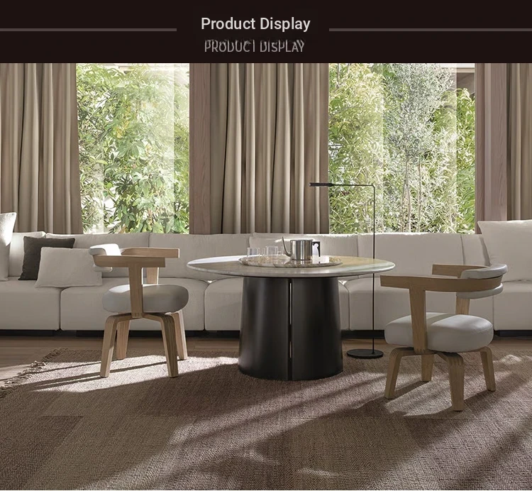Minimalist Solid Wood Painted Round Dining Table for Small Spaces - Ideal for 6 People, Perfect for Your Stylish Home! Marble Top Design for Elegance and Durability.