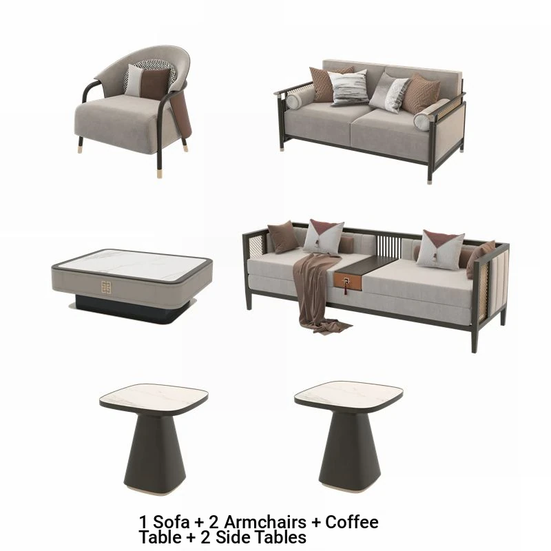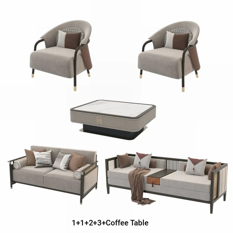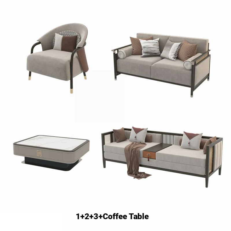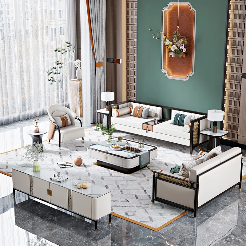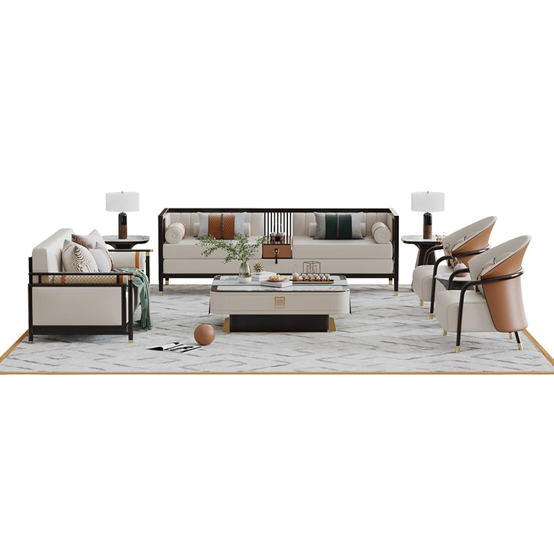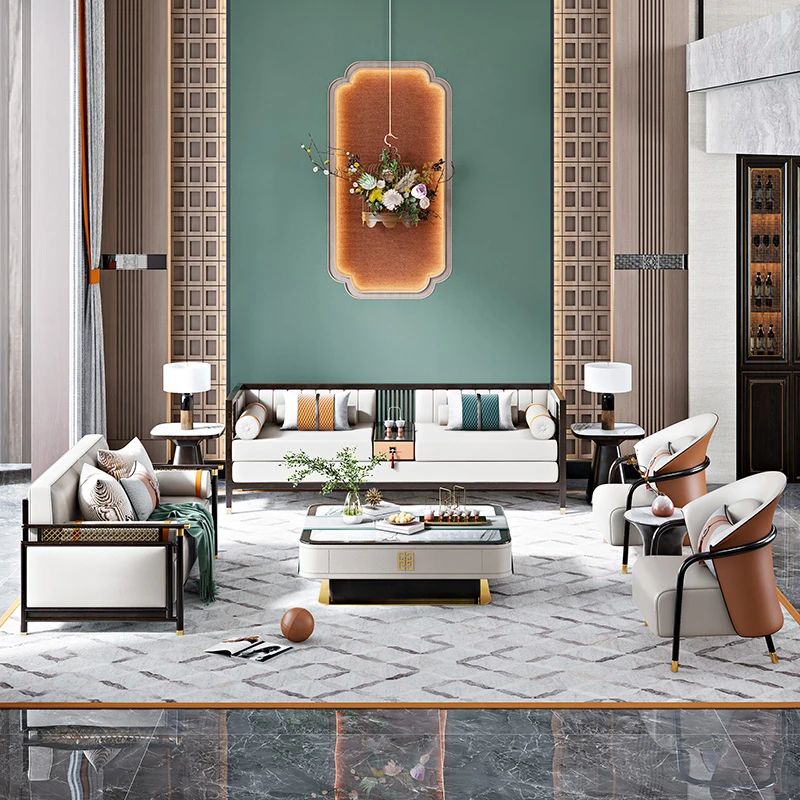 Modern Chinese-Style Sofa Set - Minimalist Design for Elegant Living Rooms, Villas, and Showrooms - Luxurious All-Solid Wood Furniture