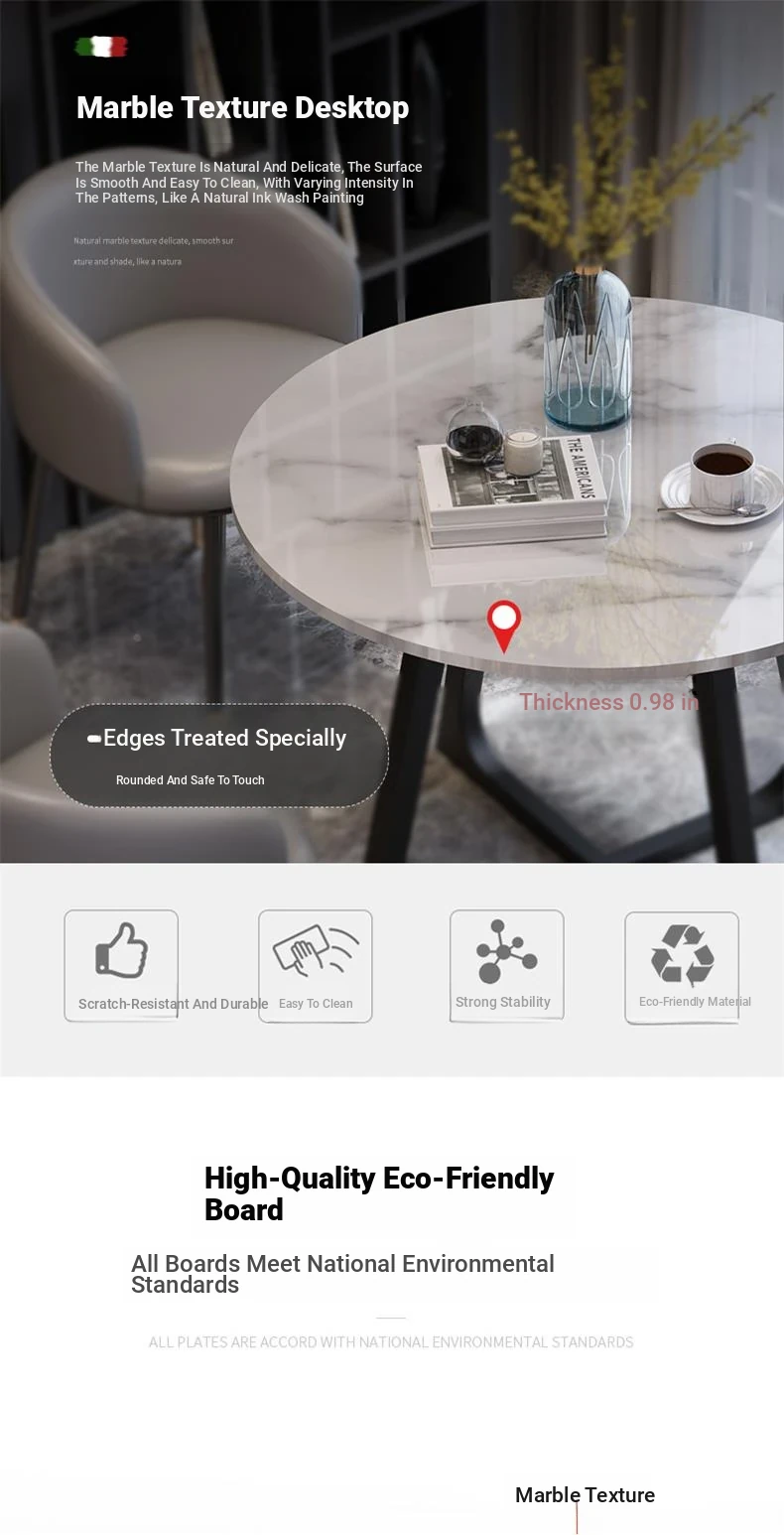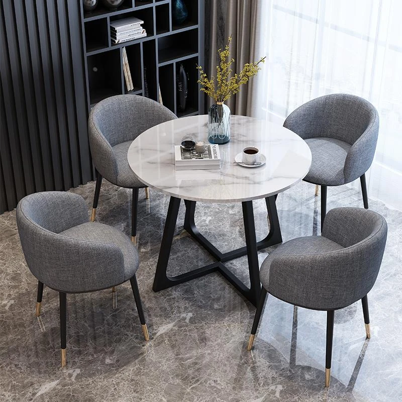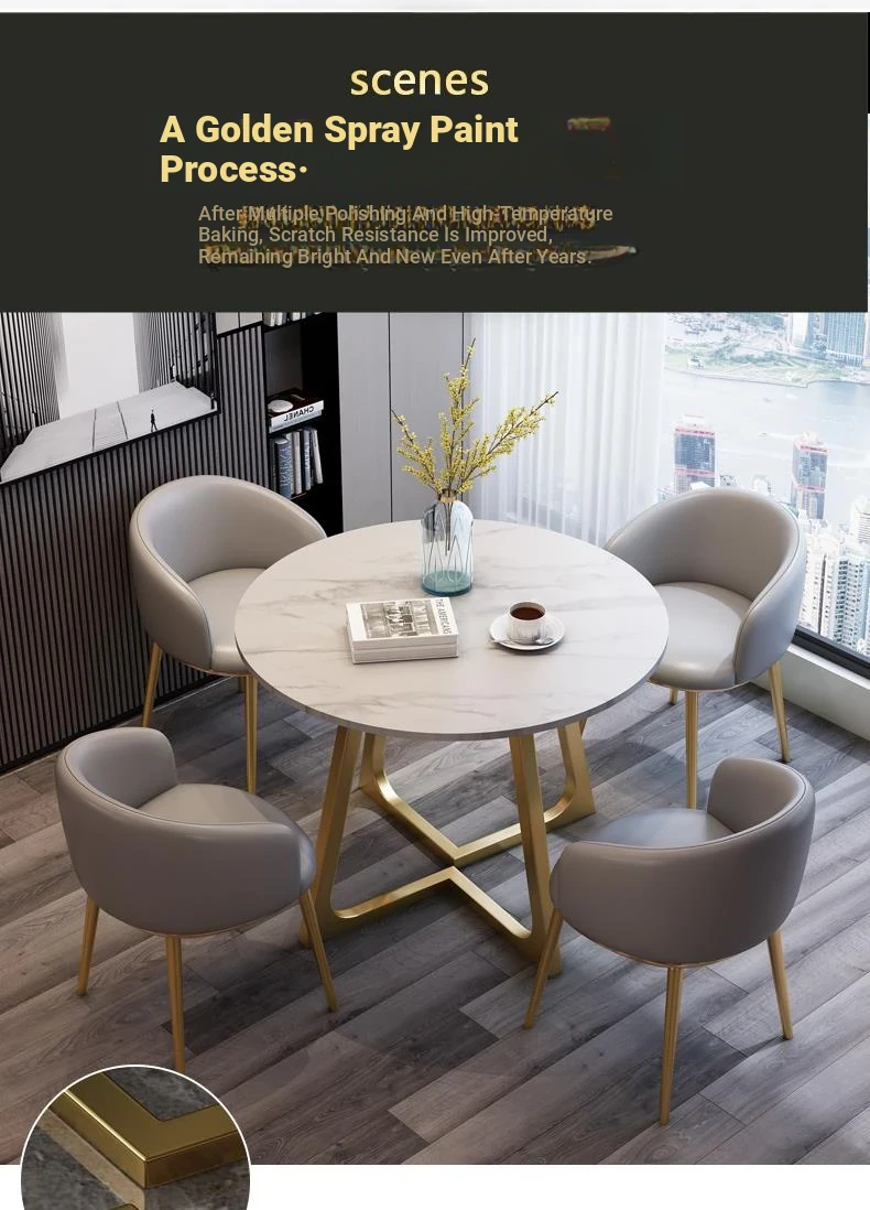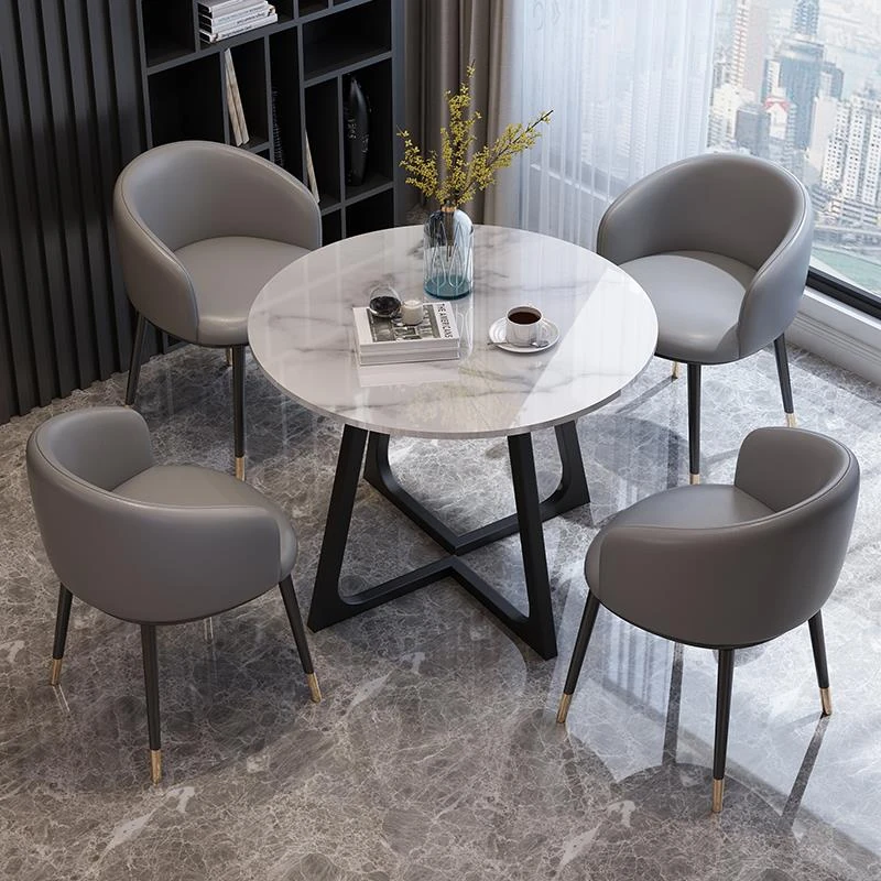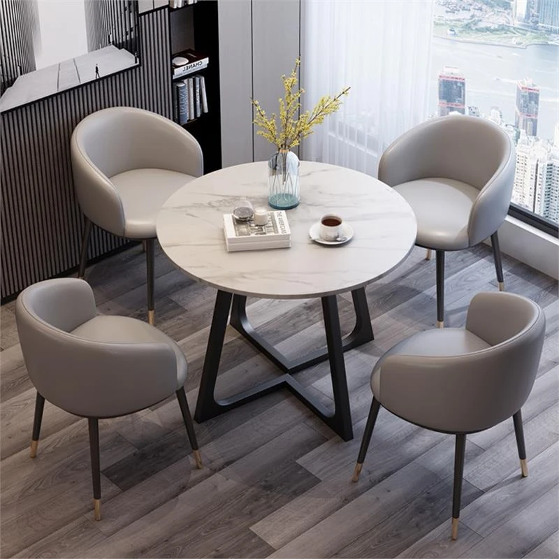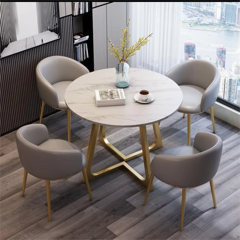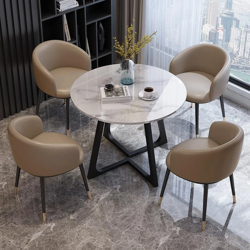 Modern Marble Luxury Round Table and Chair Set for Reception and Office - Perfect for Sales Centers and Commercial Use, Elevate Your Space with Stylish Dining and Meeting Solutions.