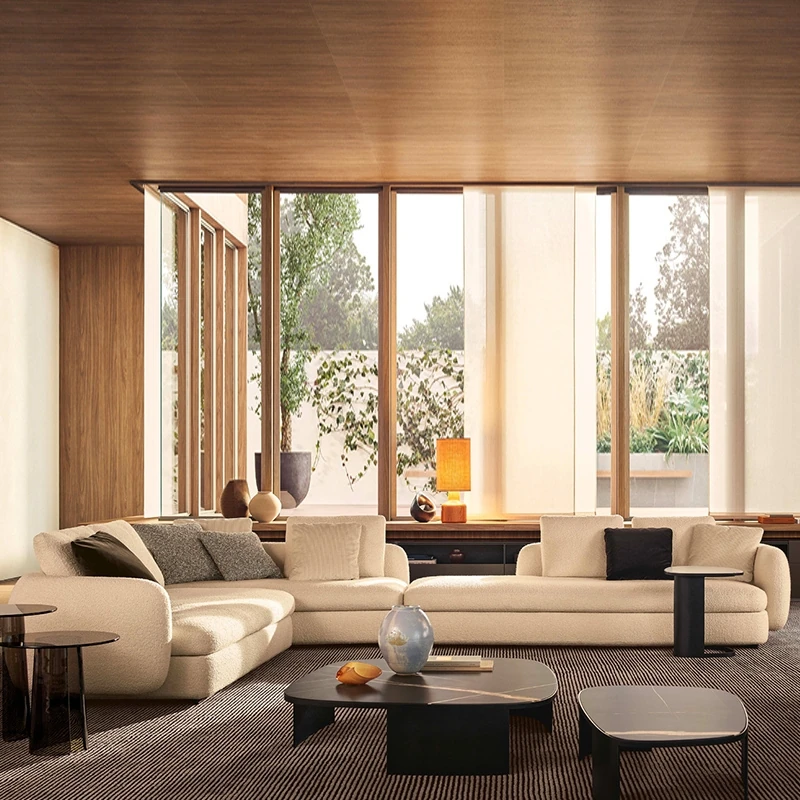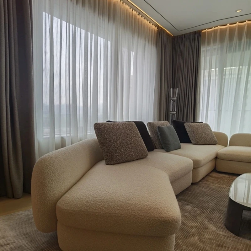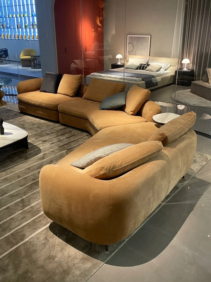 Modern Minimalist Curved High-End Fabric Sofa - American Light Luxury Creative Designer Couch for Spacious Living Rooms