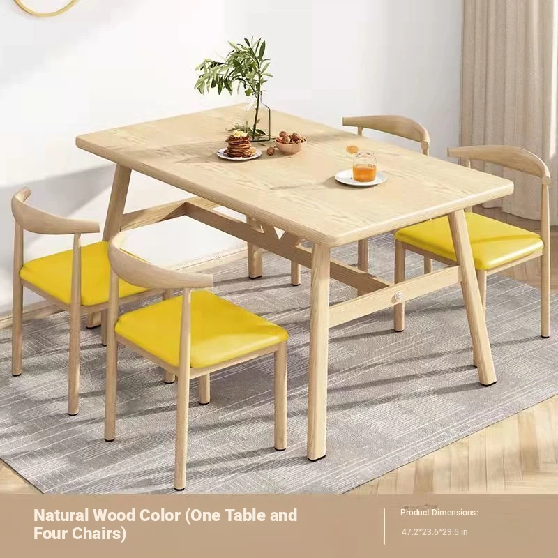 120*60/log color 1 table 4 chairs-yellow leather cushion