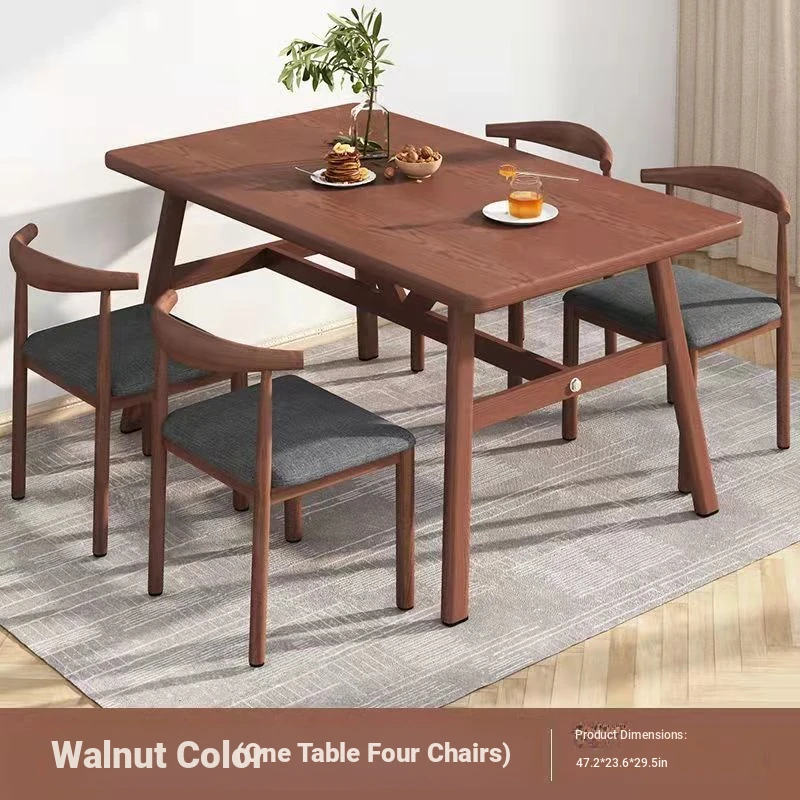 120*60/walnut color 1 table 4 chairs-brown linen cushion