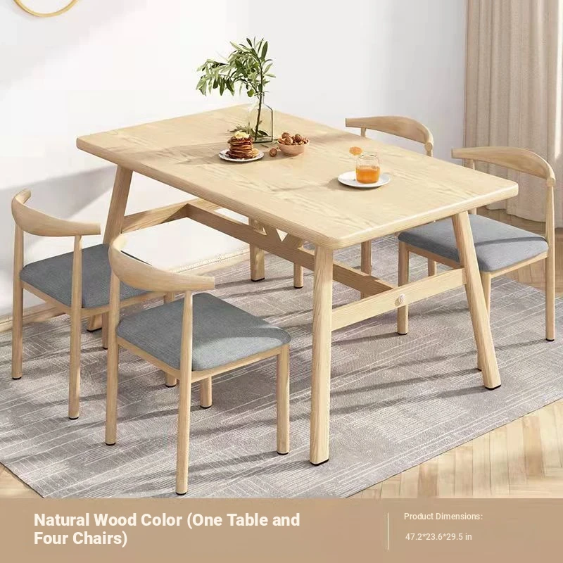 120*80/log color 1 table 4 chairs-gray linen cushion