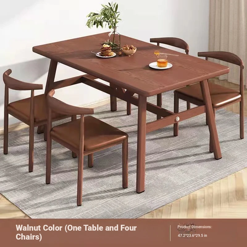 120*60/walnut color 1 table 4 chairs-brown leather cushion