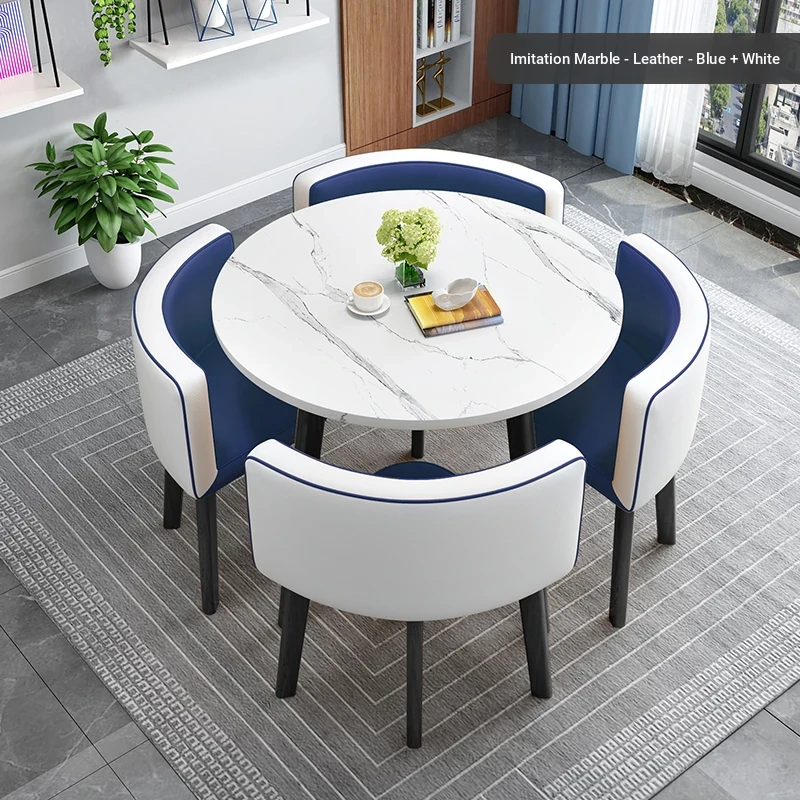 Royal Blue(Blue and white leather double spell 1 table 4 chairs)