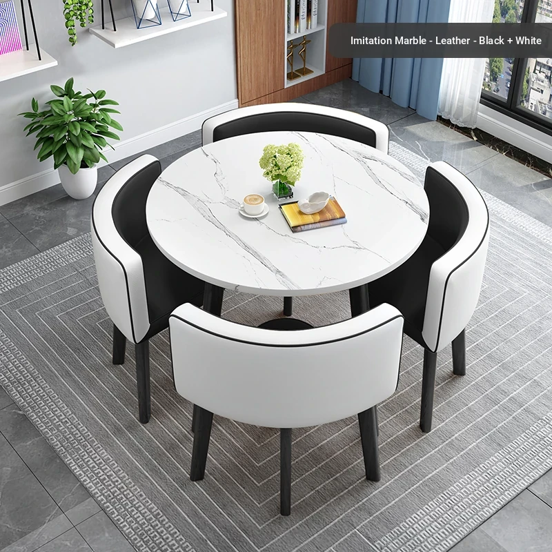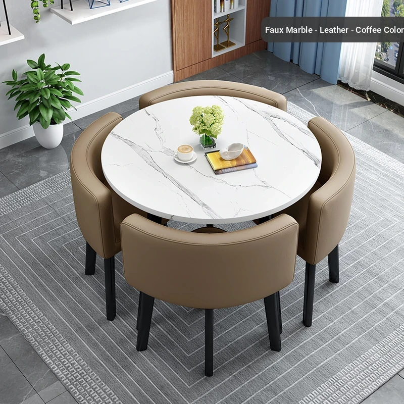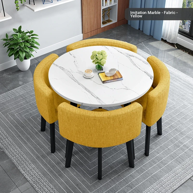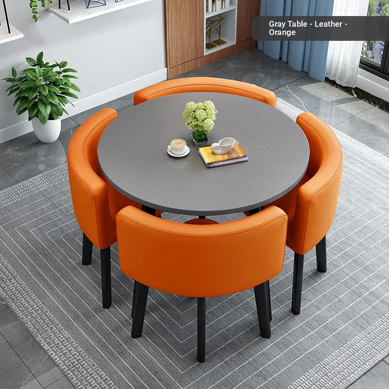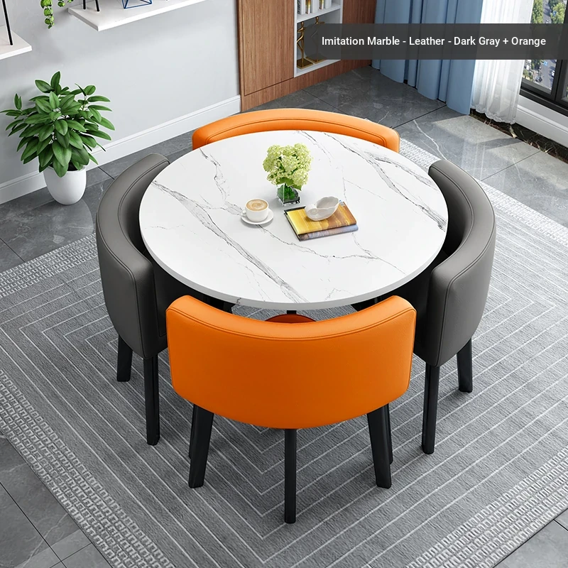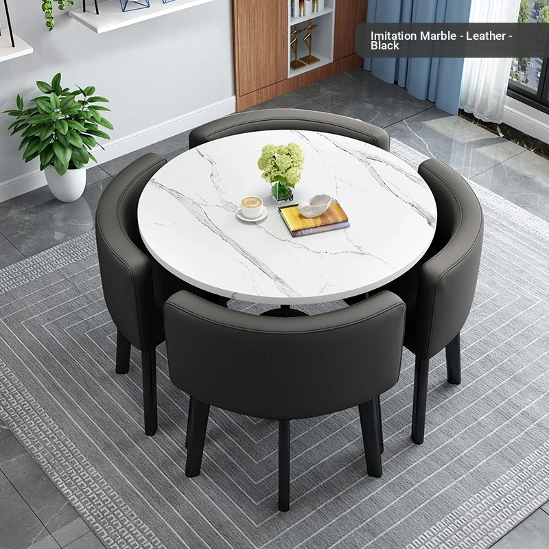 Modern Minimalist Foldable Round Dining Table for Small Spaces - Stylish and Functional Table and Chair Set for Dining, Leisure Meetings, and Reception