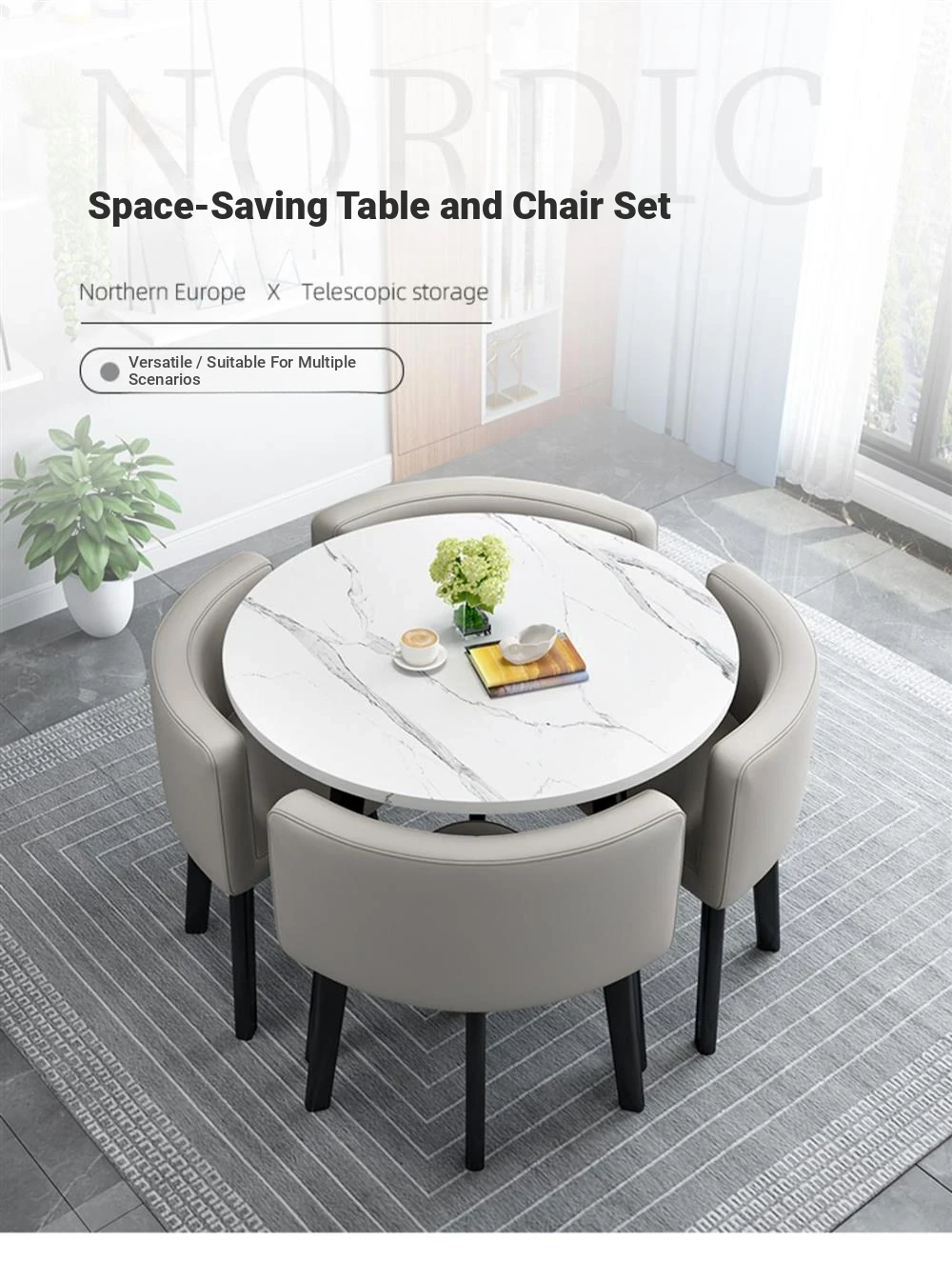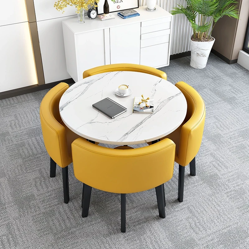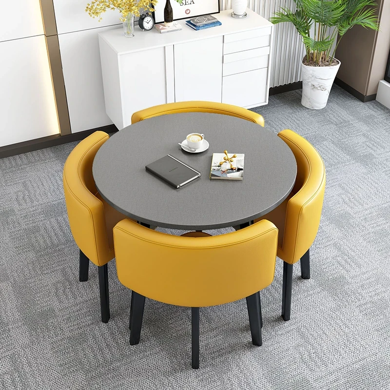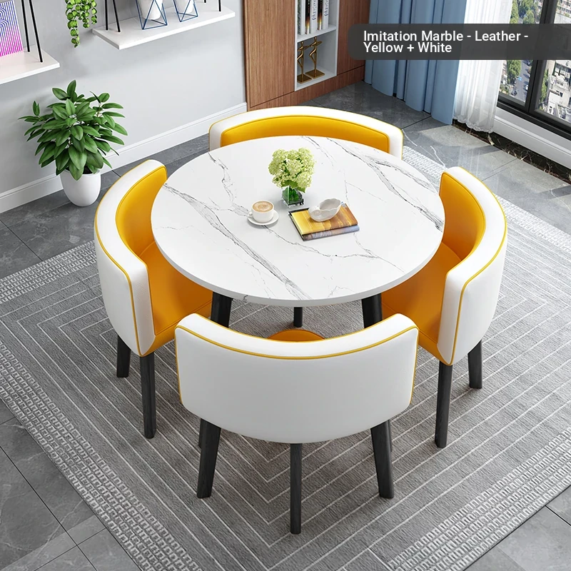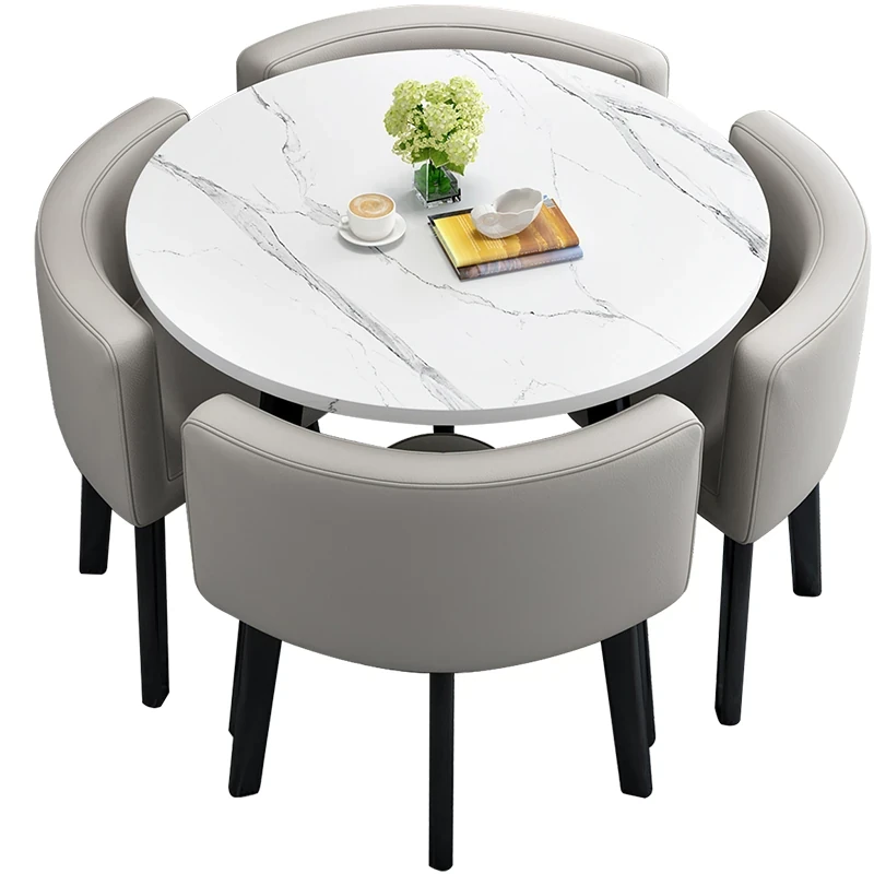 Modern Minimalist Foldable Round Dining Table for Small Spaces - Stylish and Functional Table and Chair Set for Dining, Leisure Meetings, and Reception