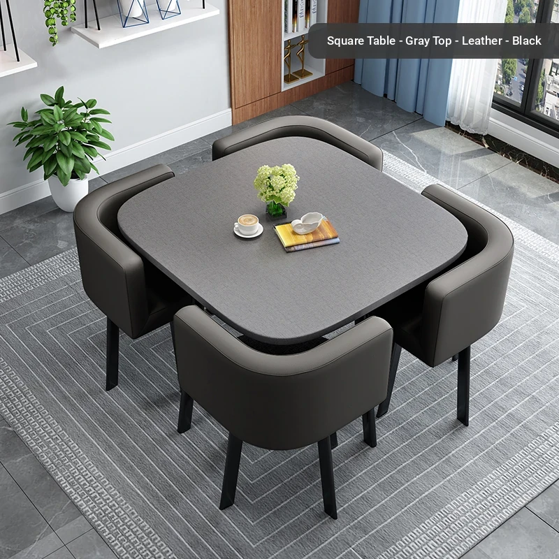 Black gray square table 80+4 black leather