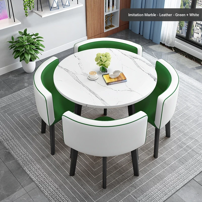 Cyan(Green and white leather double spell 1 table 4 chairs)