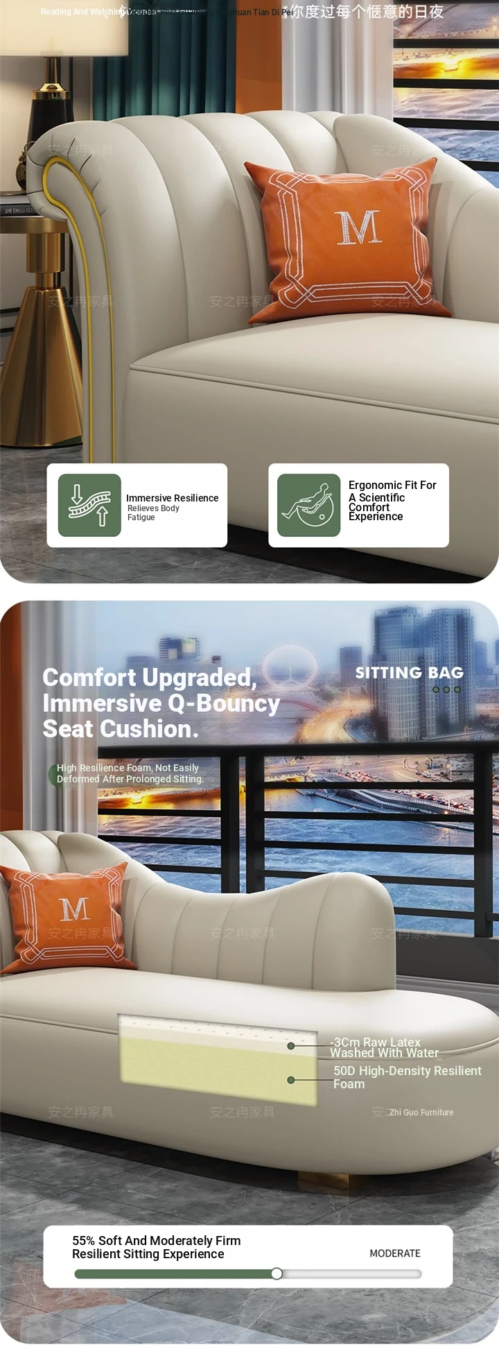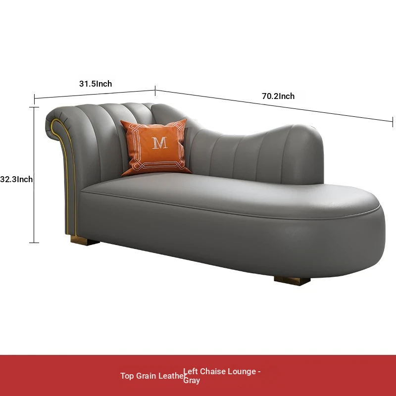 Modern Minimalist Genuine Leather Chaise Lounge - Luxury American Style for Small Living Rooms and Bedrooms, Perfect for Relaxing and Unwinding