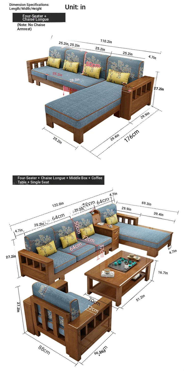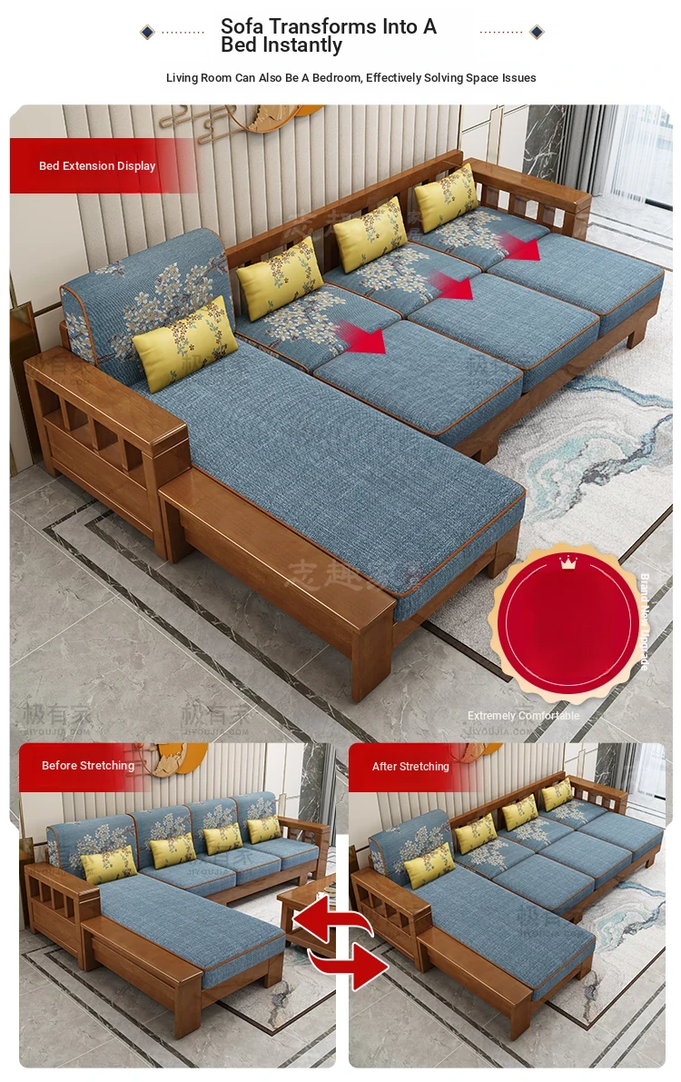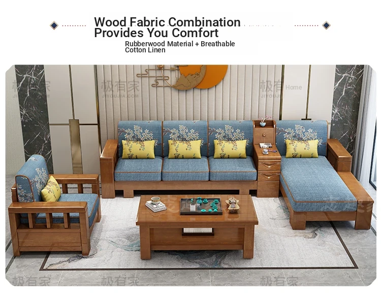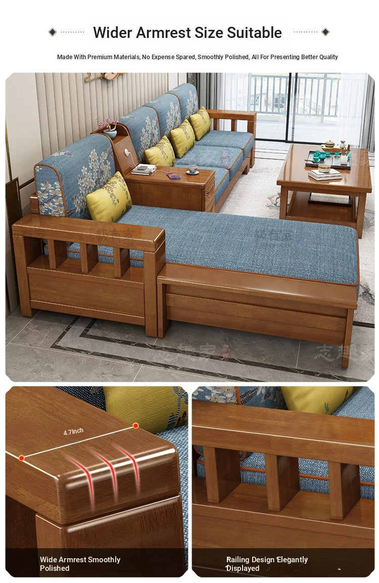 [Sponge] Three-person + Tea Table New Upgrade All Solid Wood
