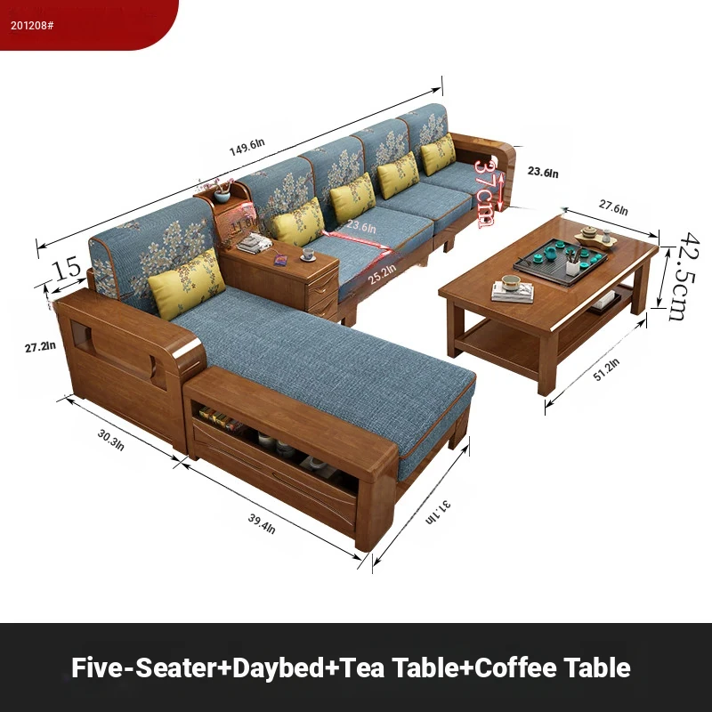 Five people + imperial concubine couch + middle box + tea table without pull bed